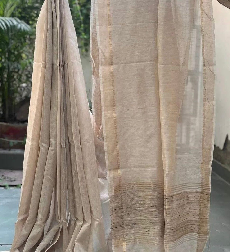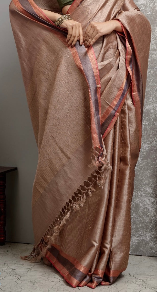 Beige Kosa Tussar Handloom Saree