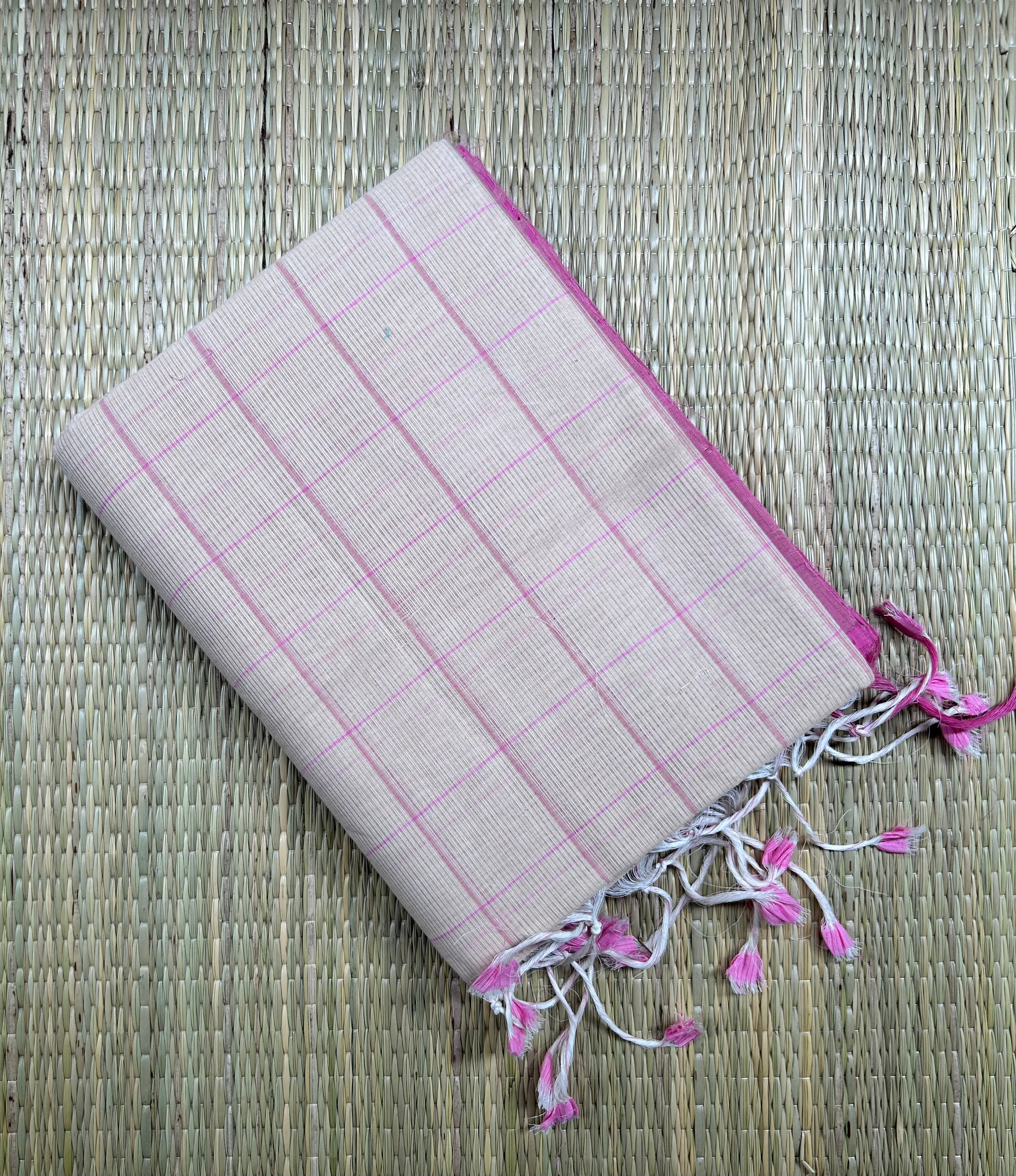 Beige & Pink Handloom Mangalagiri Cotton saree
