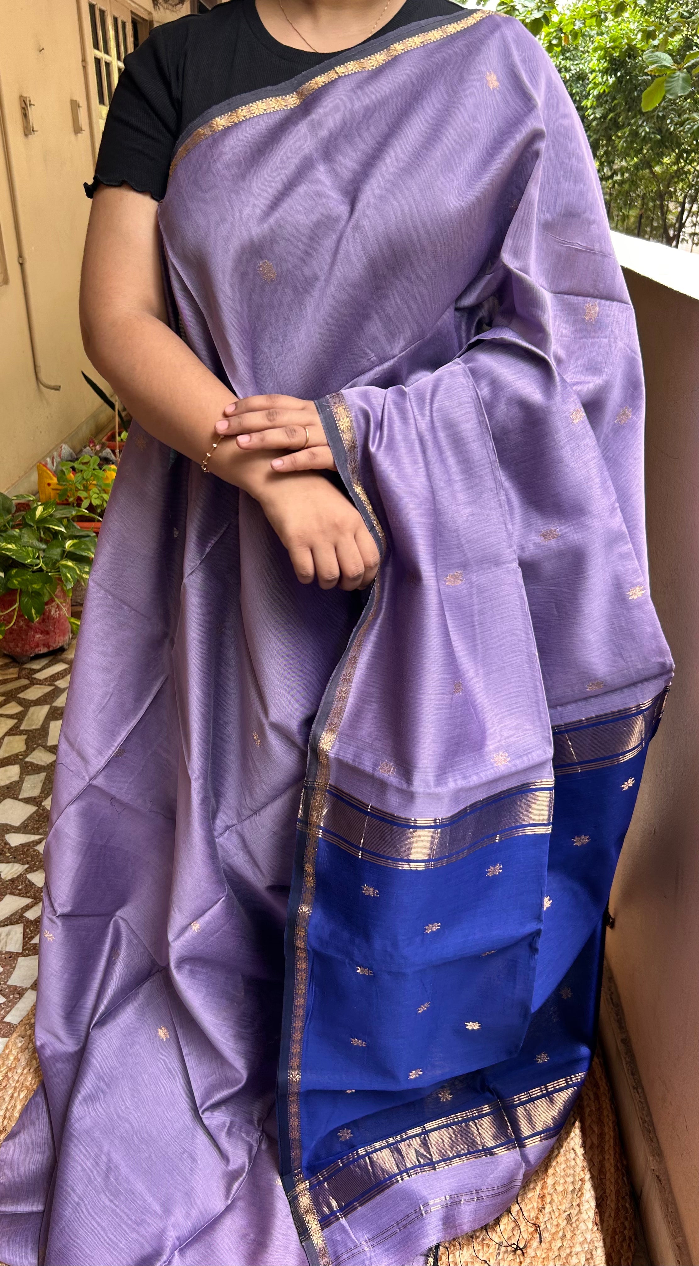 Lavender & Mustard Maheswari Silk Cotton Handloom Saree