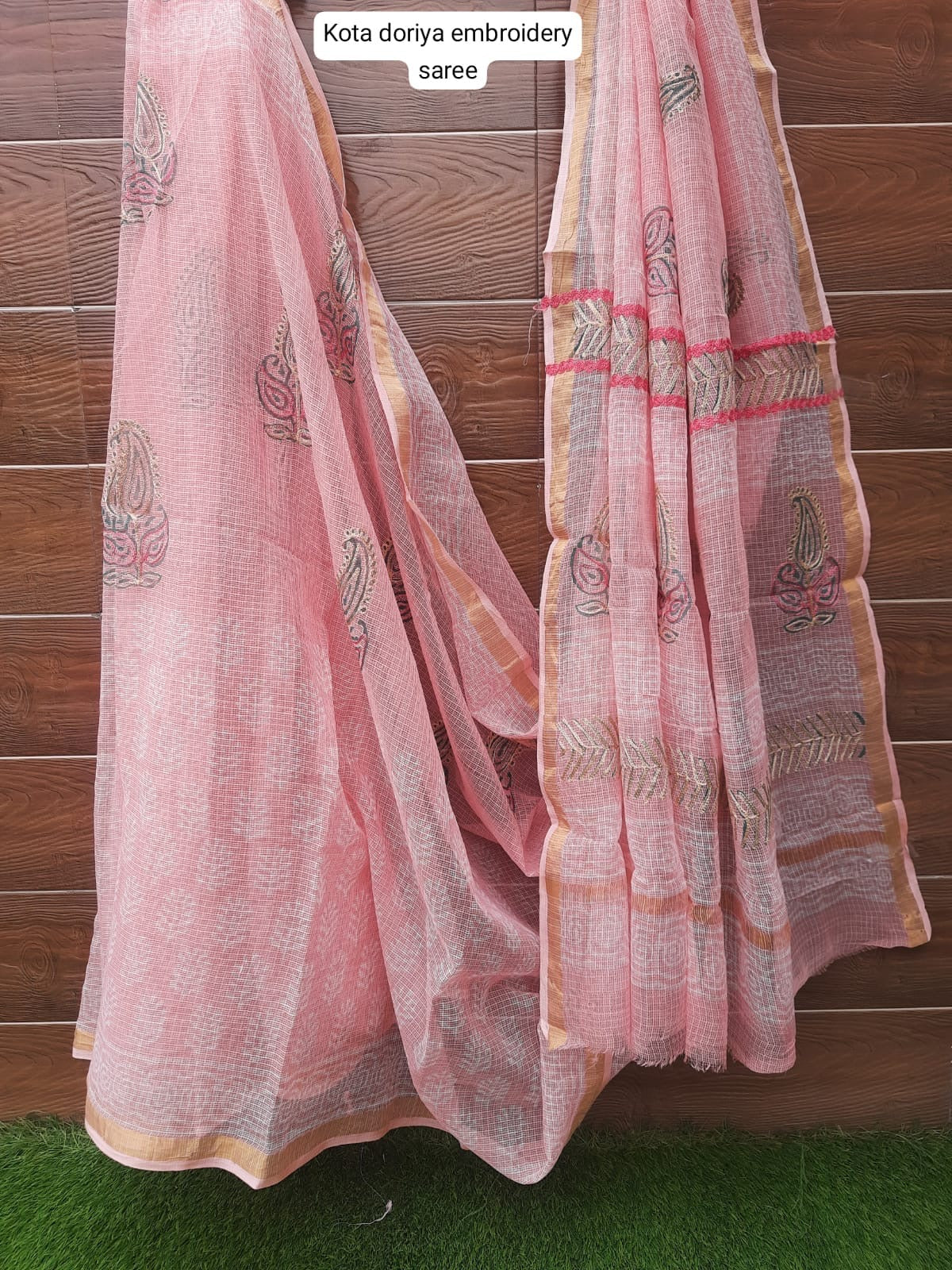 Peach Kota Doria Embroidery Saree