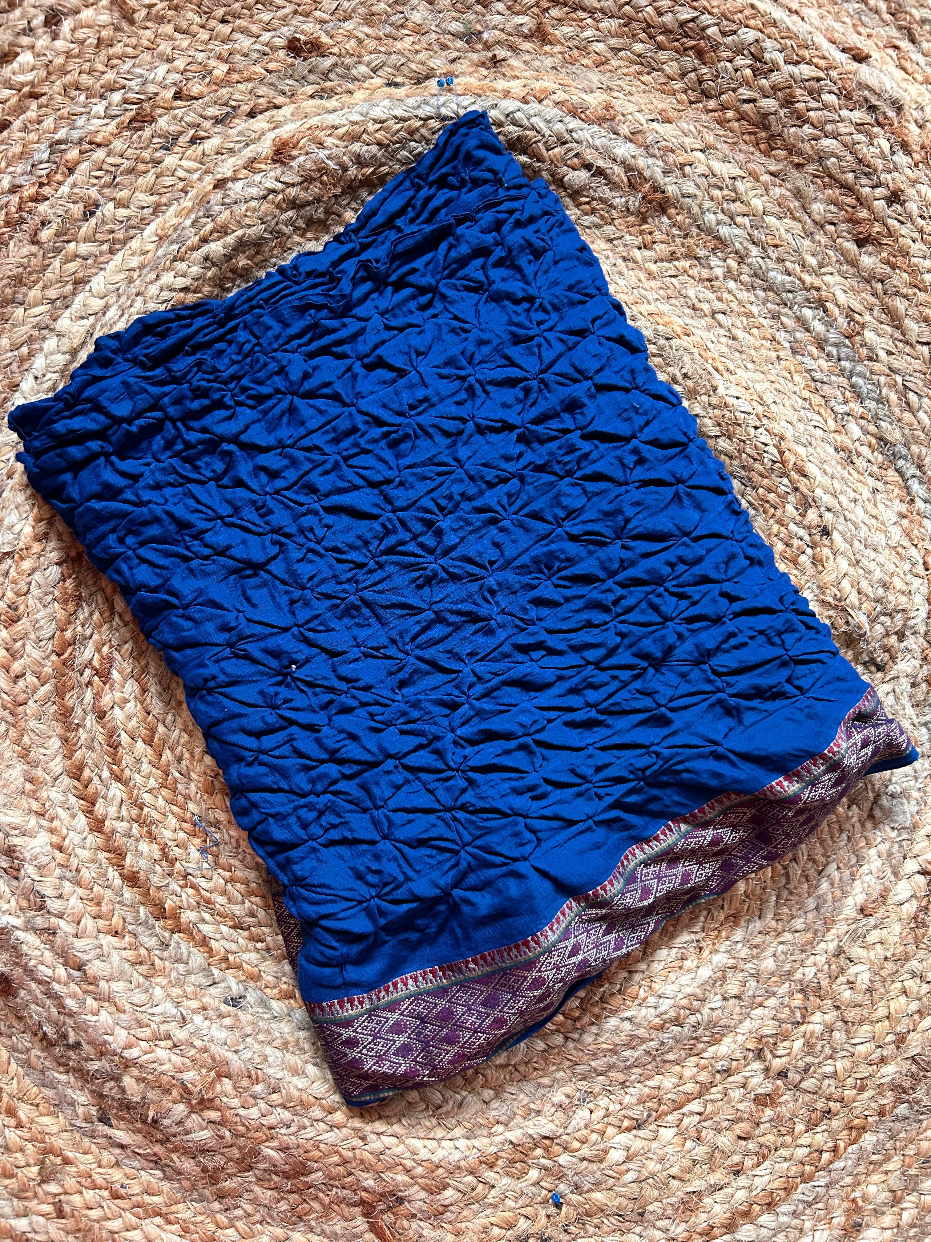 Peacock Blue Bandhini Cotton Saree