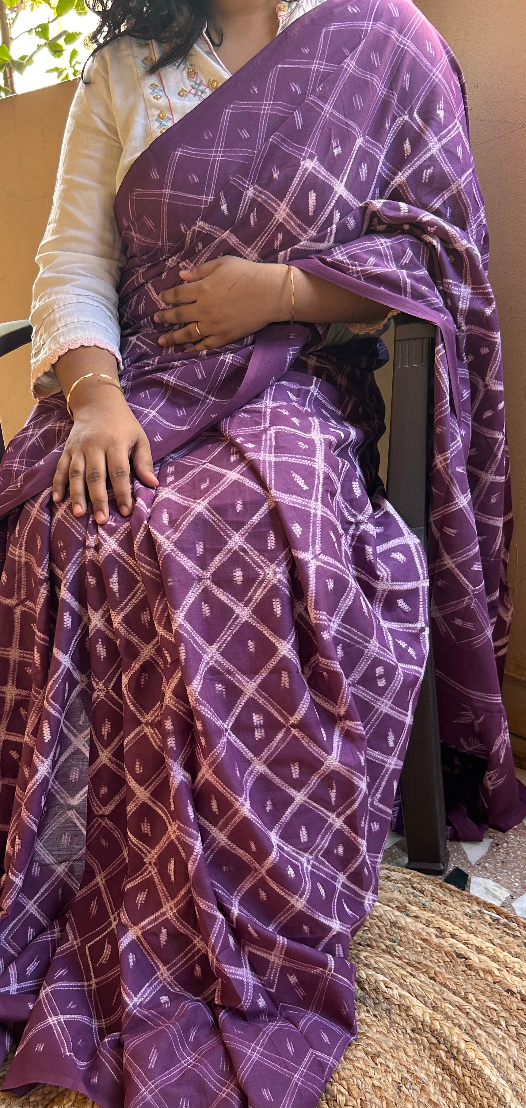 Pinkish Red Cotton Illkal Saree ( Pure silk Pallu )