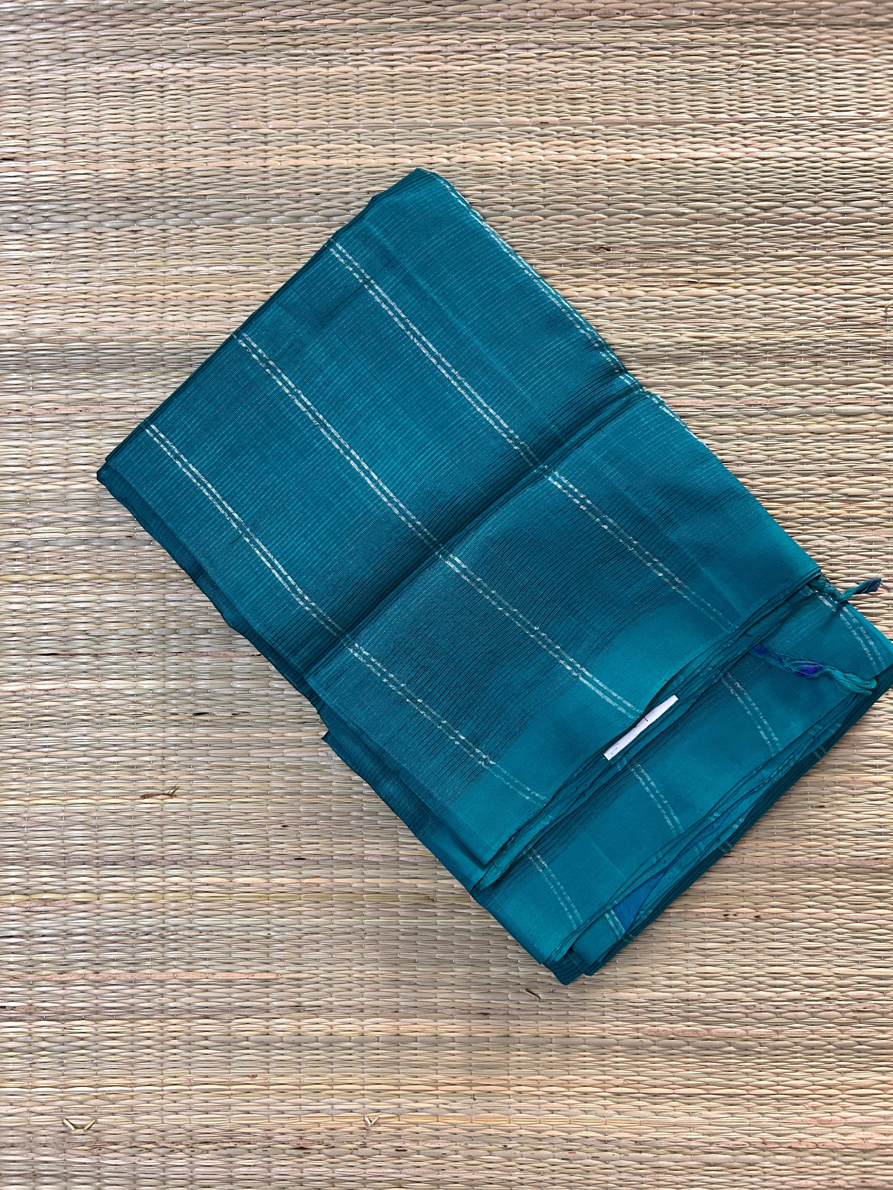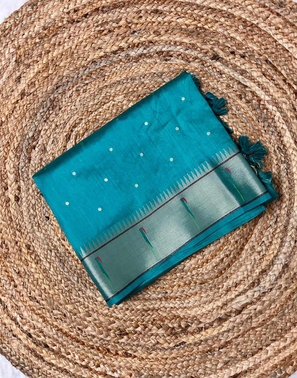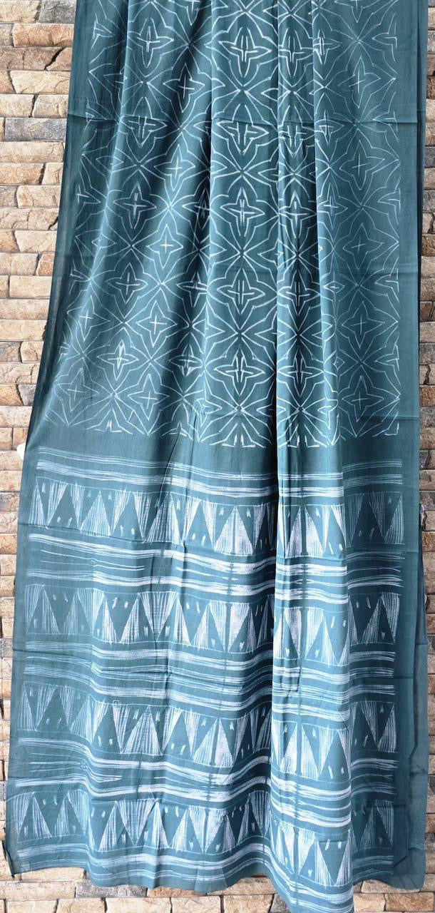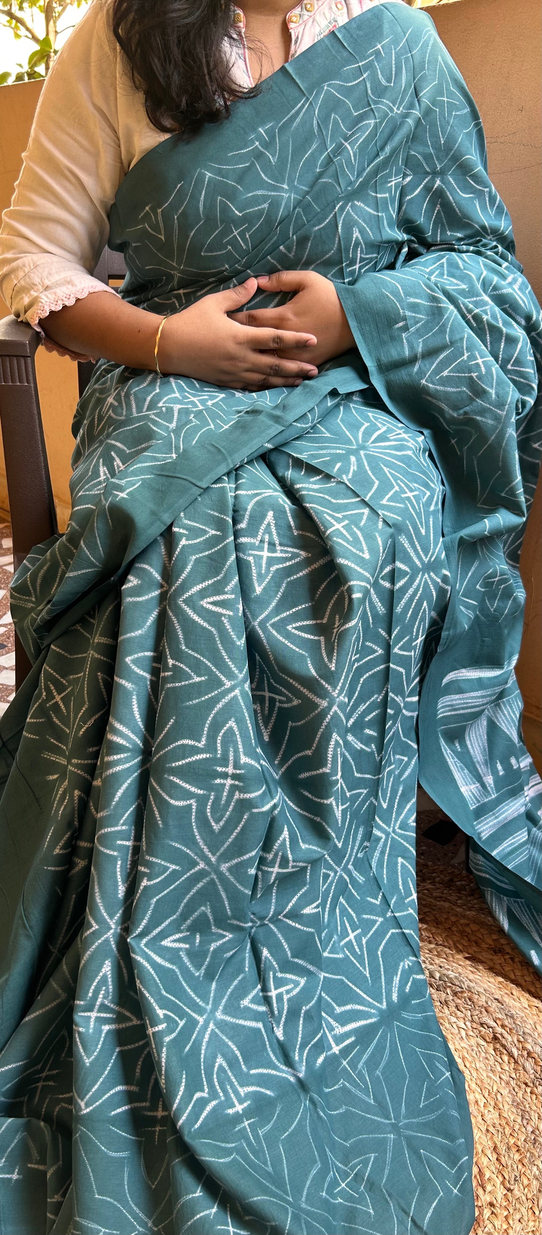 Teal Blue Bishapuri Silk Saree in Hand Wax Batik