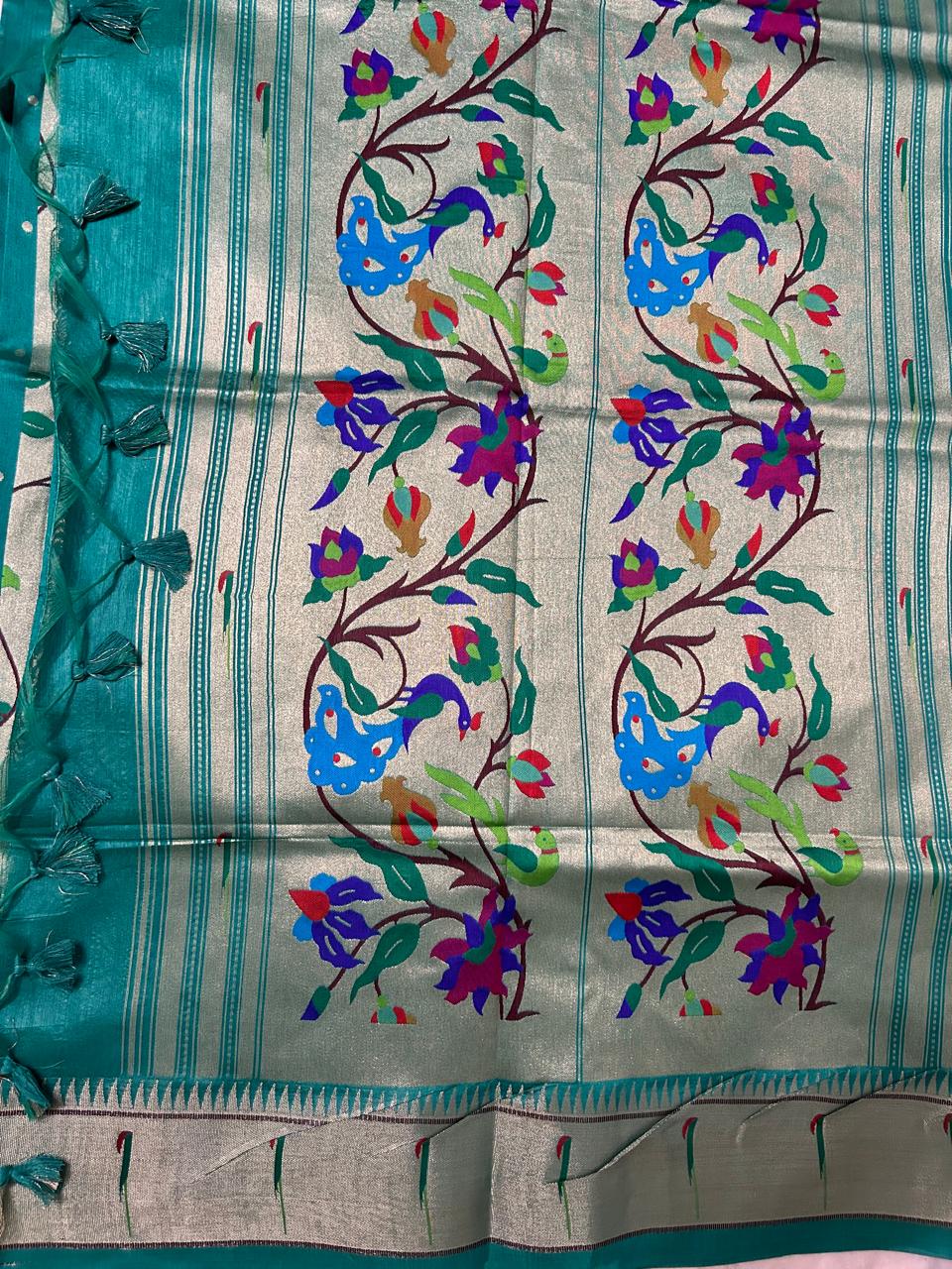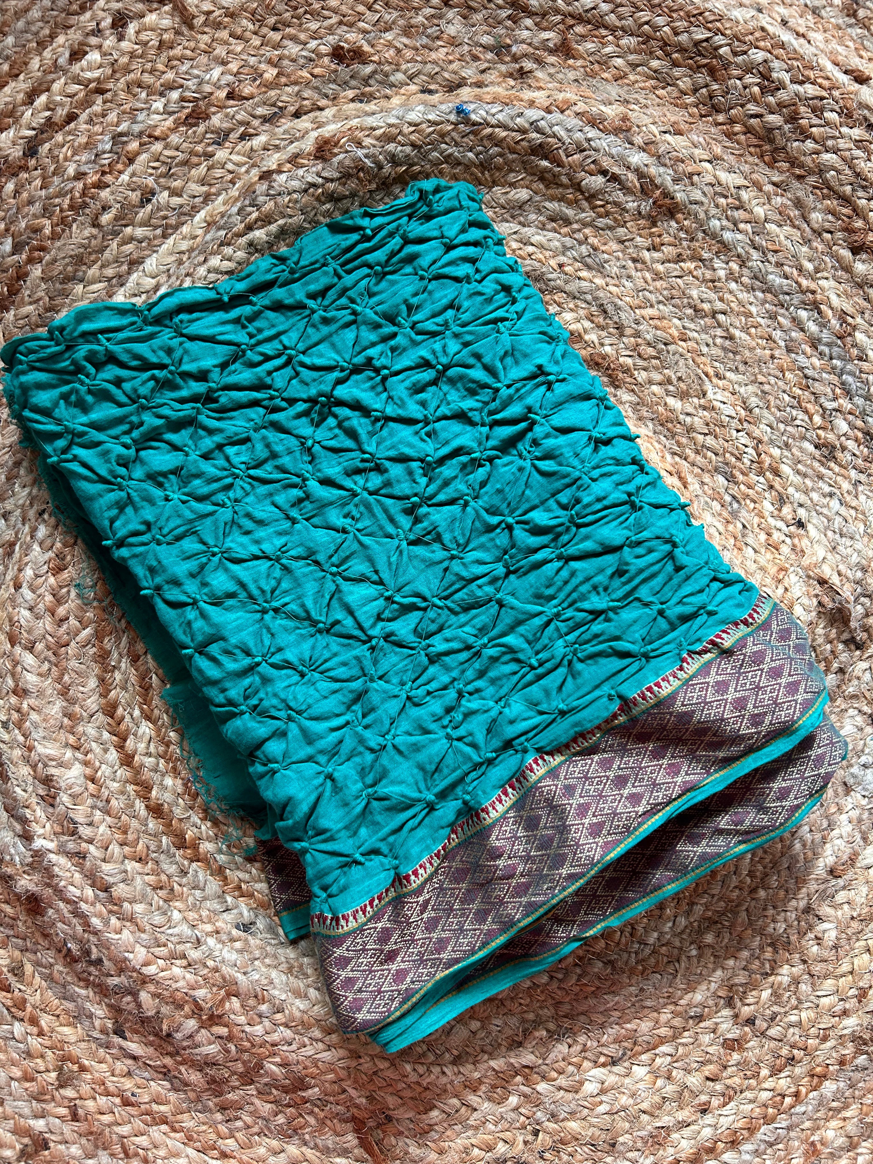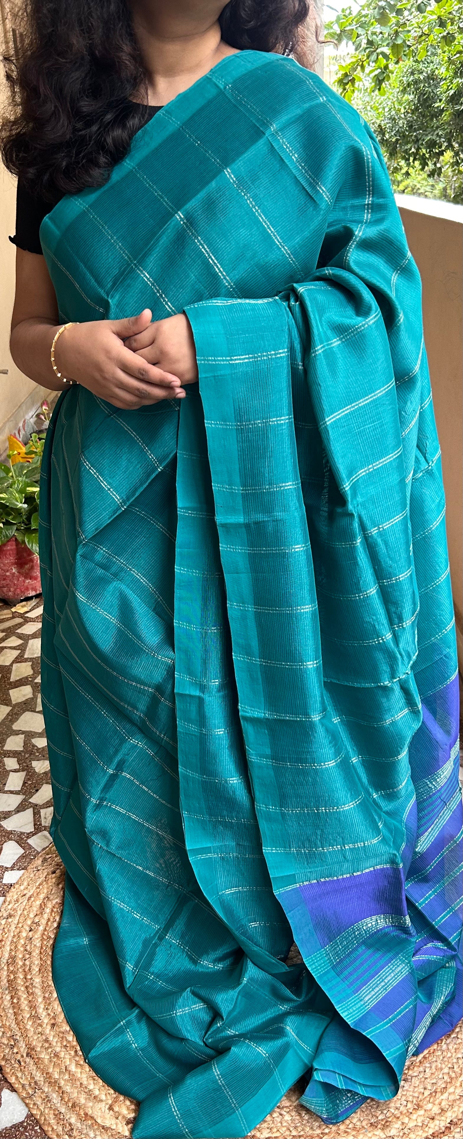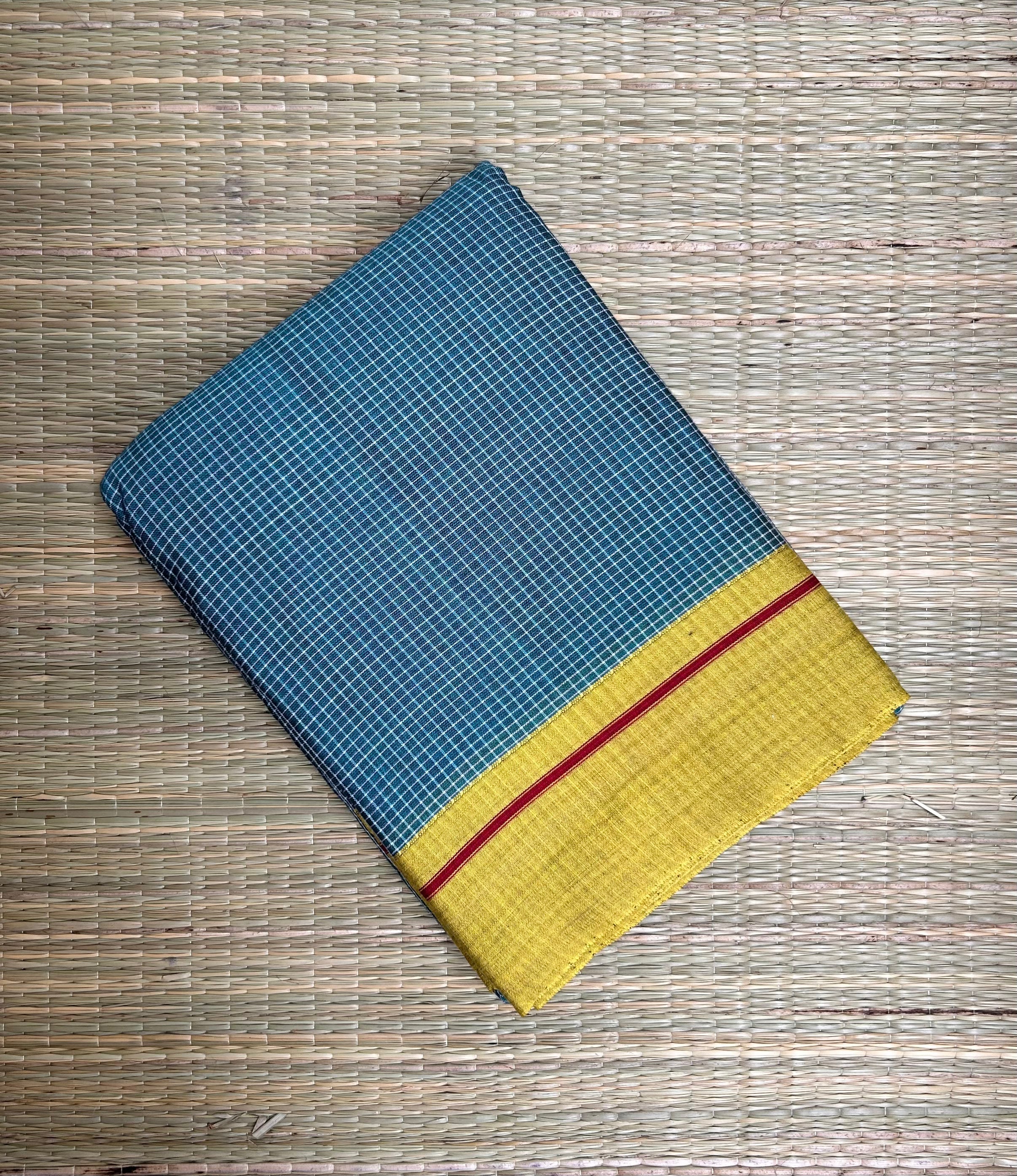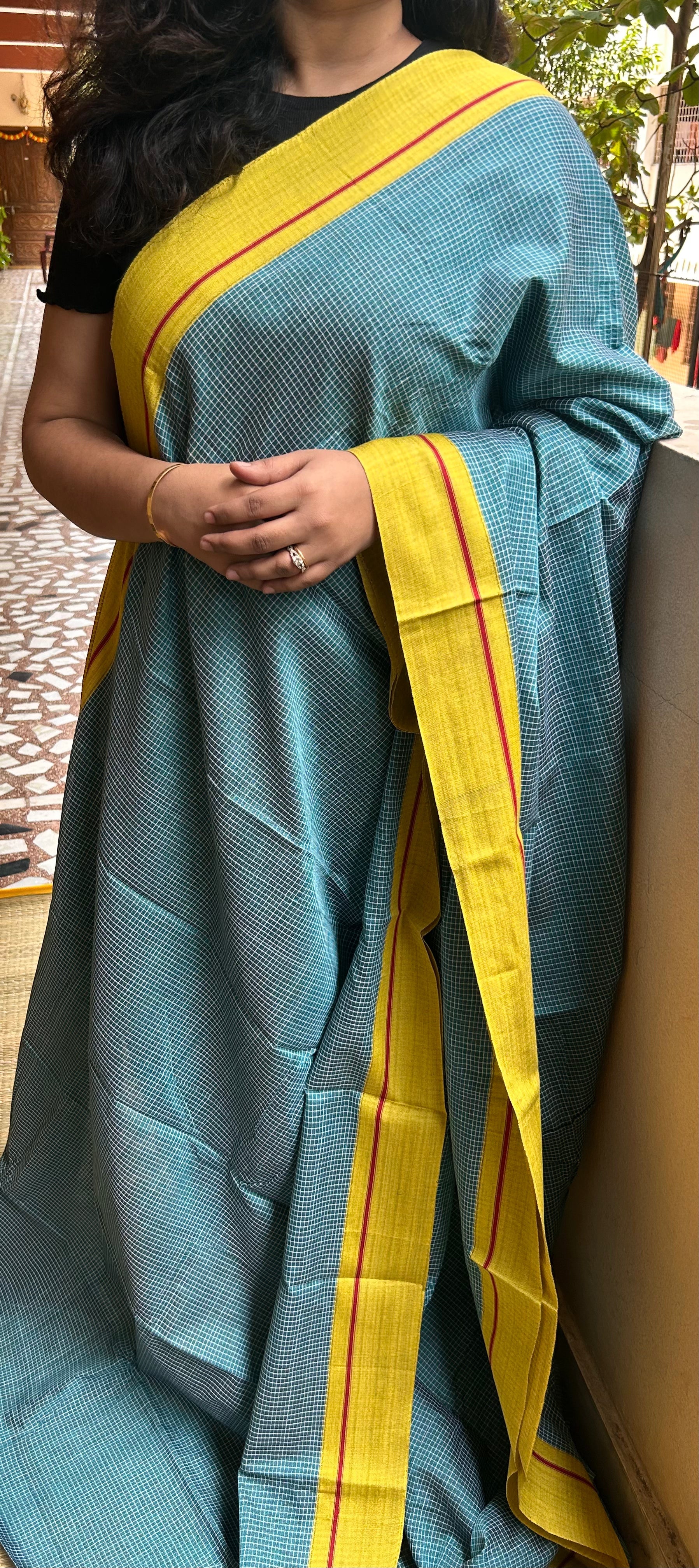 Teal & Yellow Handloom Mangalagiri Cotton saree