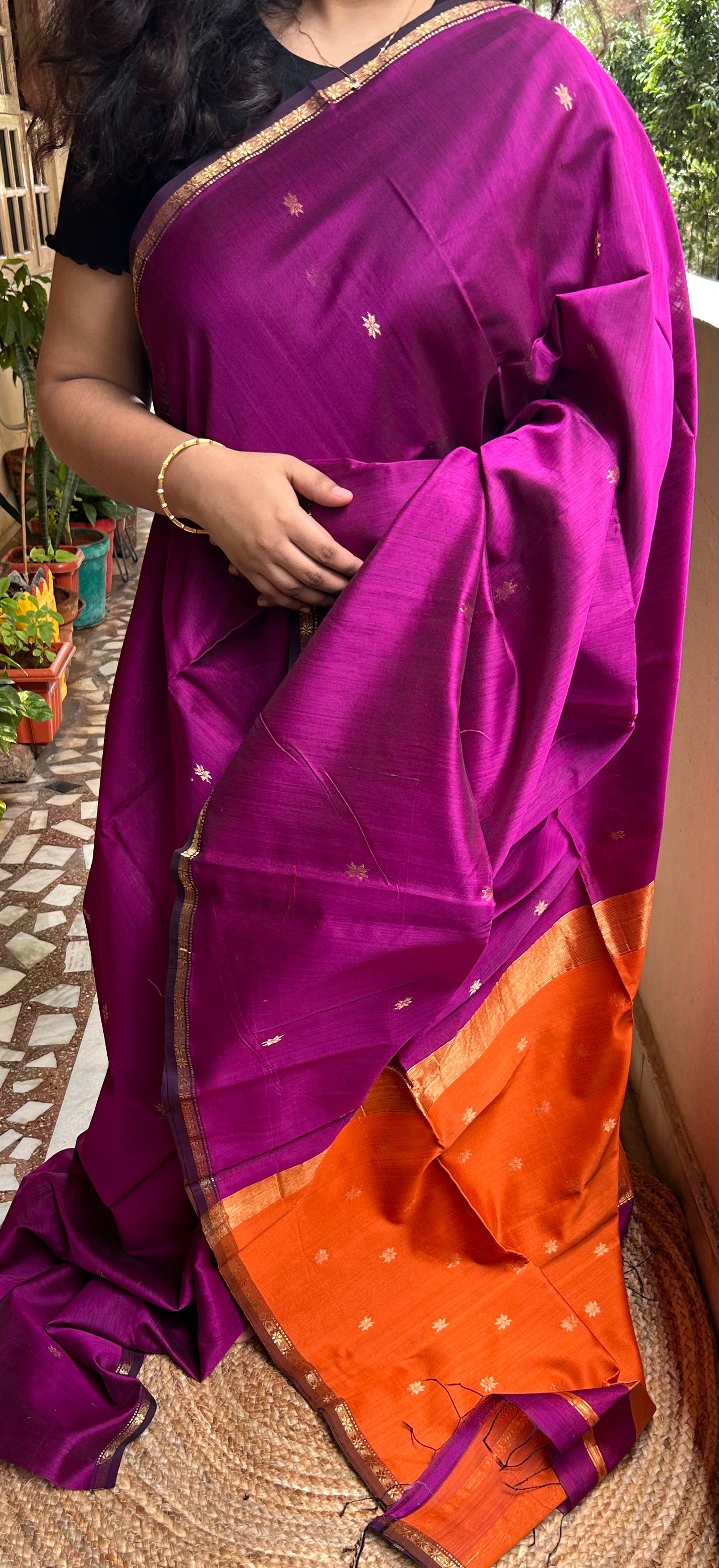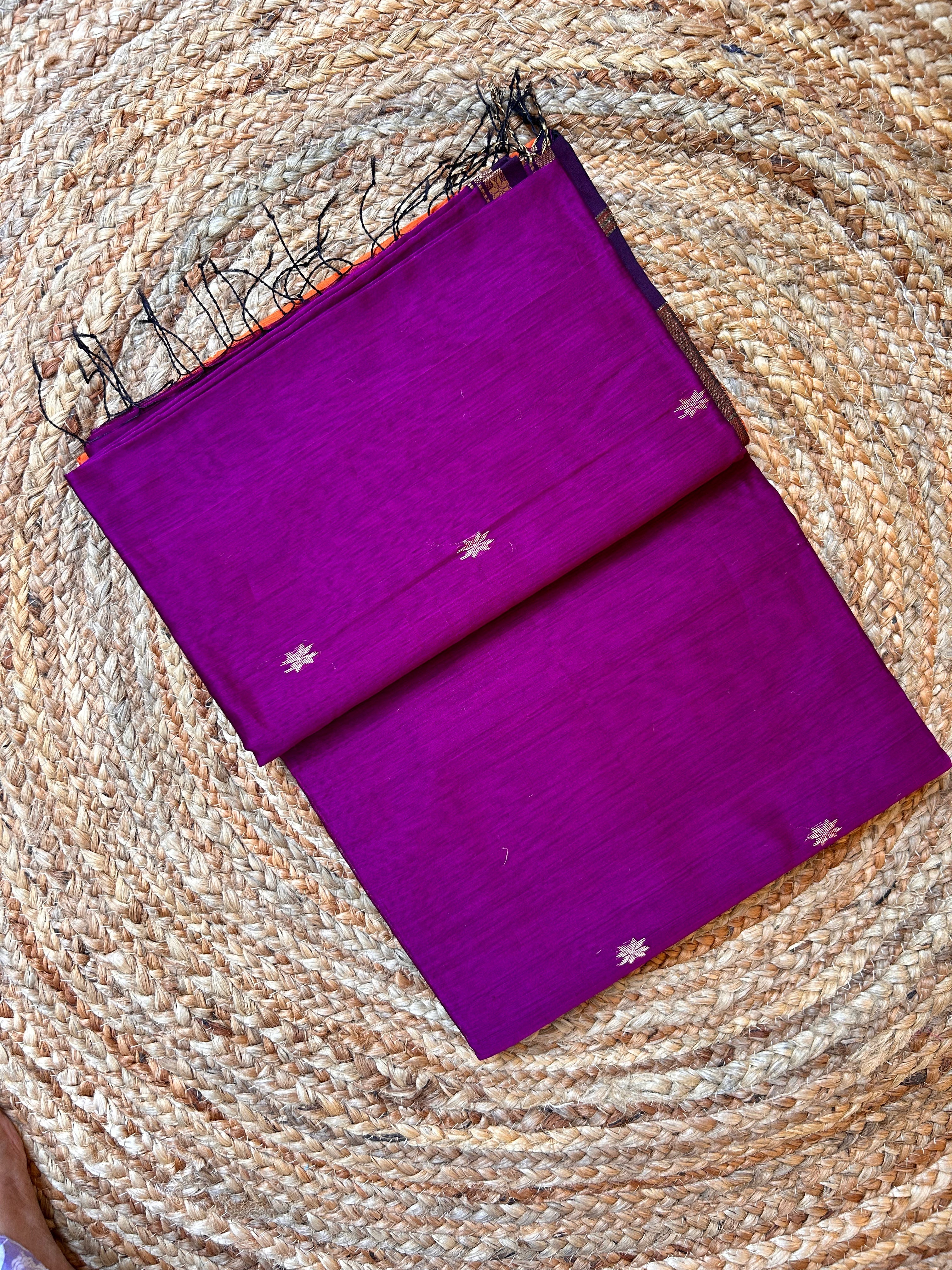 Violet & Orange Maheswari Silk Cotton Handloom Saree