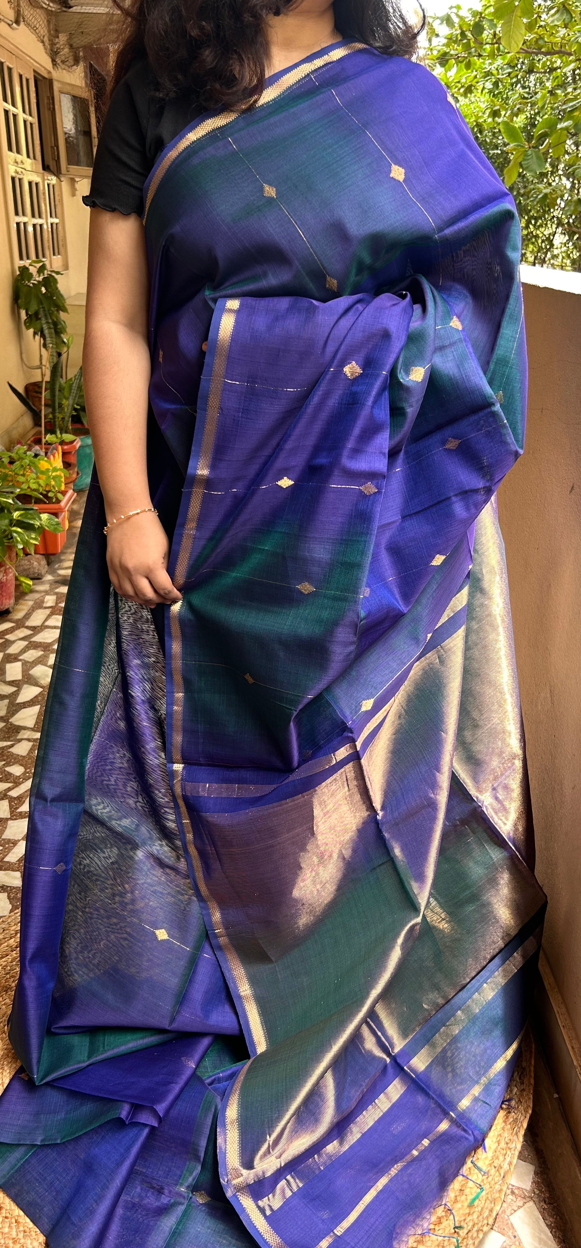Violet & Green Maheswari Silk Cotton Handloom Saree