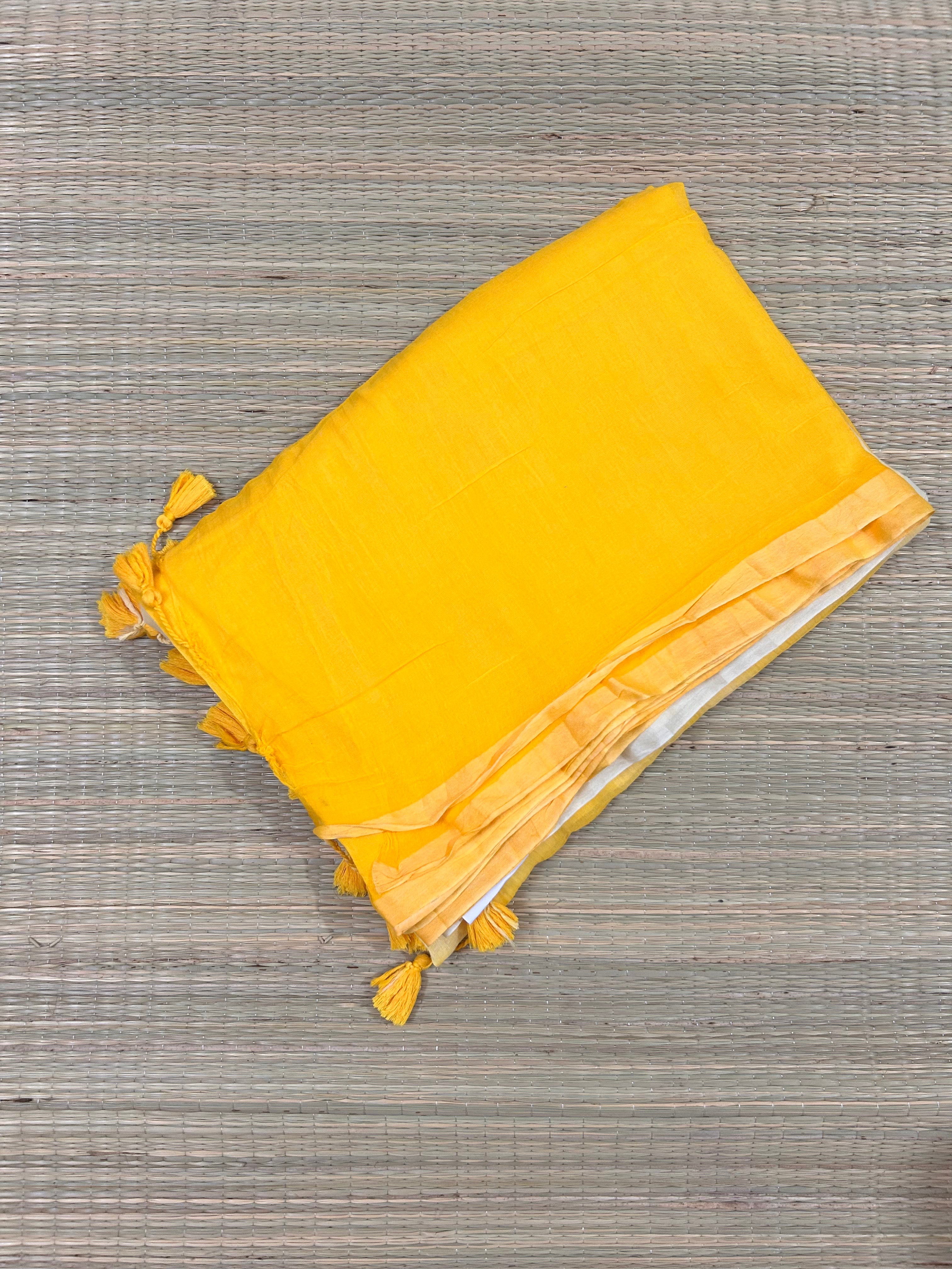 Yellow Half & Half Mul Cotton Saree