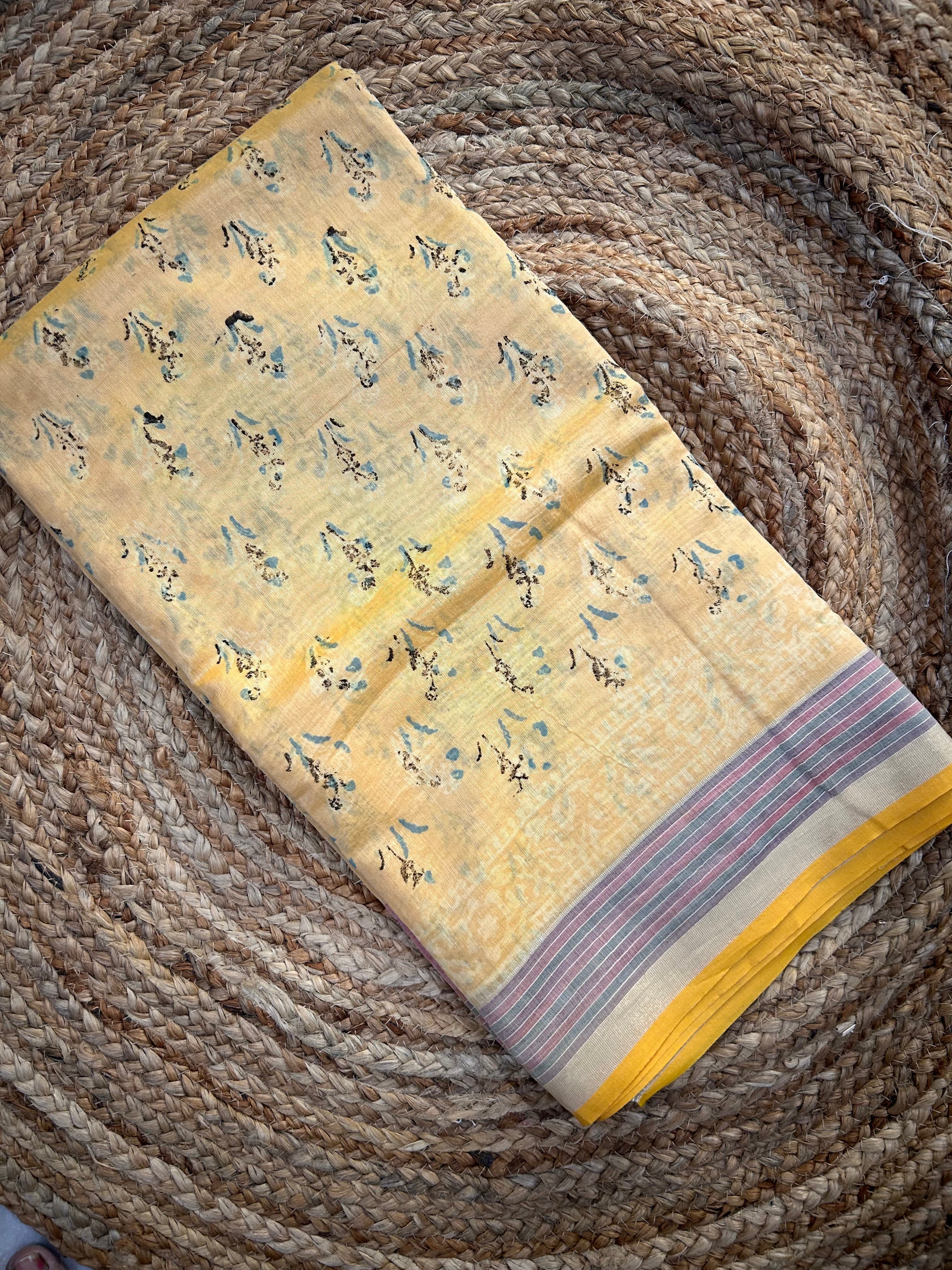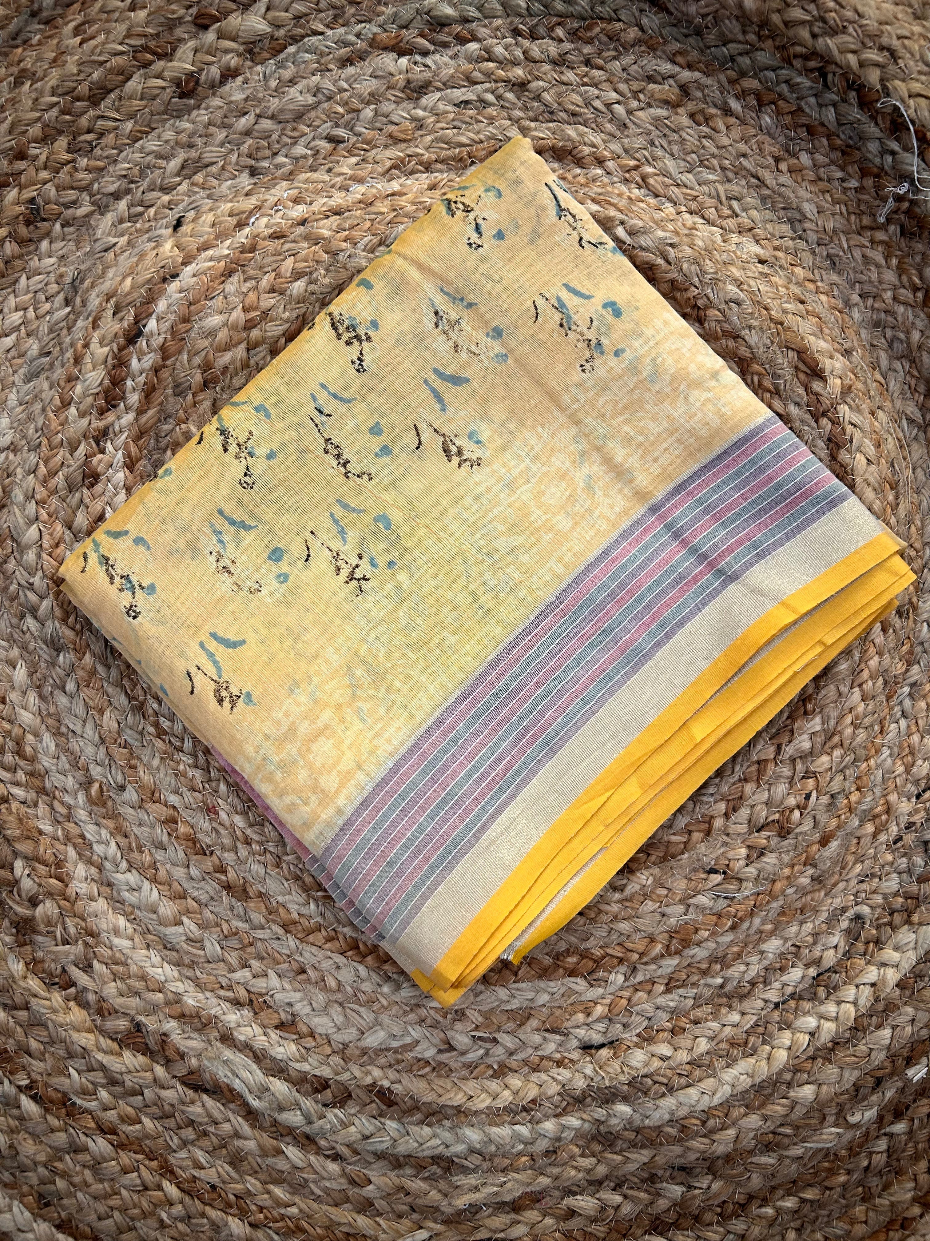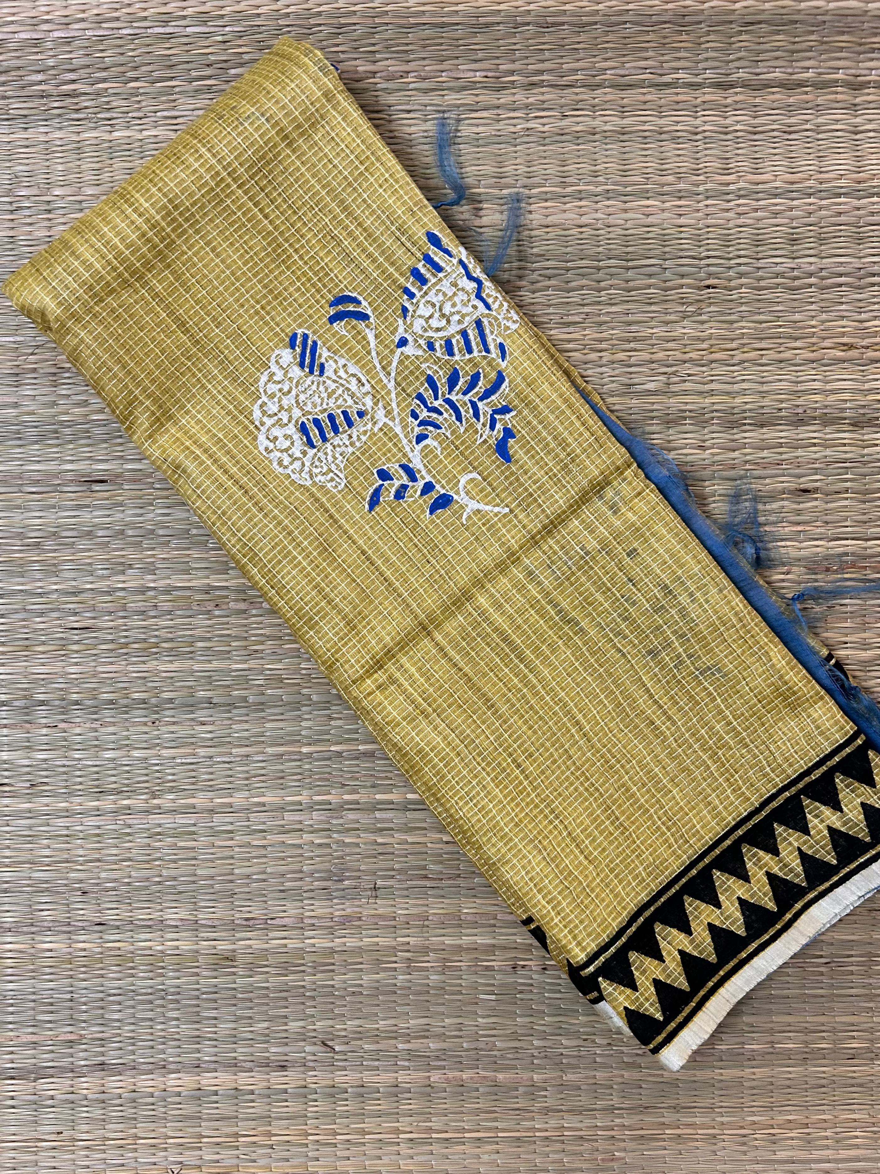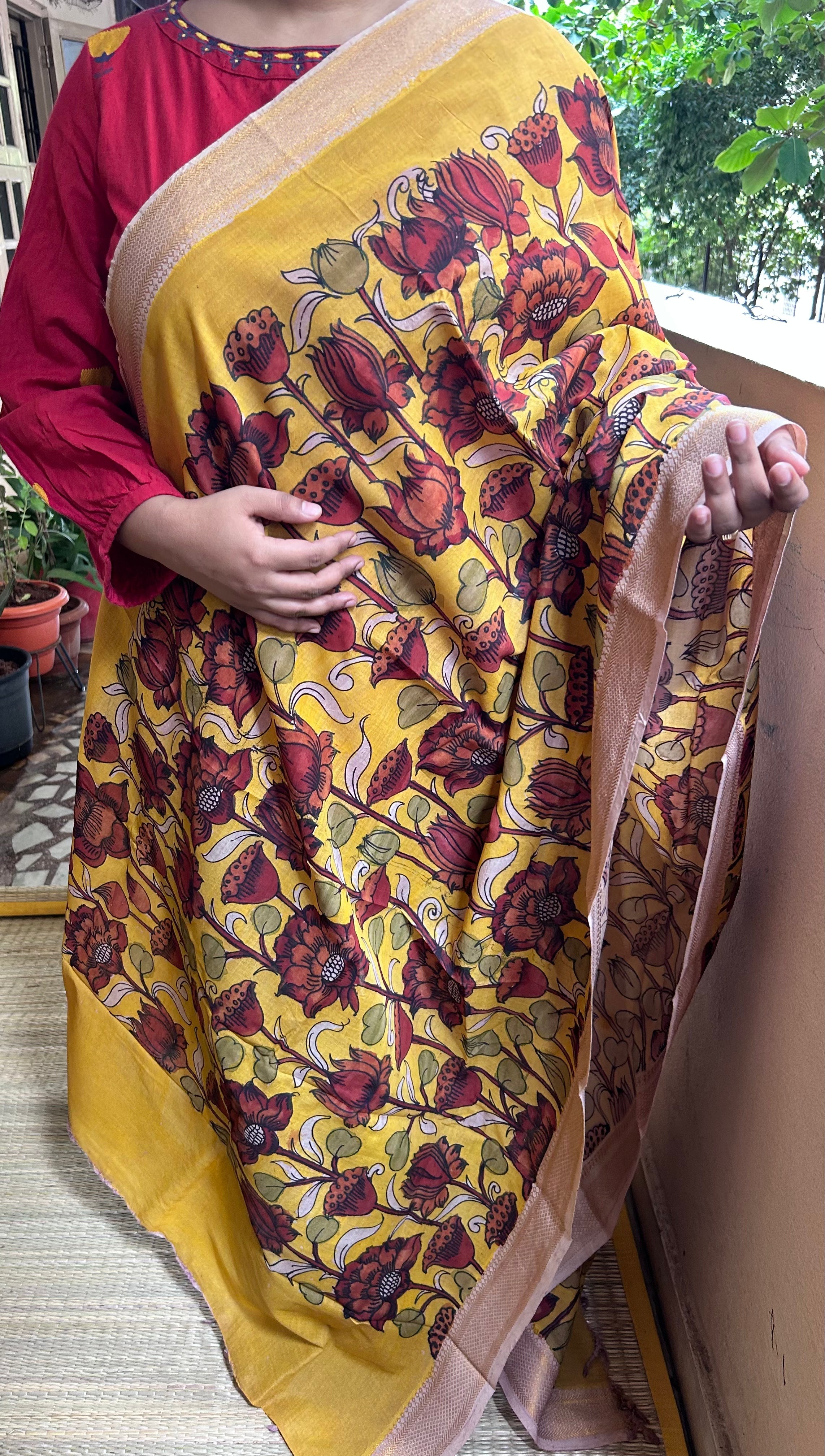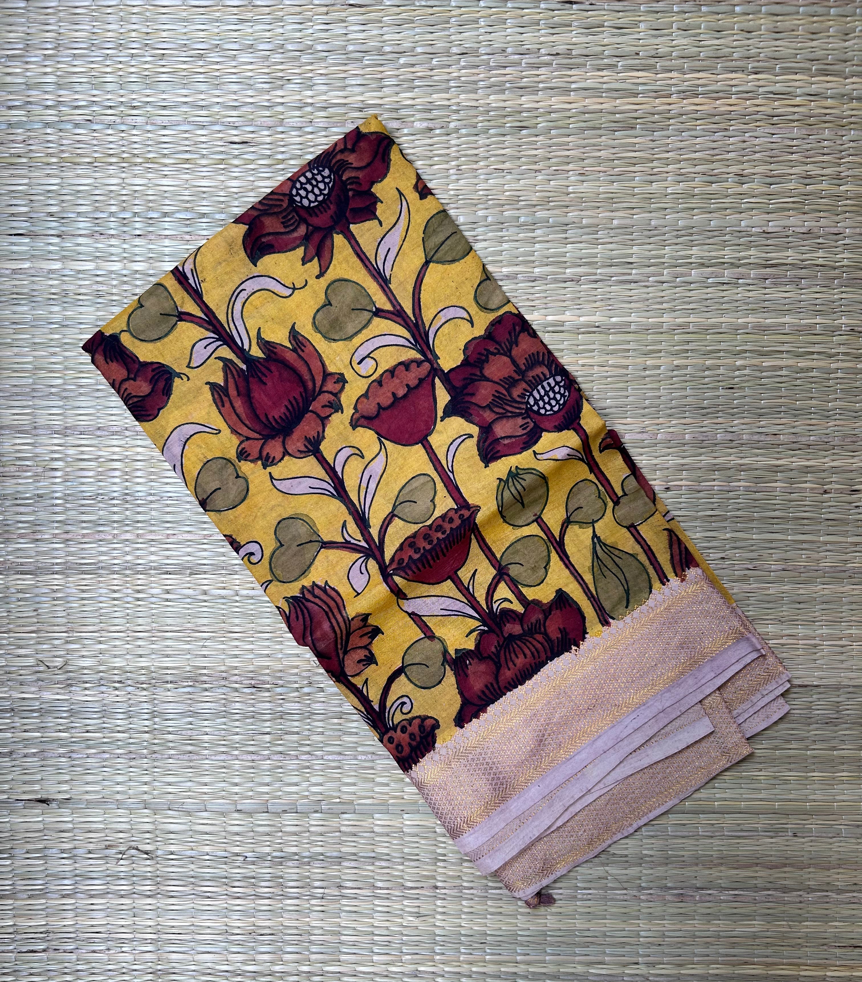 Yellow Pen Kalamkari Dupatta in Mangalagiri Silk