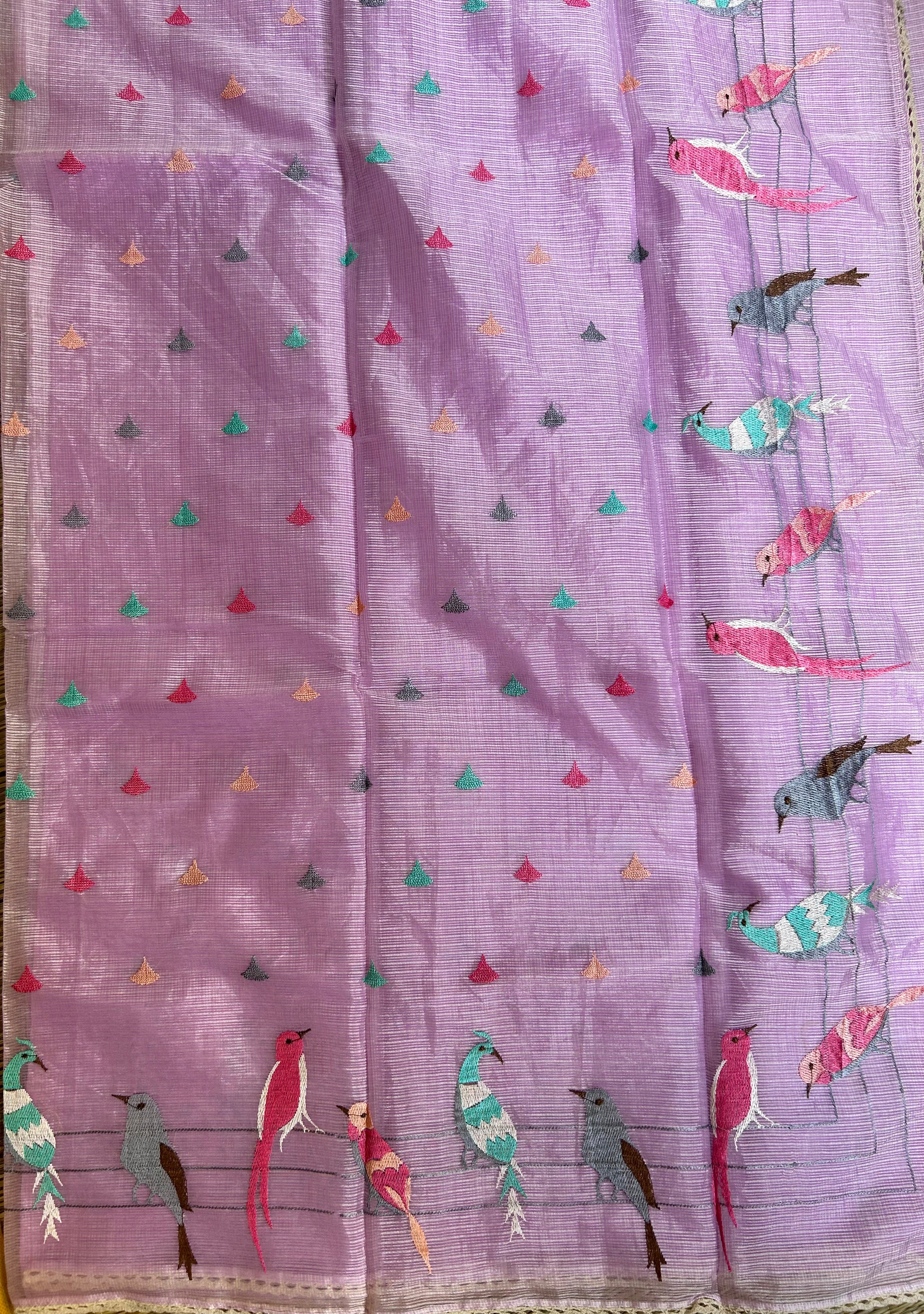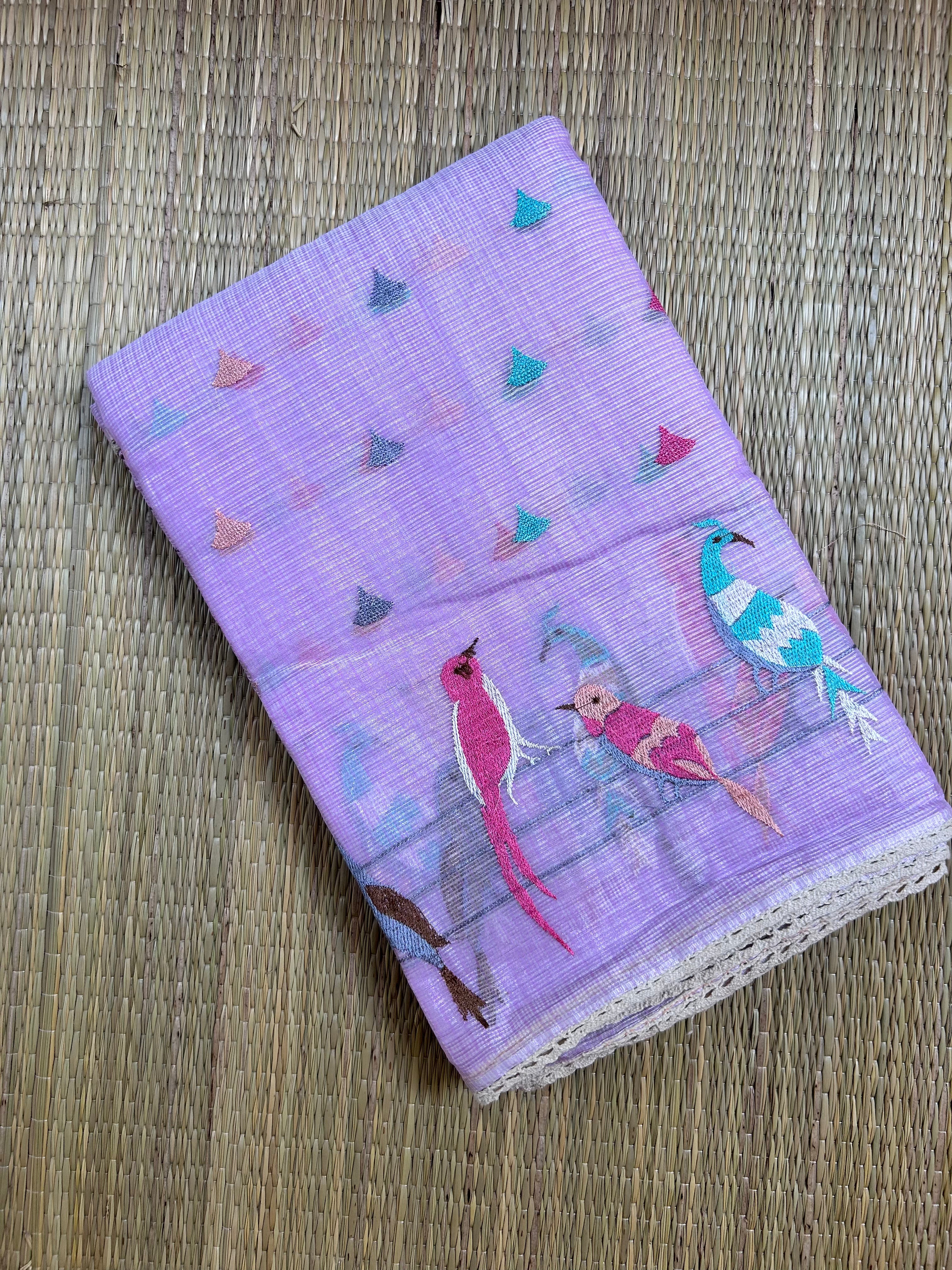 Lavender Kota Doria Embroidery Saree