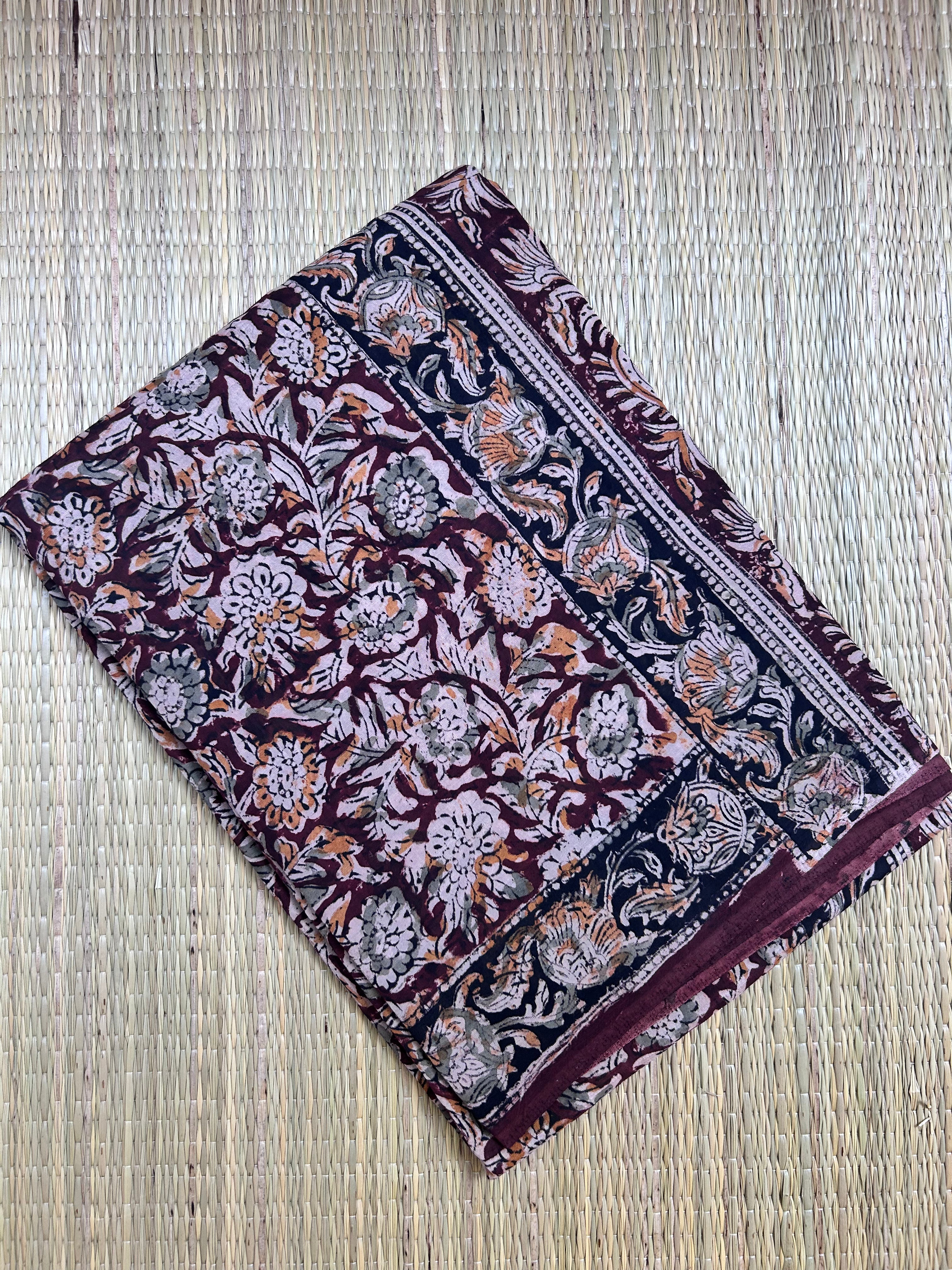 Handblock printed Kalamakari Silk Saree - 5