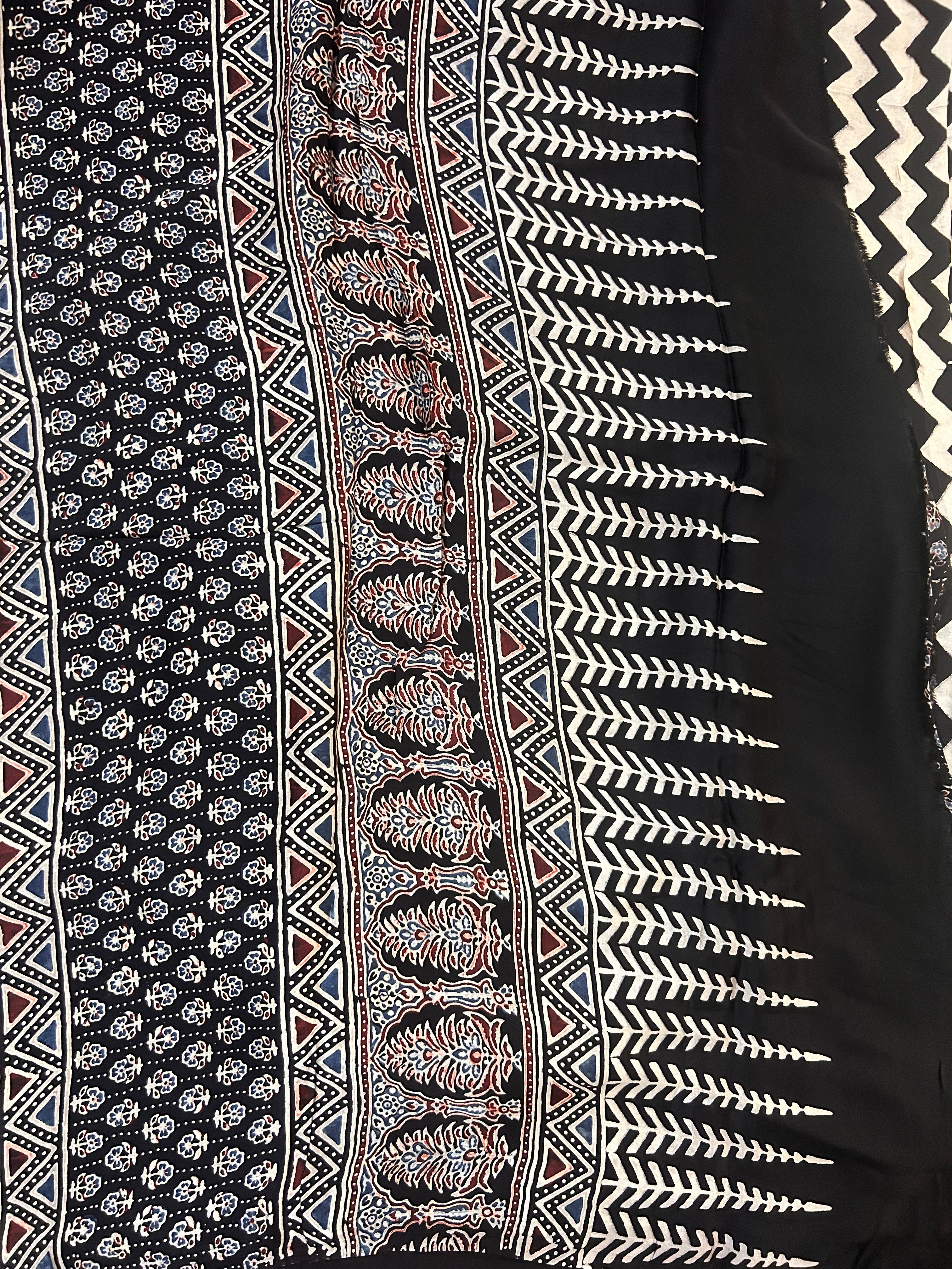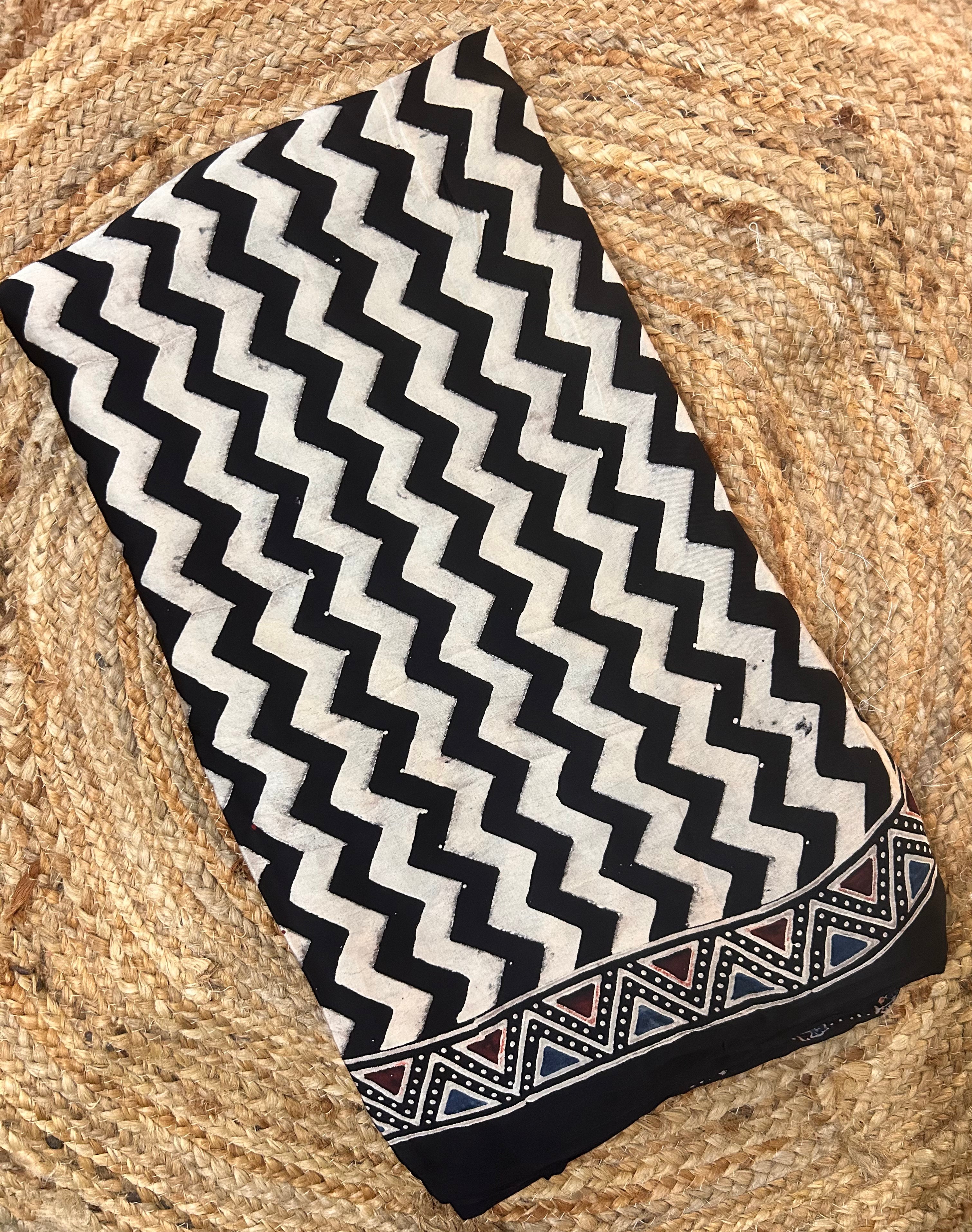 Chevron Ajrakh Modal Silk Handblock printed Dupatta