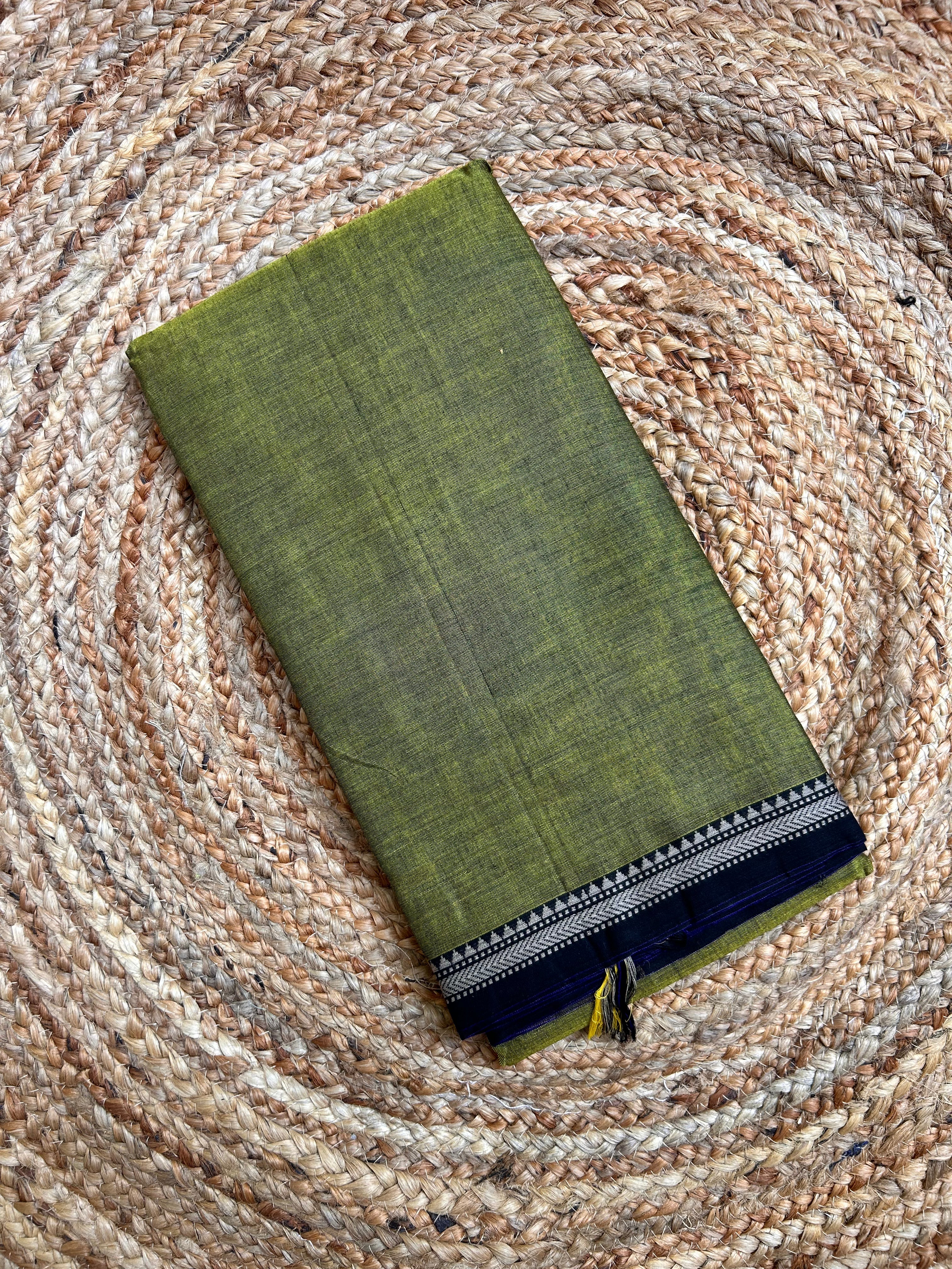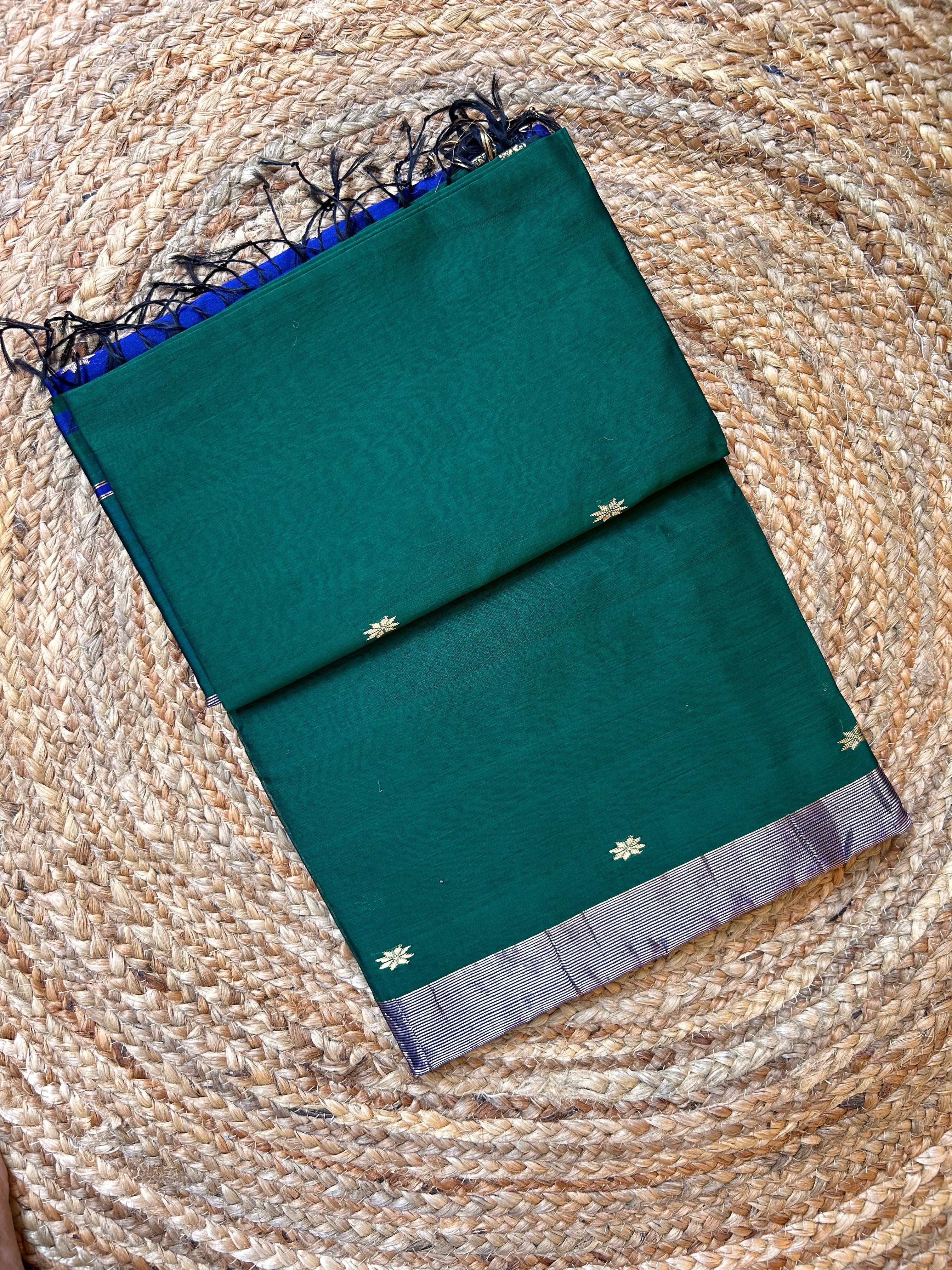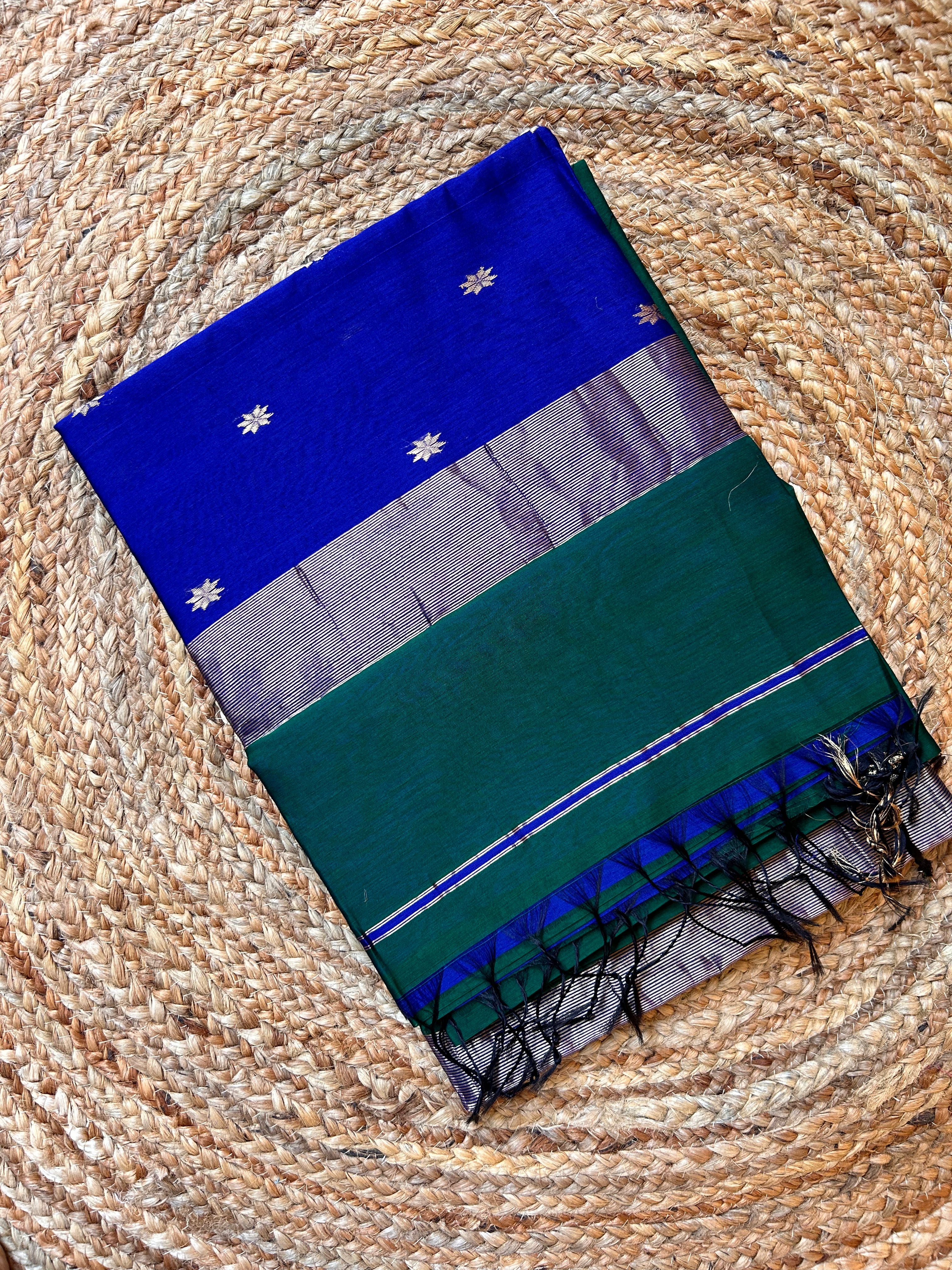 Green & Blue Maheswari Silk Cotton Handloom Saree