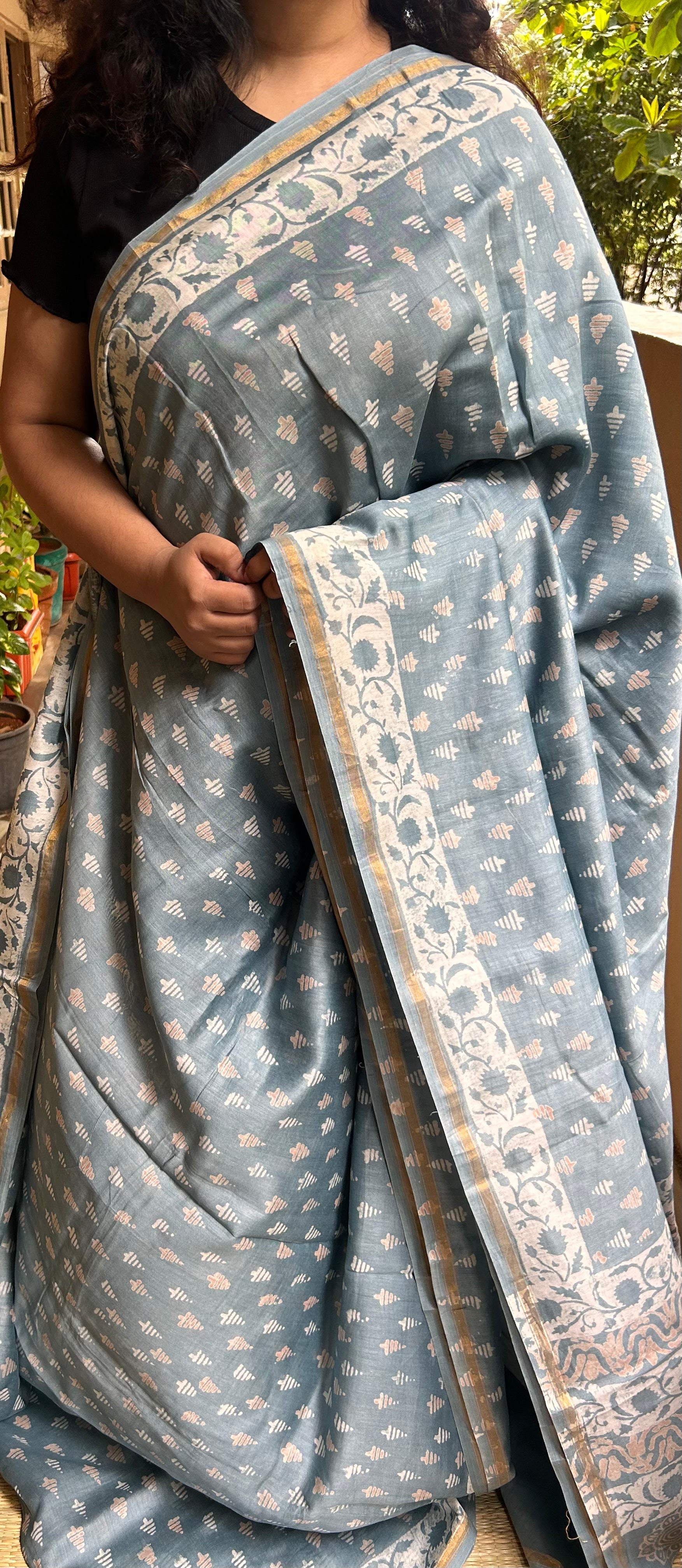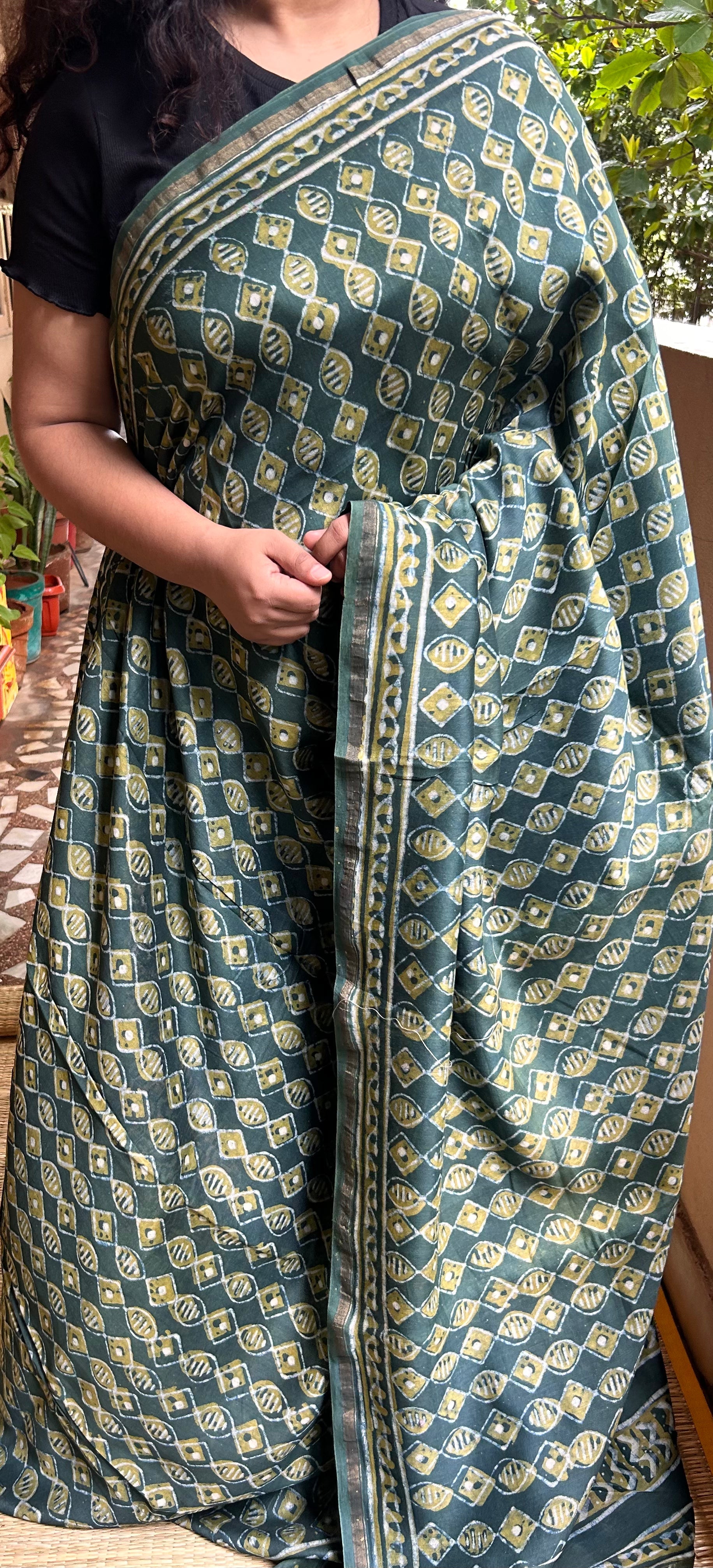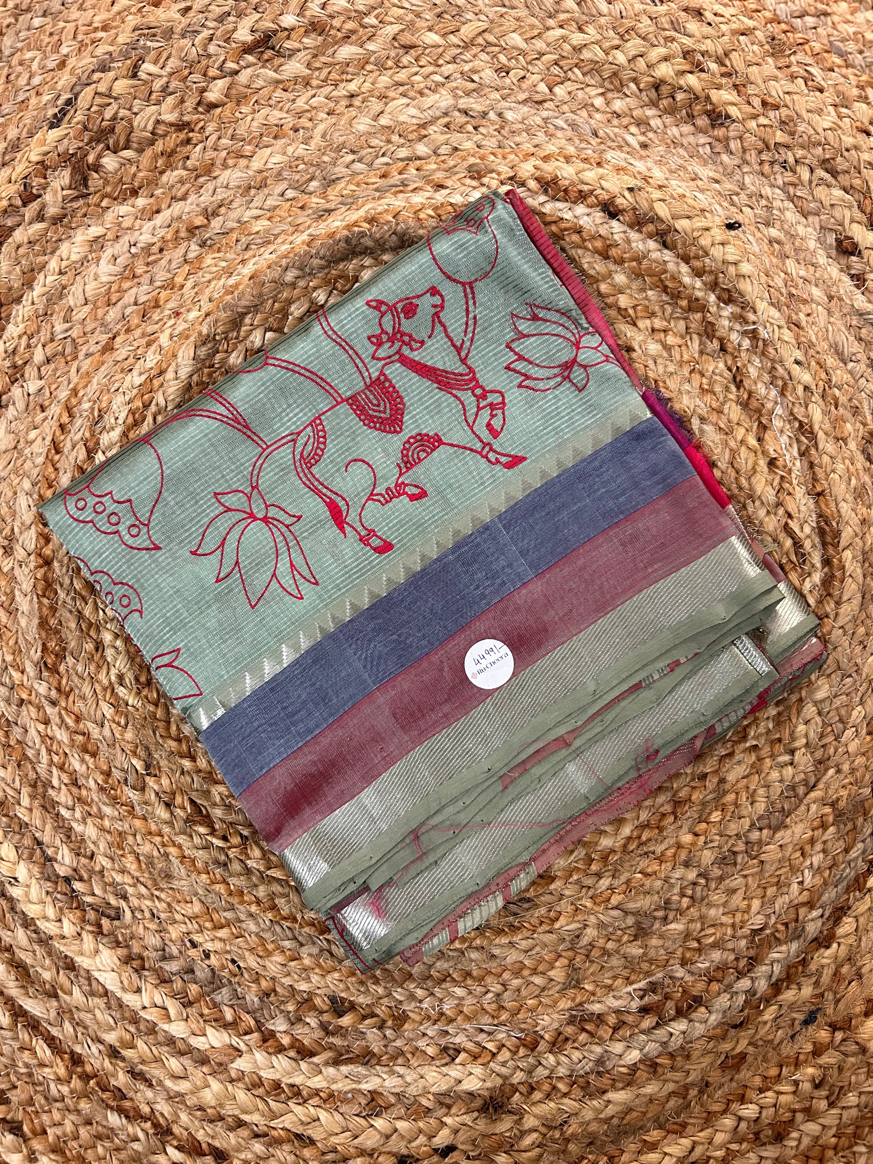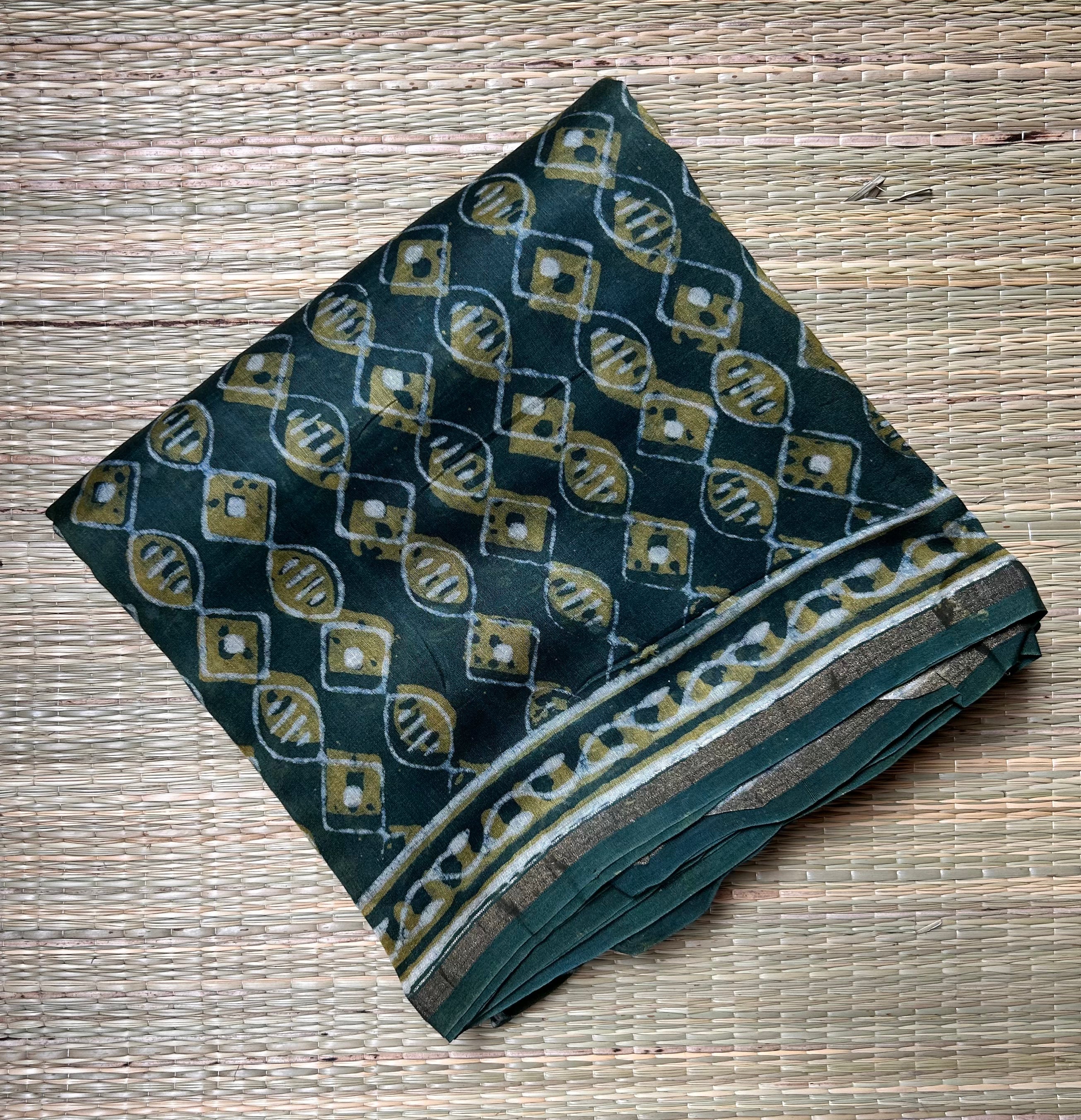 Green & Blue Maheswari Silk Cotton Handloom Saree