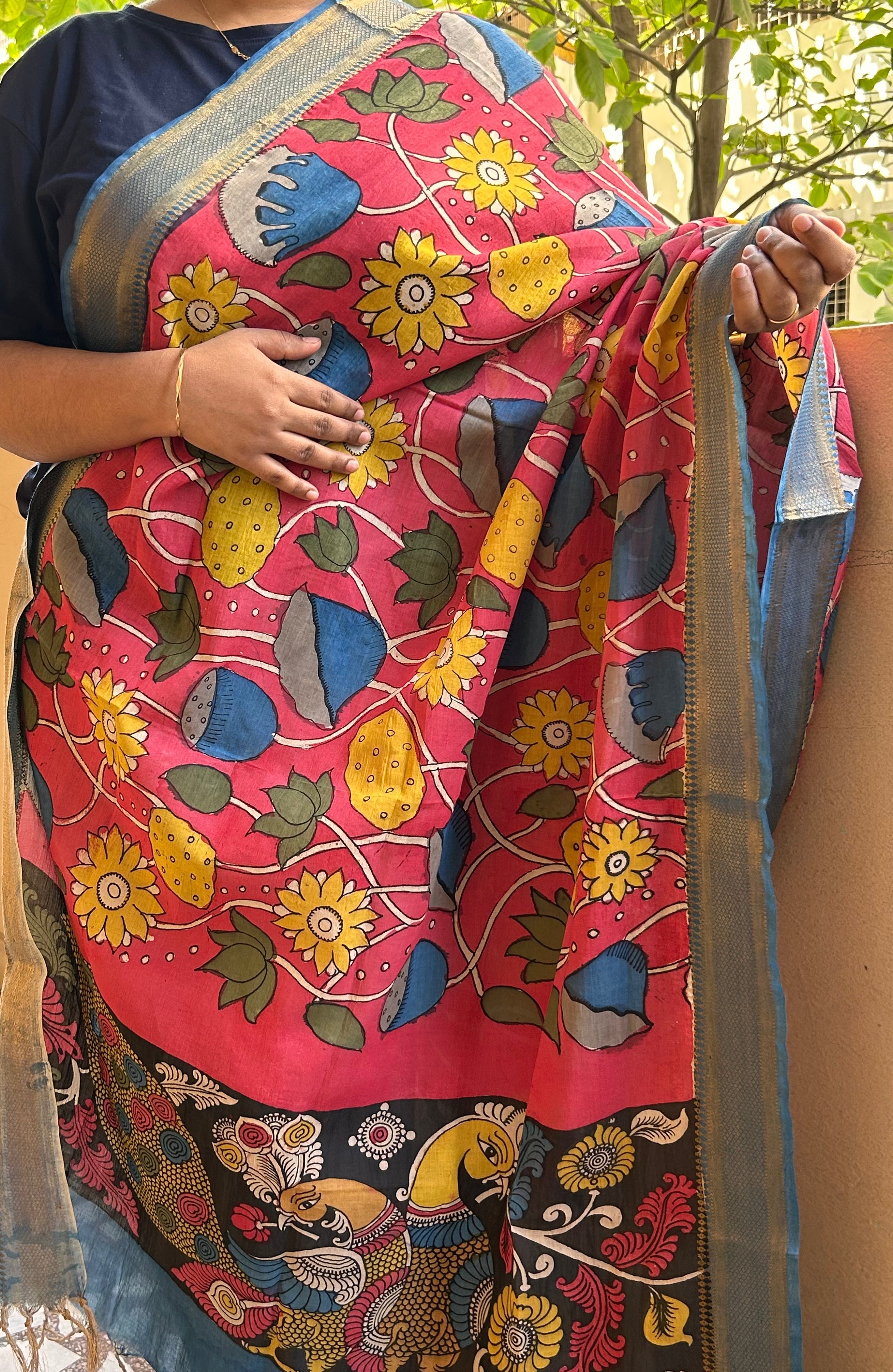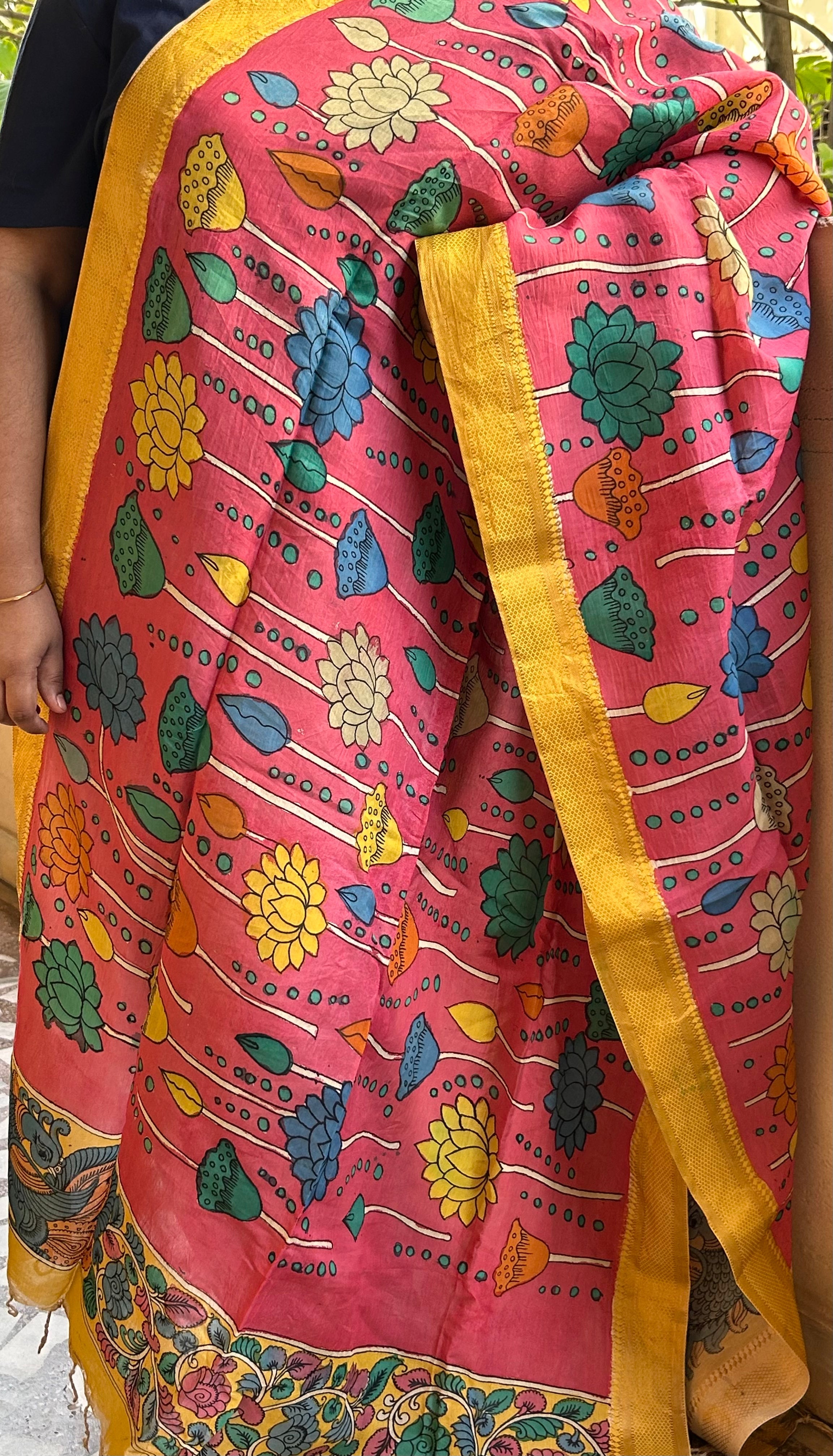 Pink Pen Kalamkari Dupatta in Bangalore Silk