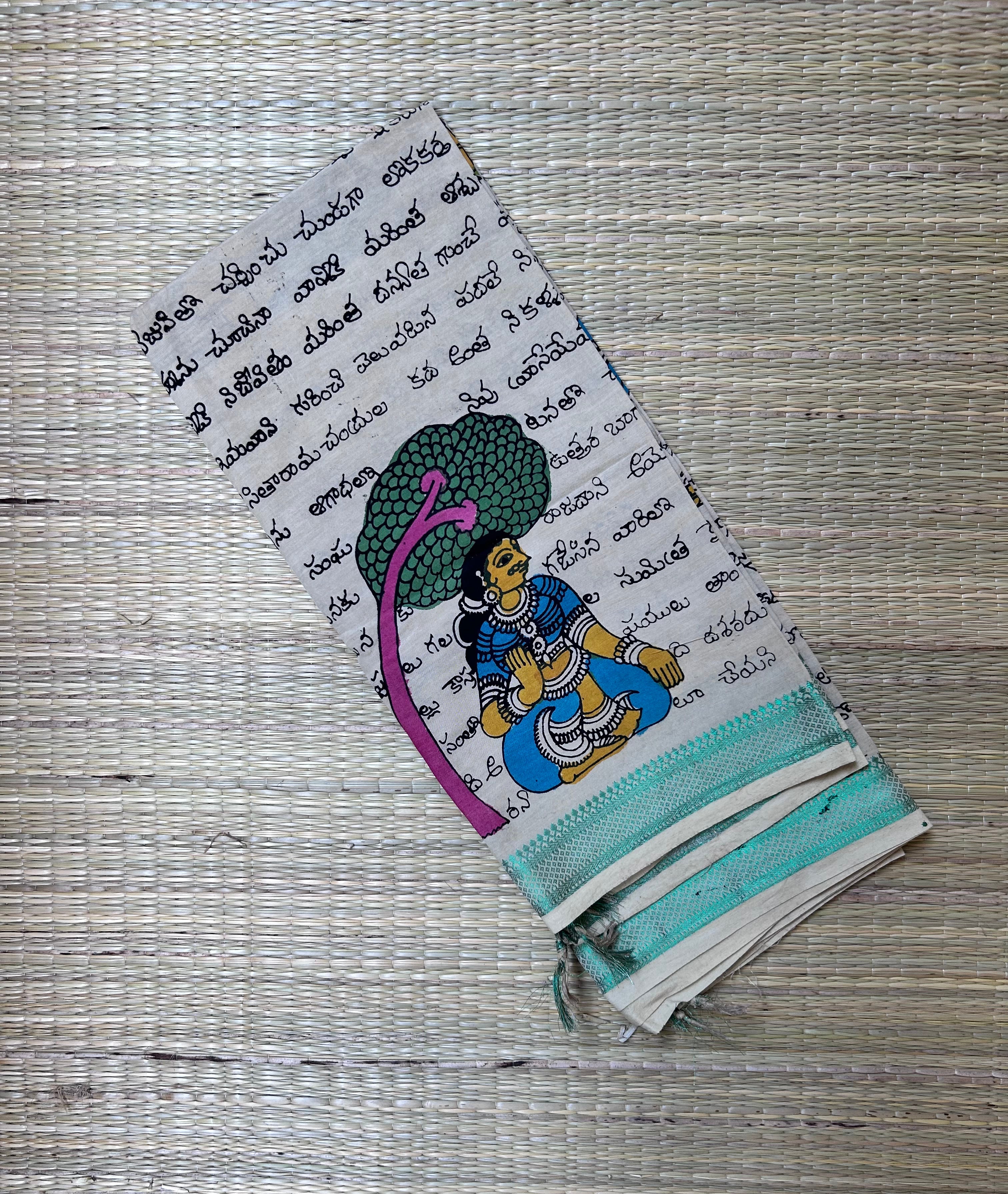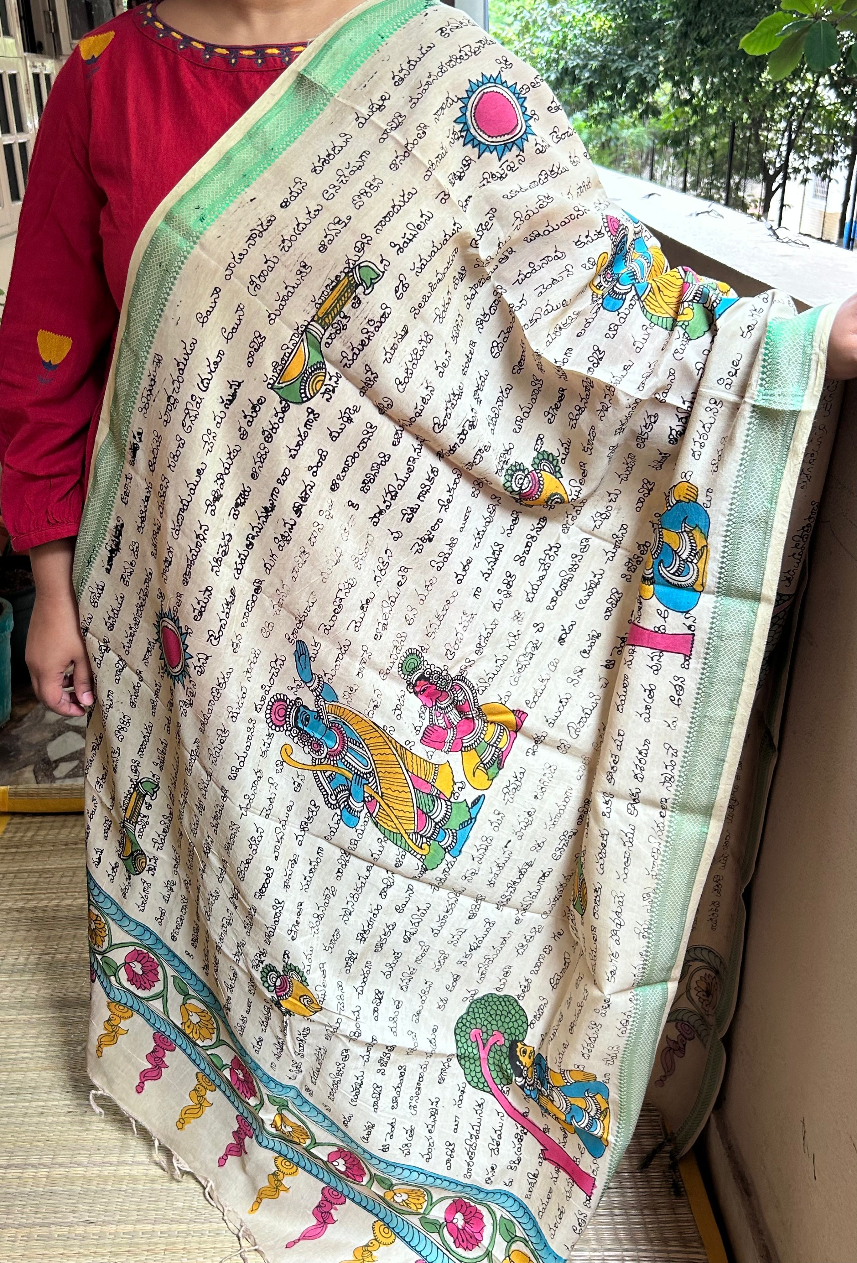 Beige Pen Kalamkari Dupatta in Bangalore Silk