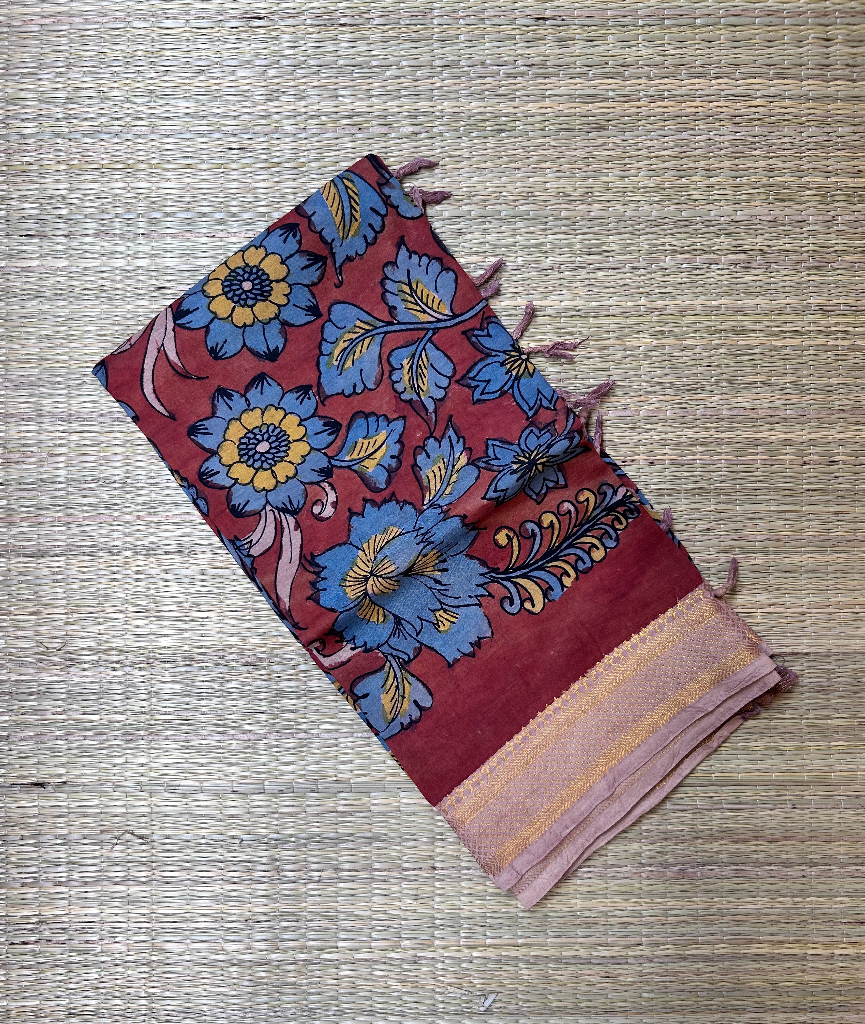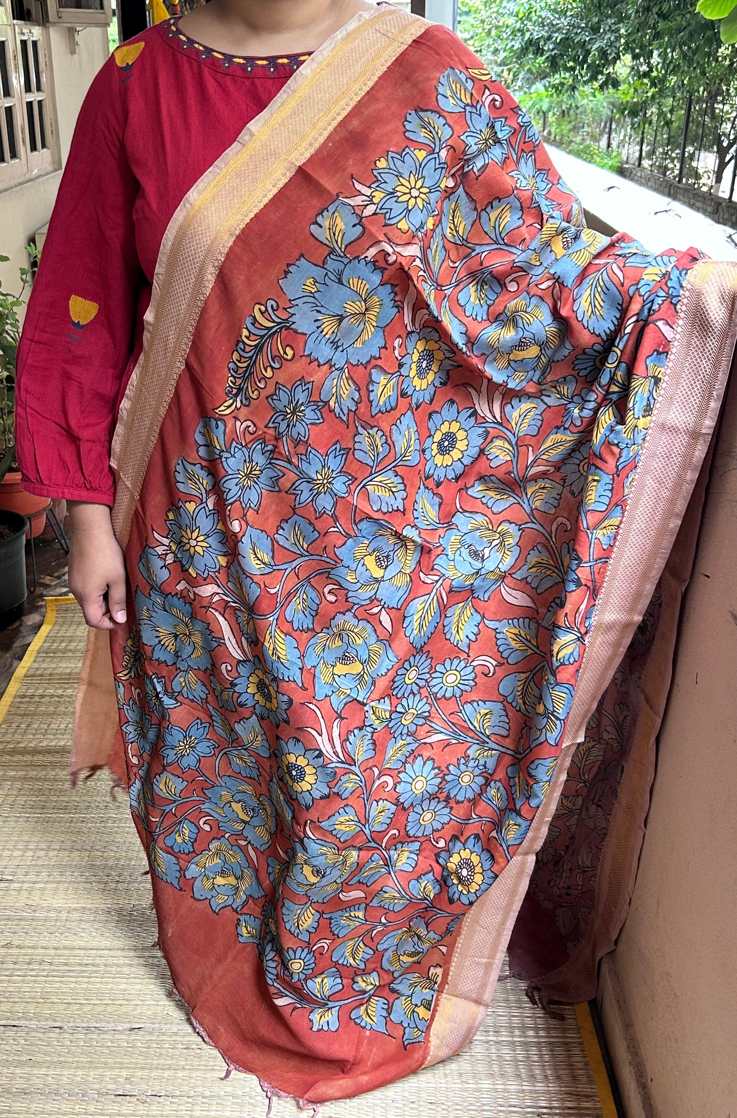 Red Pen Kalamkari Dupatta in Mangalagiri Silk