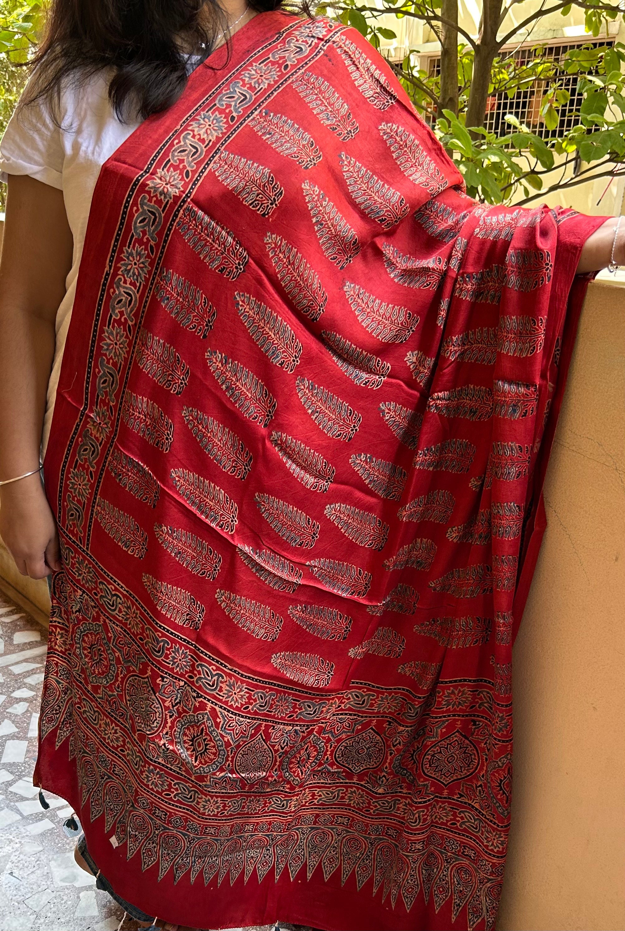 Red Ajrakh Modal Silk Handblock printed Dupatta