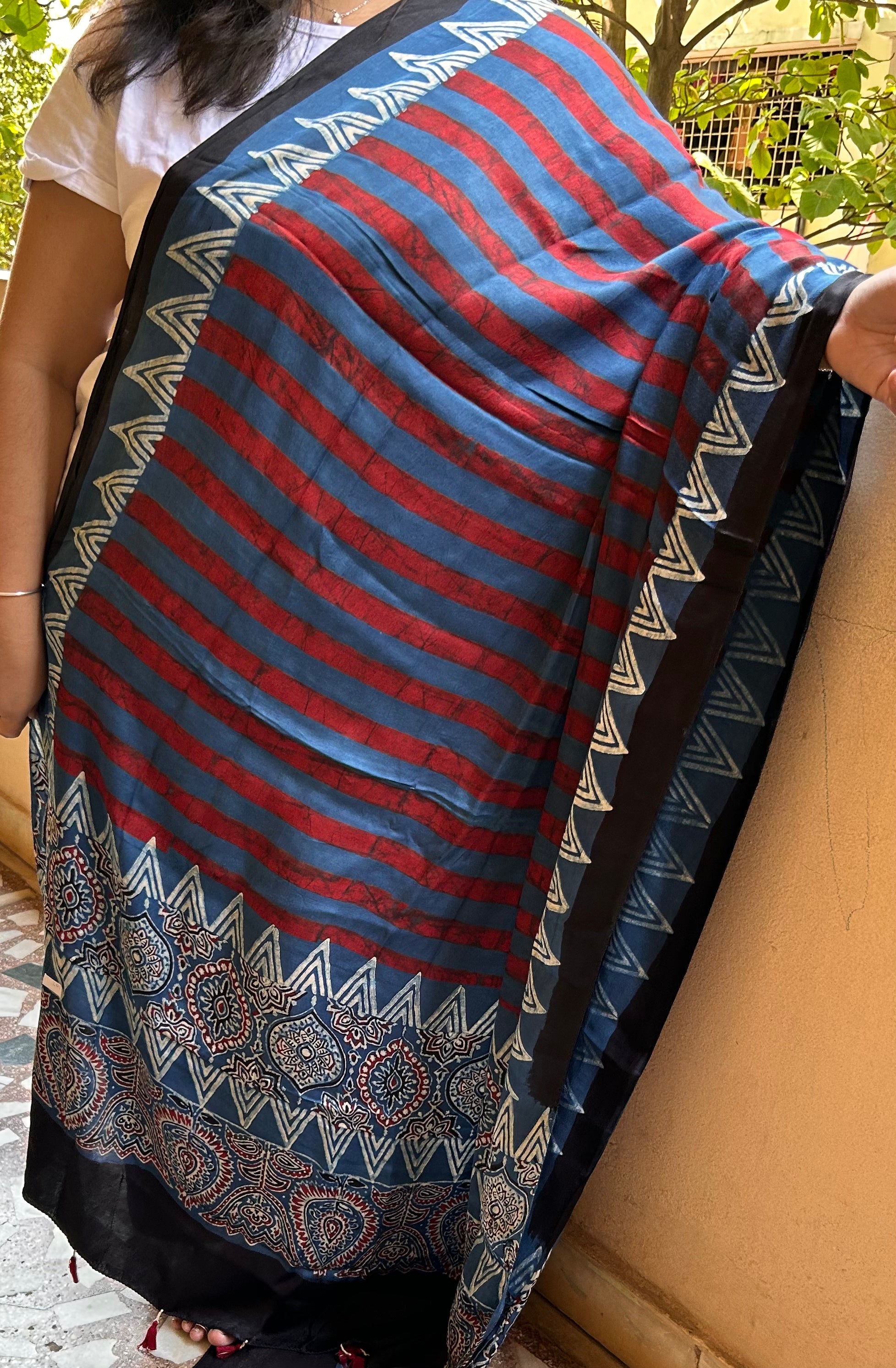 Striped Ajrakh Modal Silk Handblock printed Dupatta