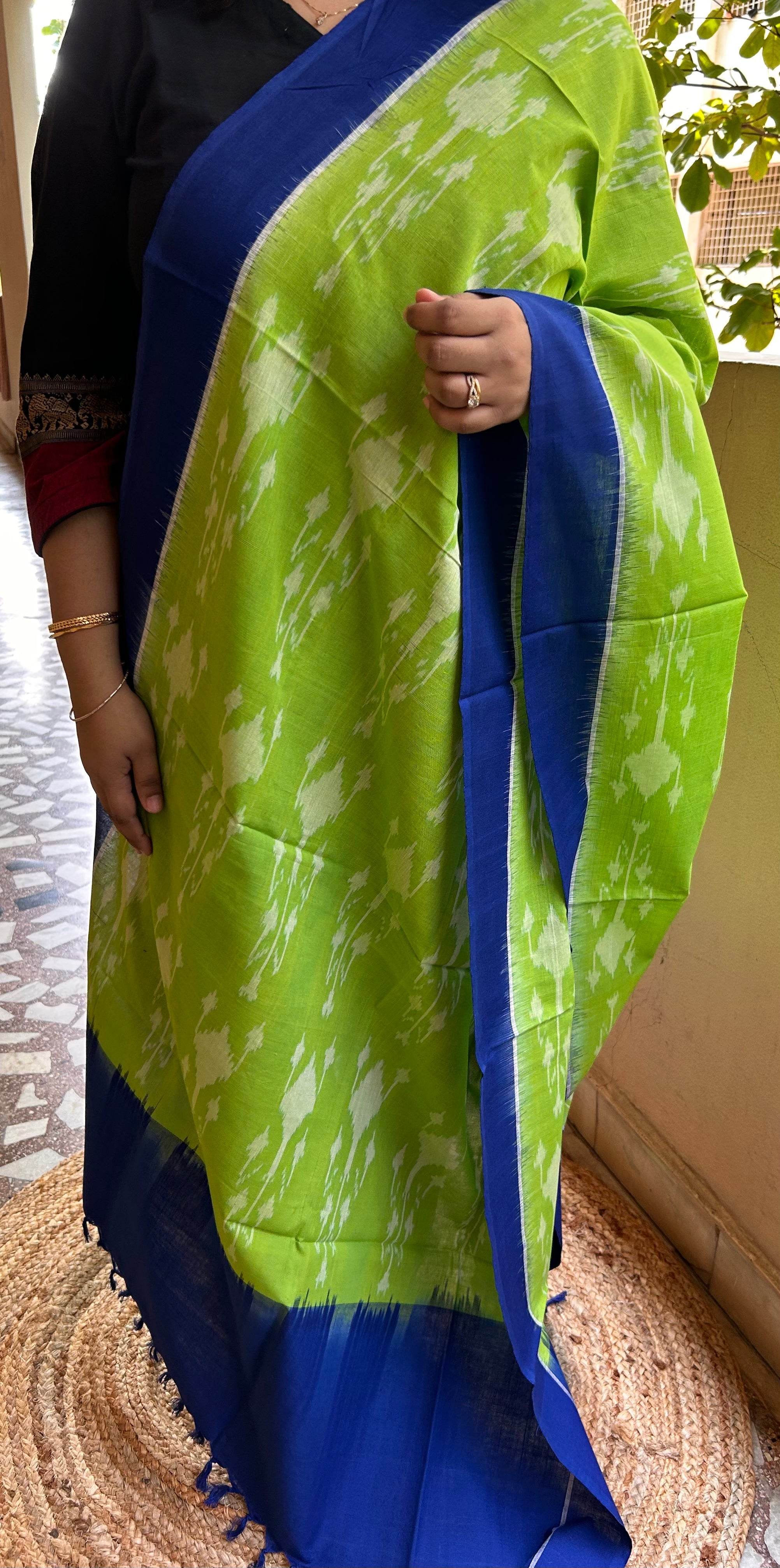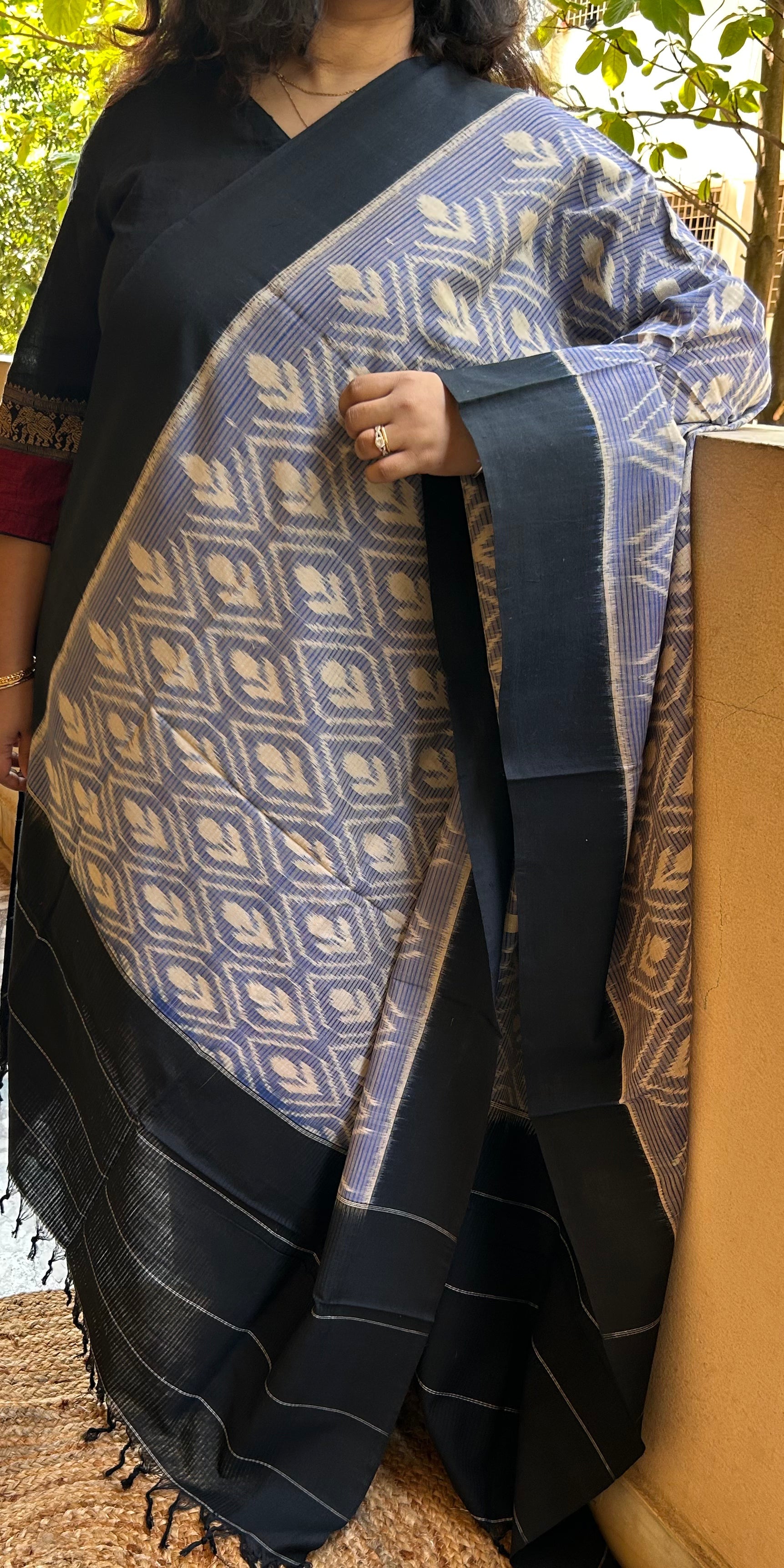 Grey , Beige and Black Handloom Ikkat Cotton Dupatta