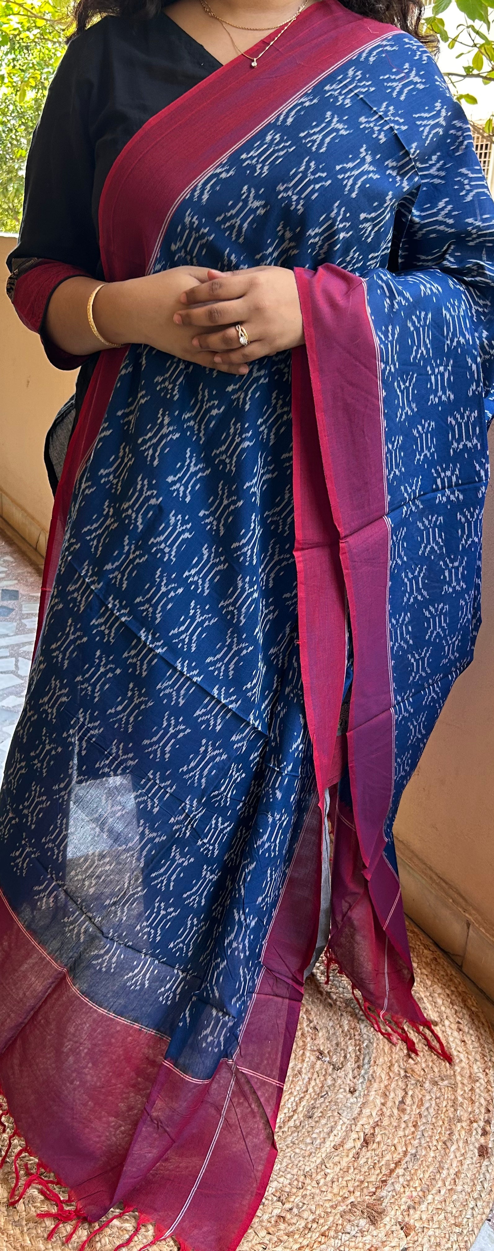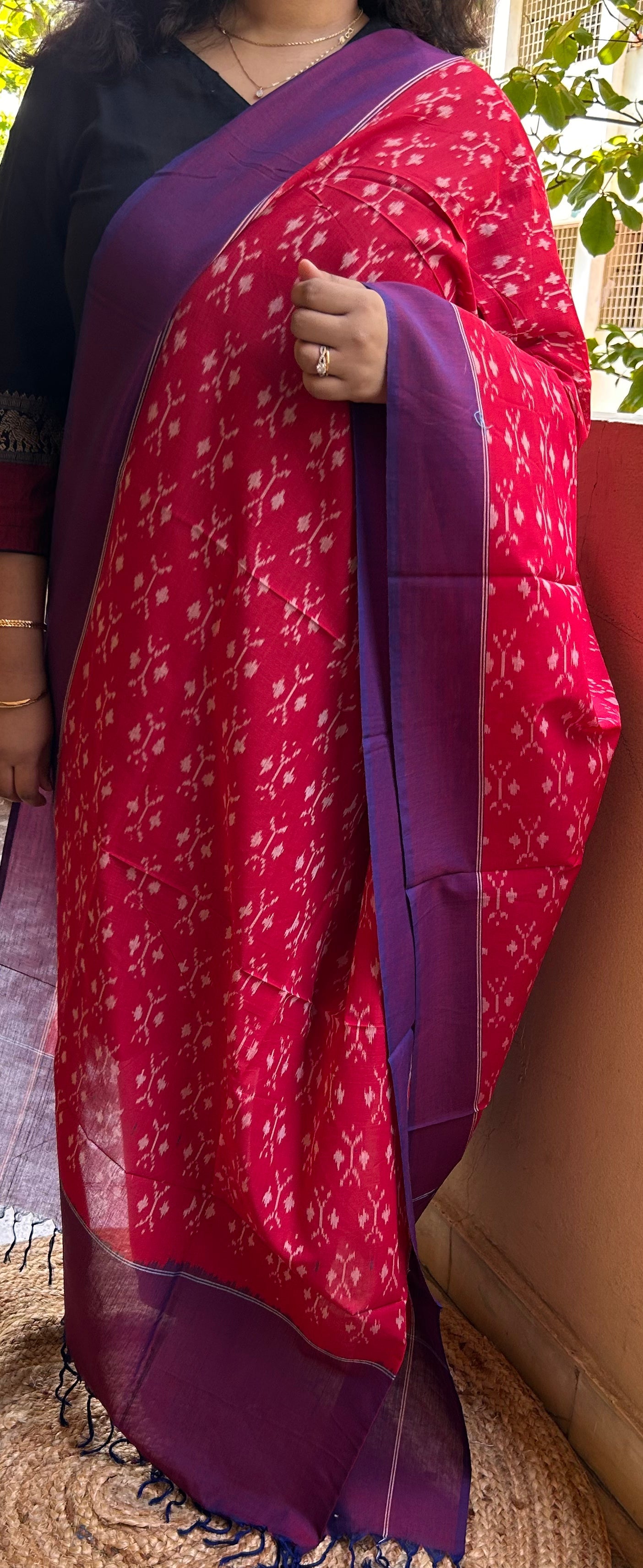Red and Purple Handloom Ikkat Cotton Dupatta