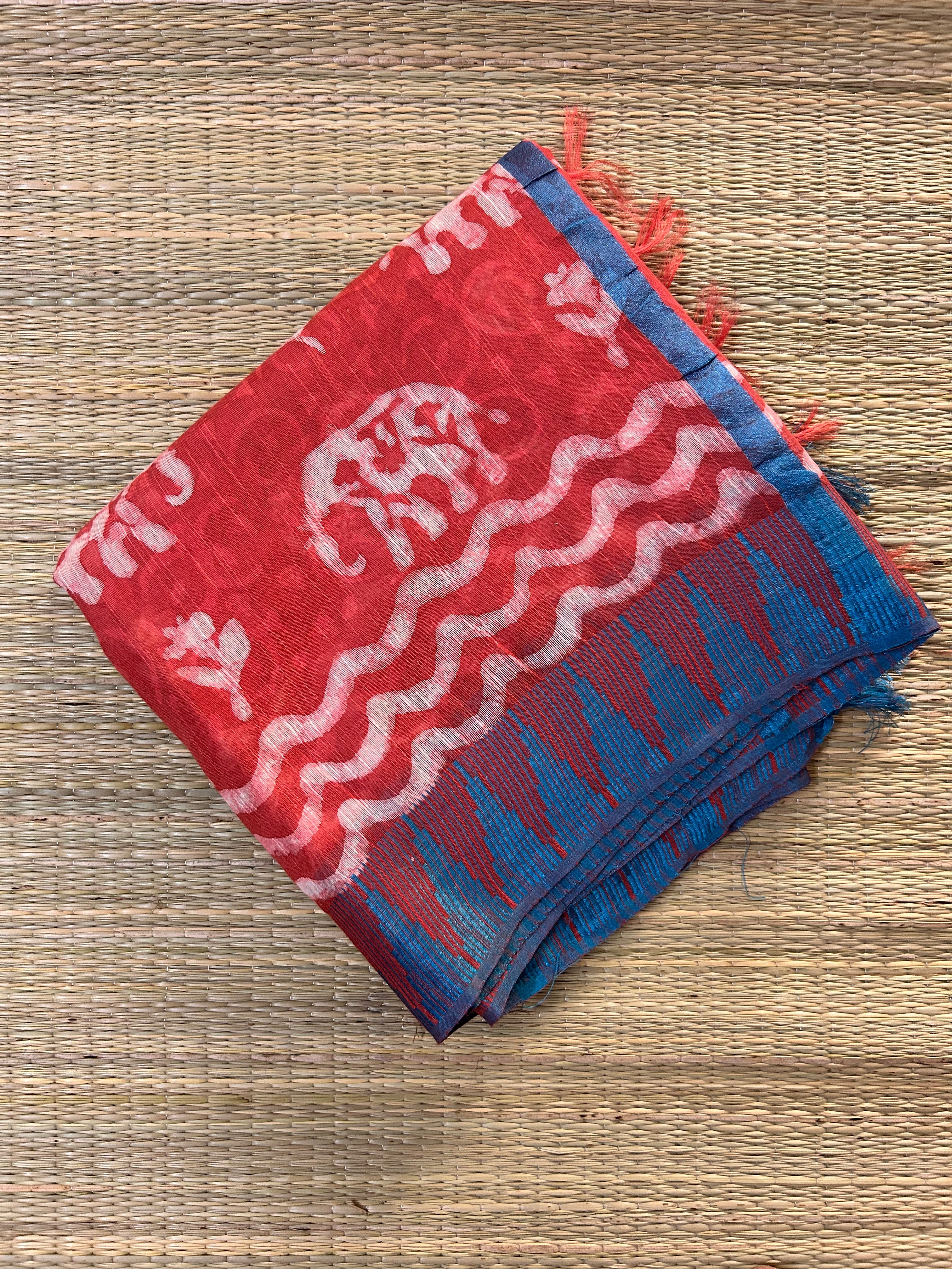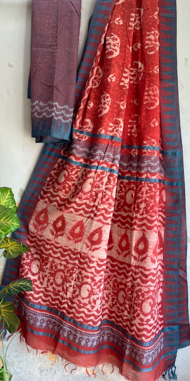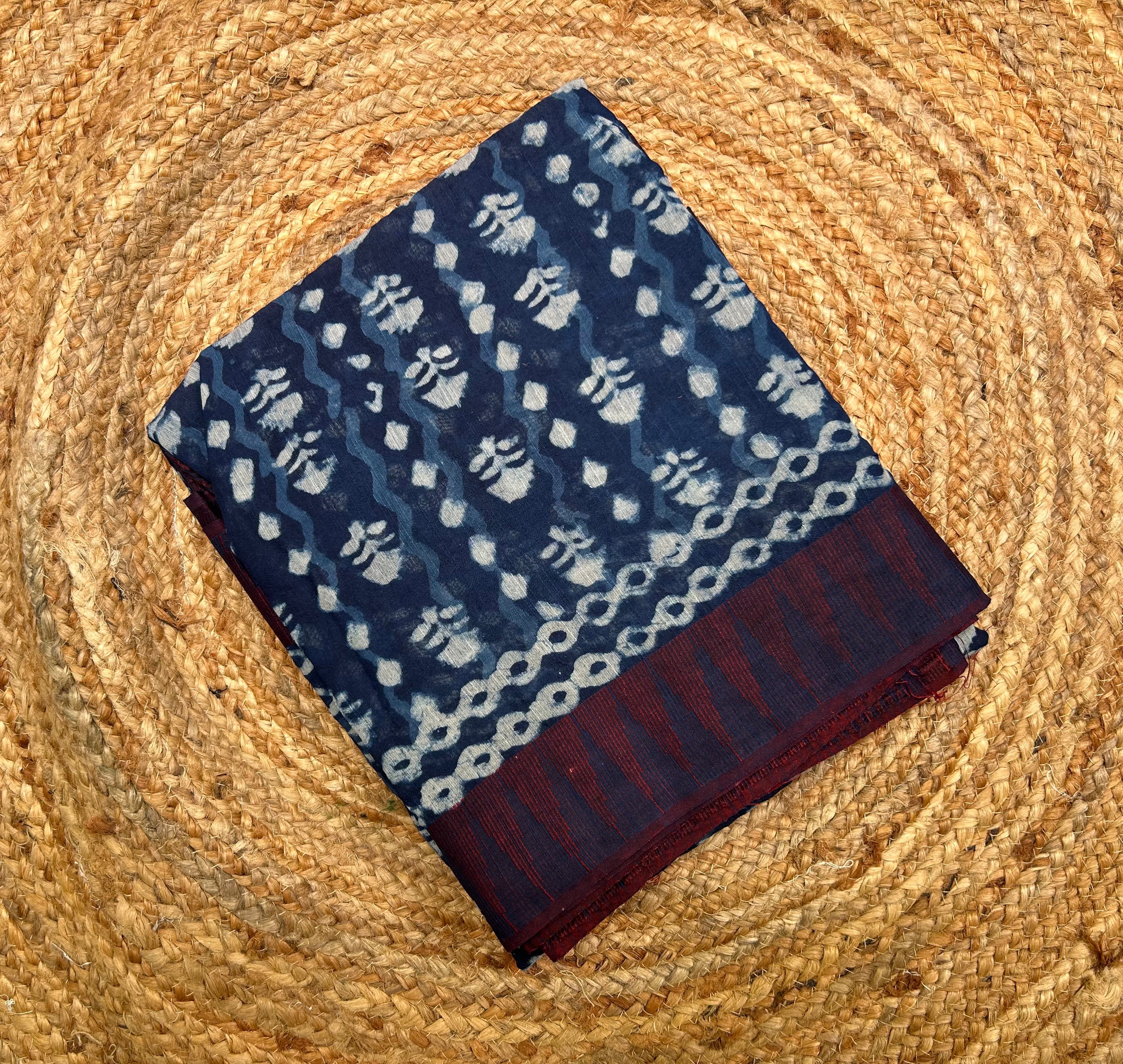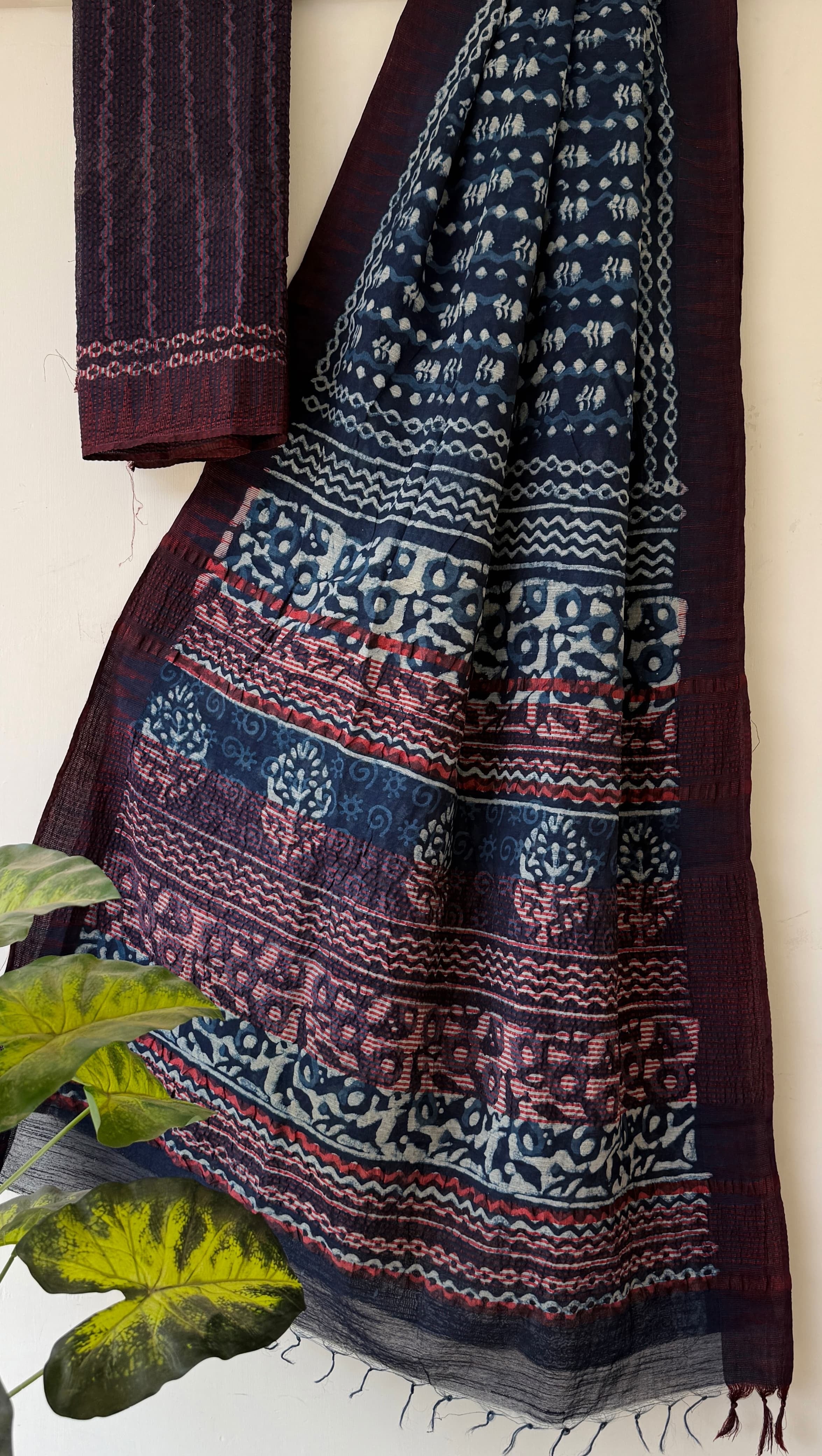 Dark Blue Vanaspati Ajrakh Linen Saree
