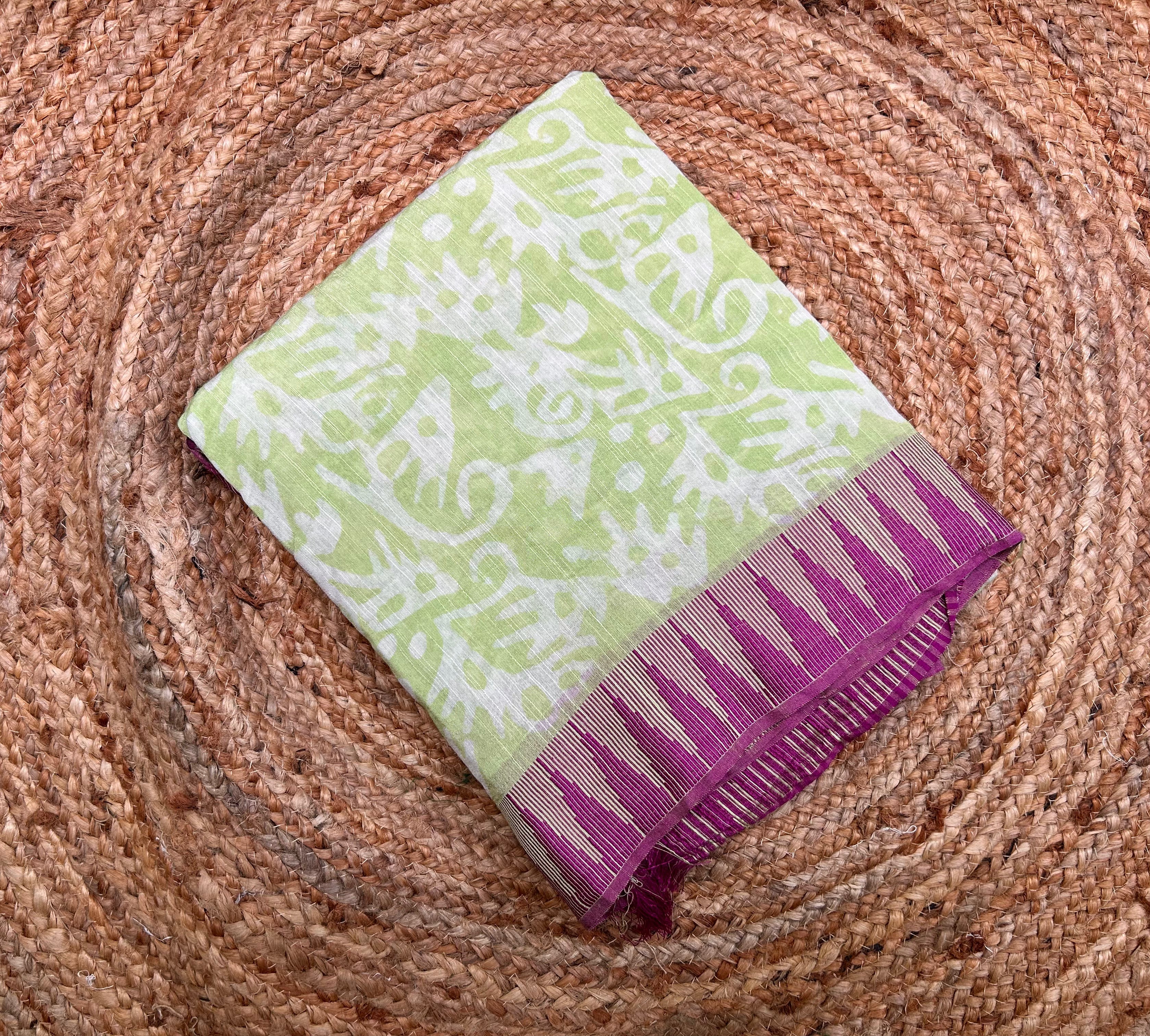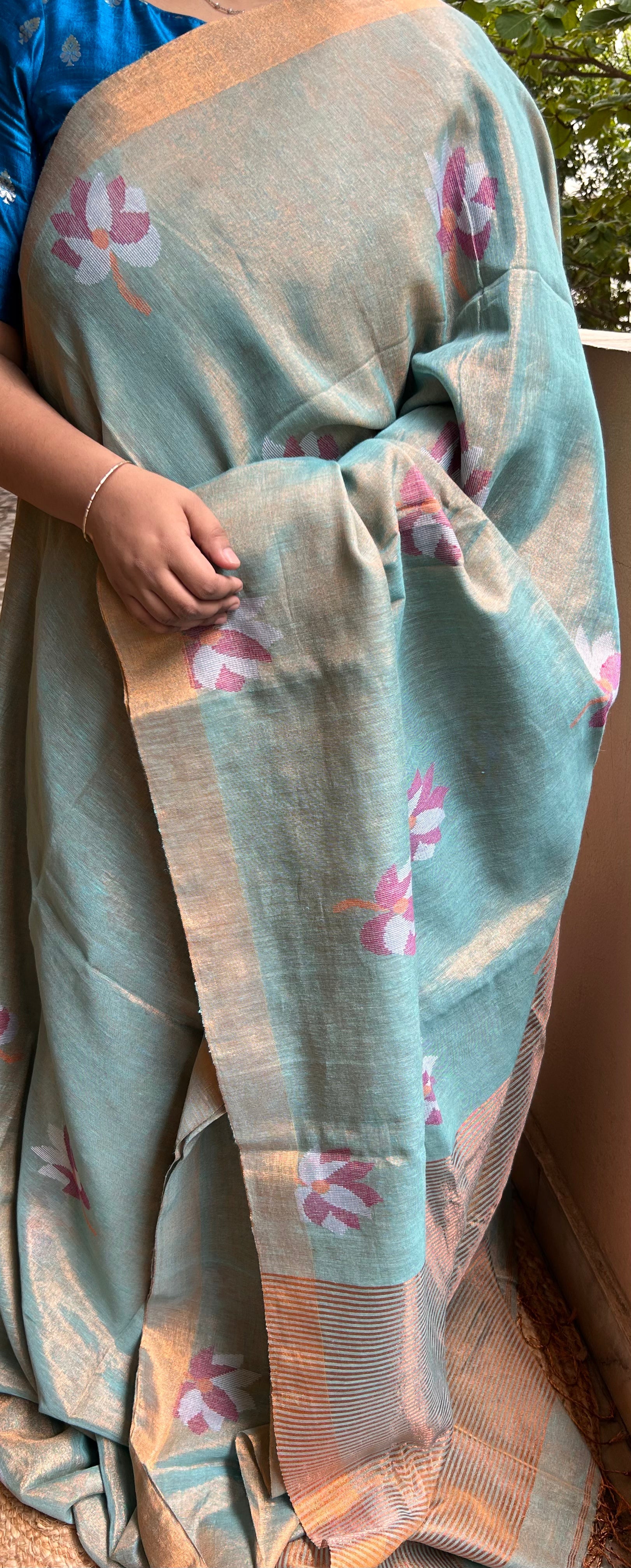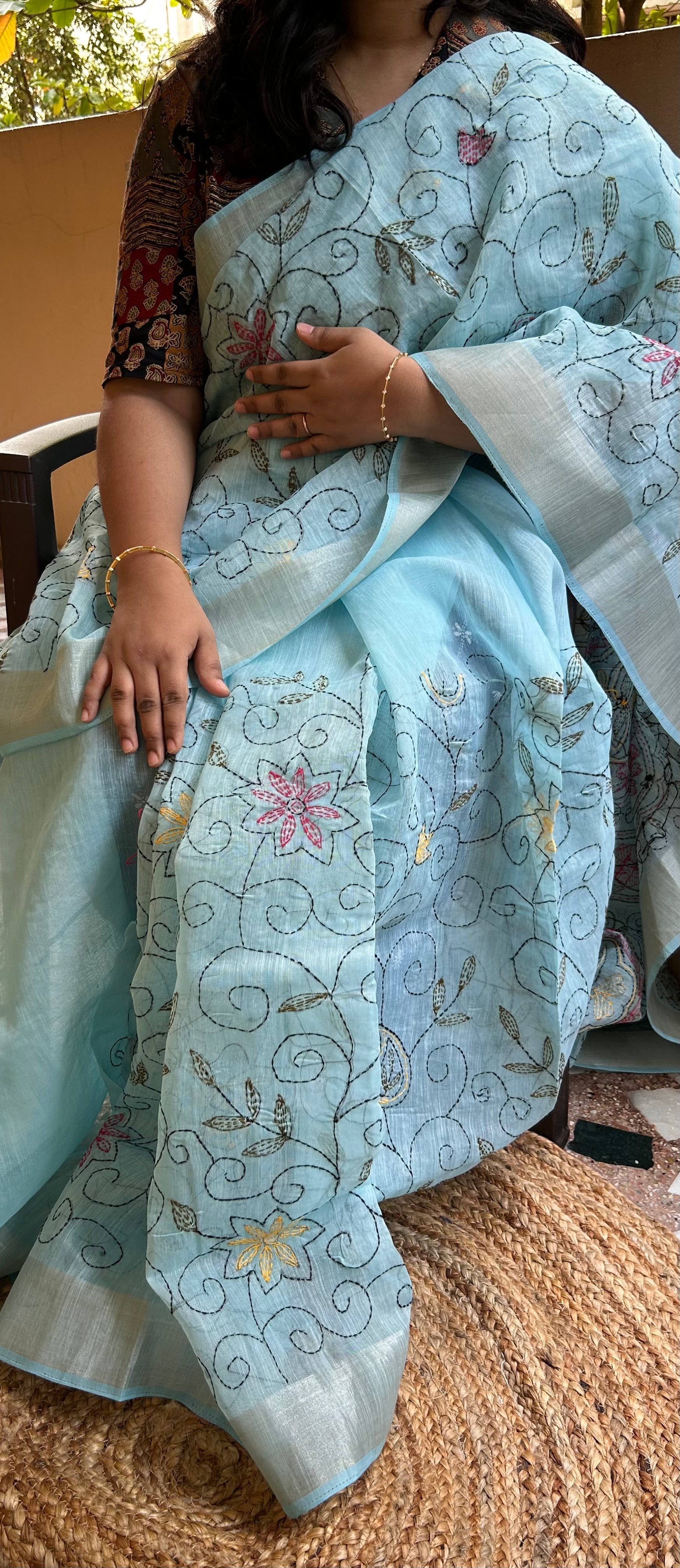Dark Blue Vanaspati Ajrakh Linen Saree