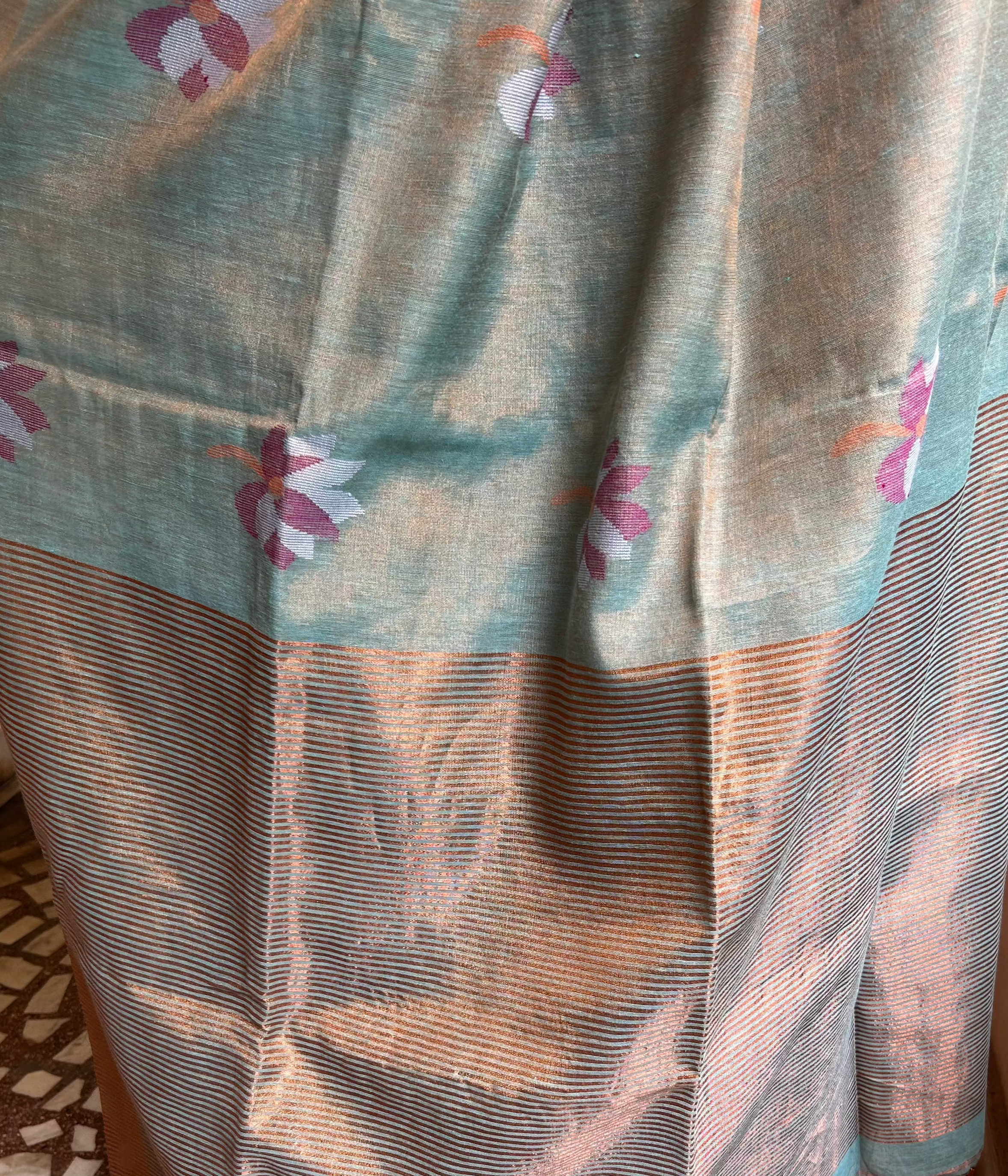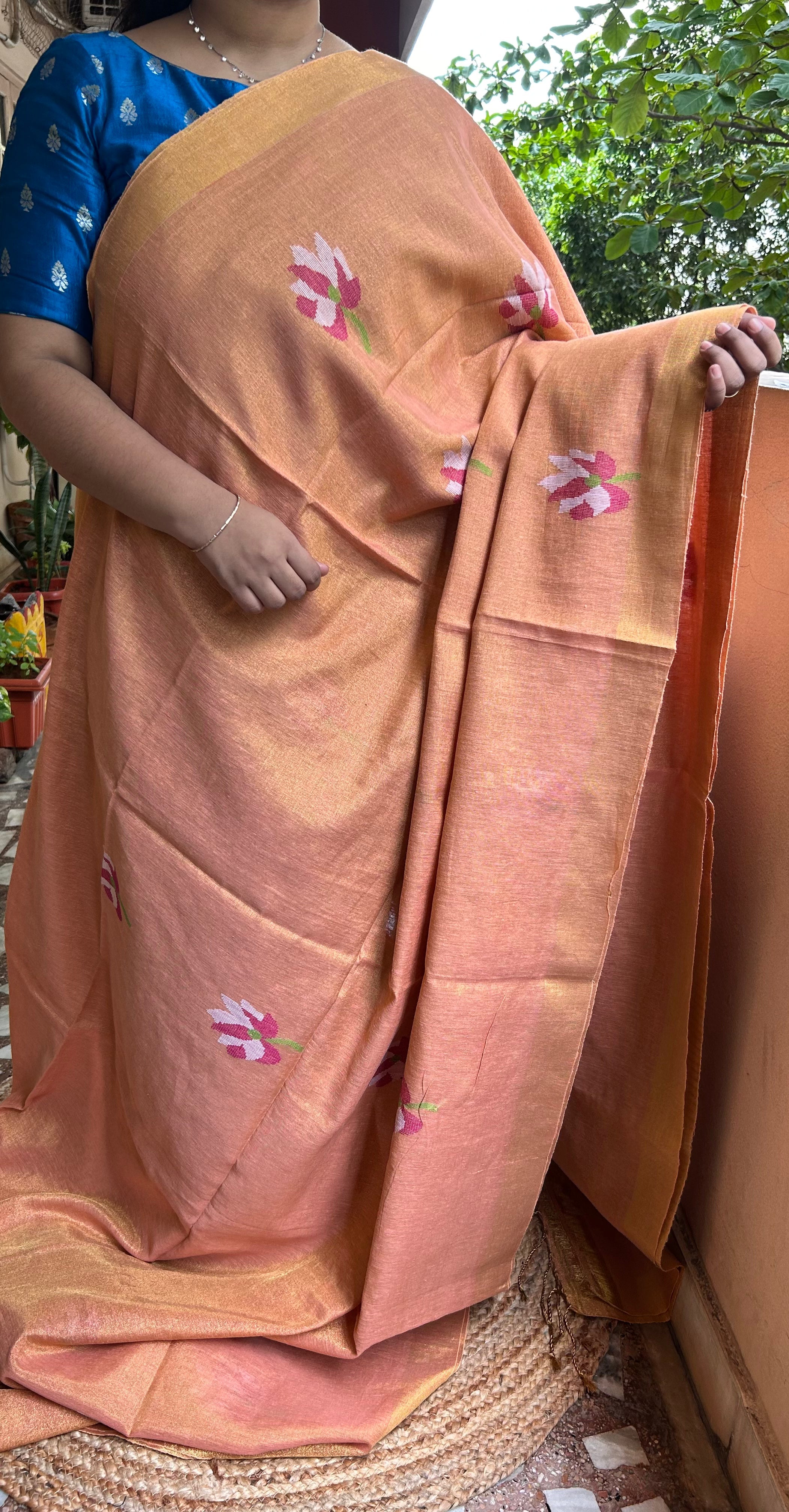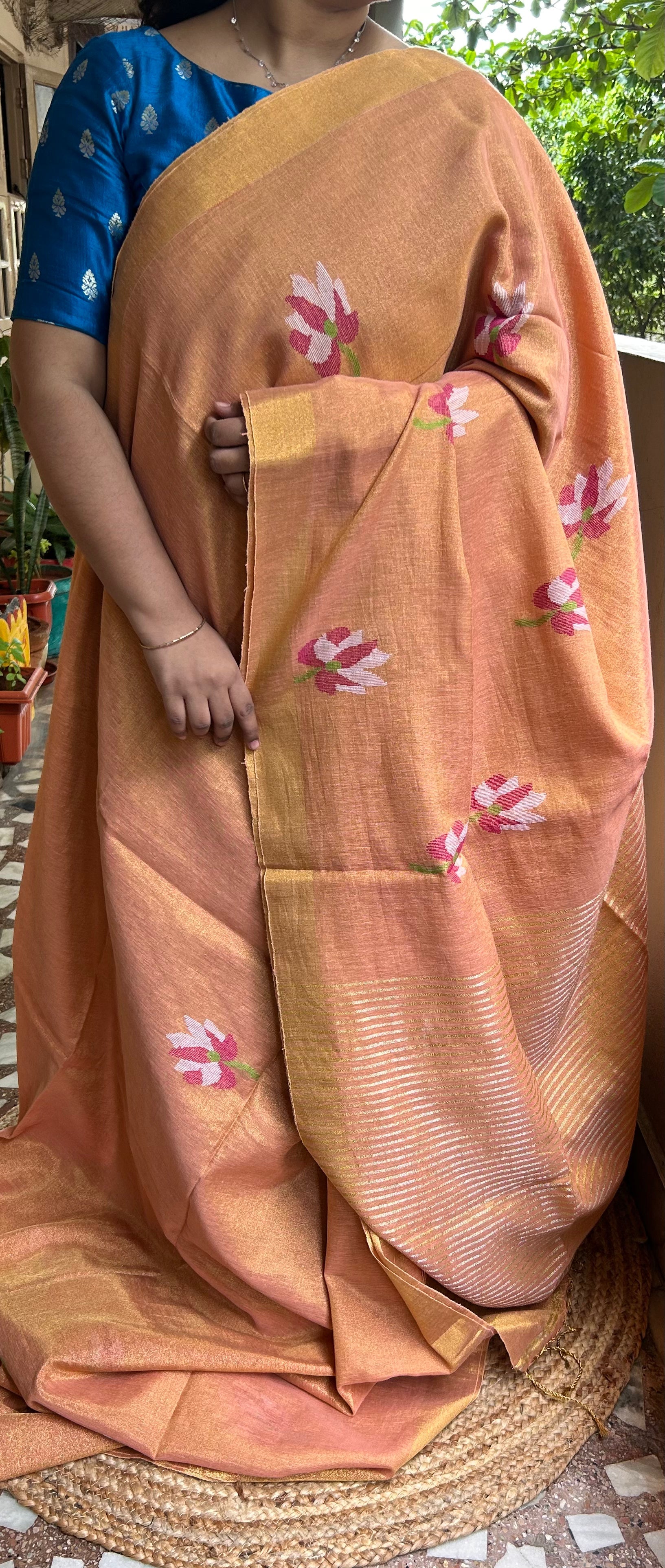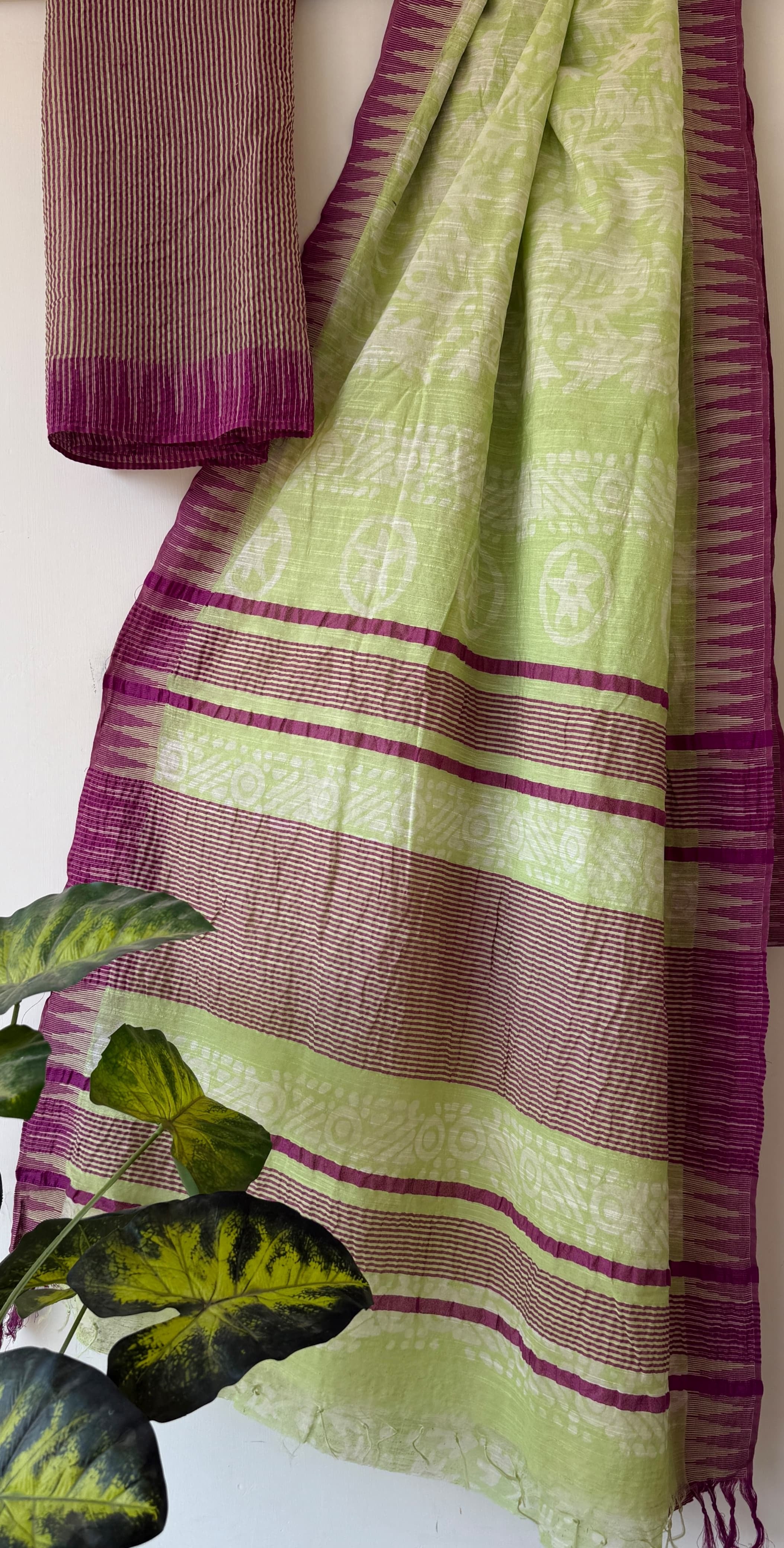 Dark Blue Vanaspati Ajrakh Linen Saree