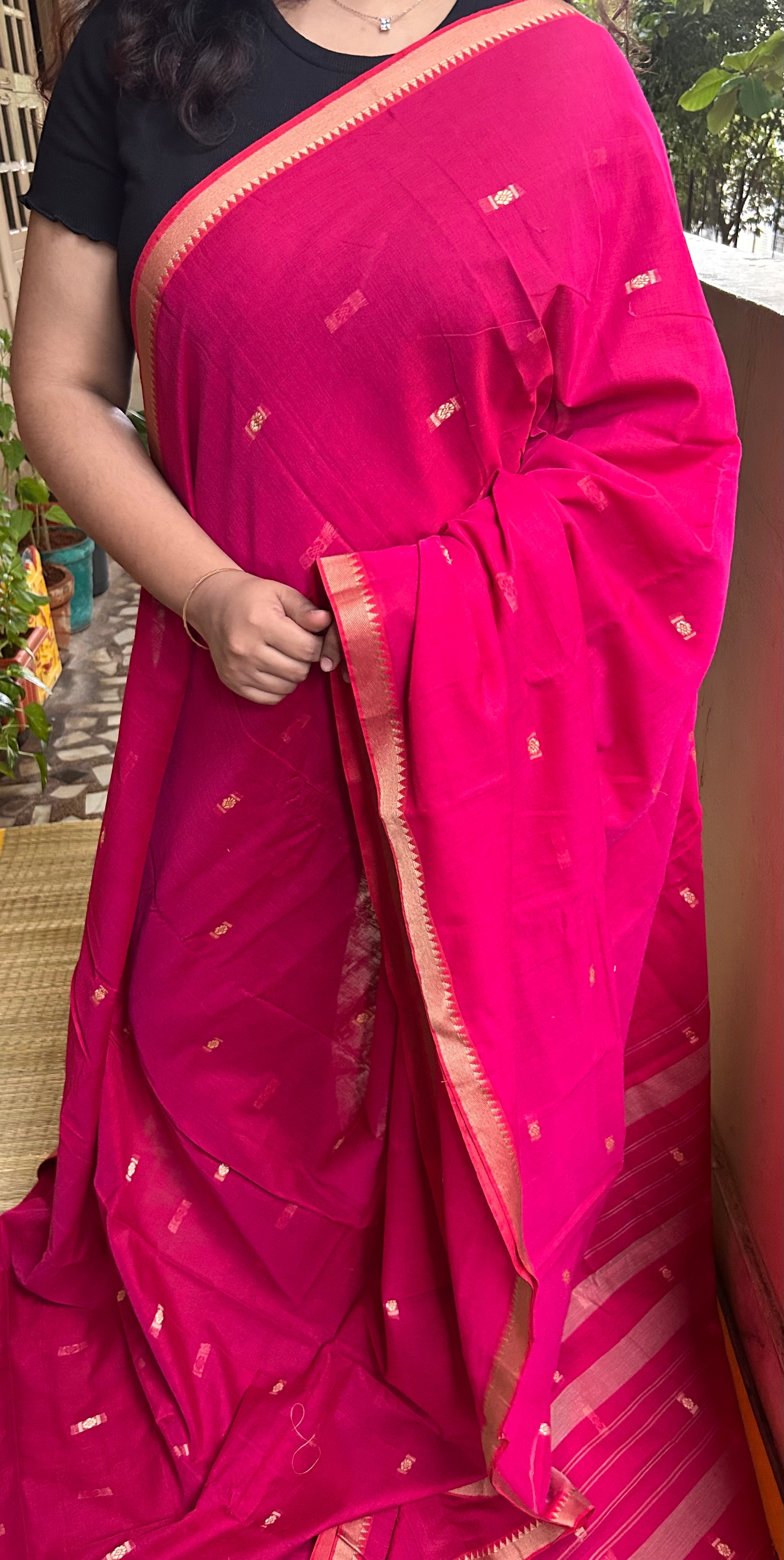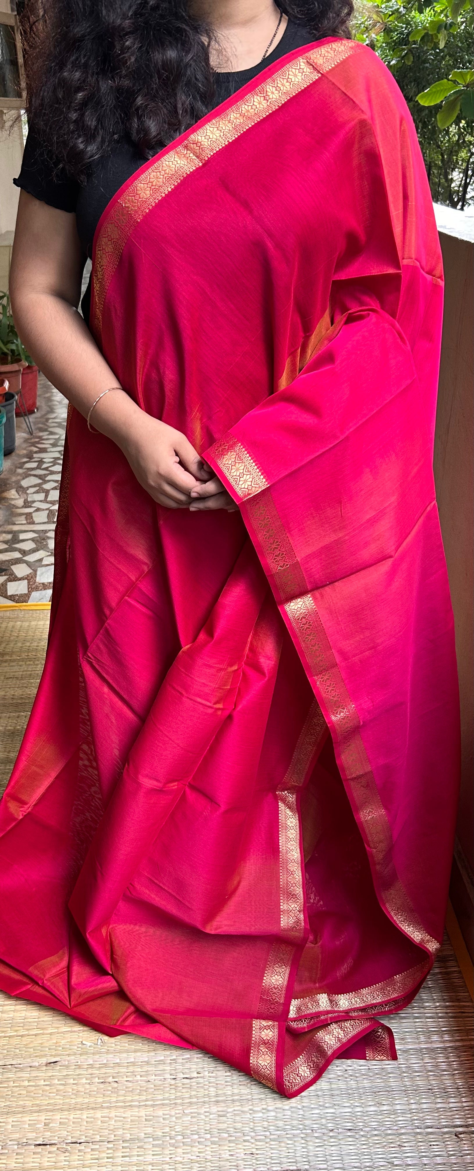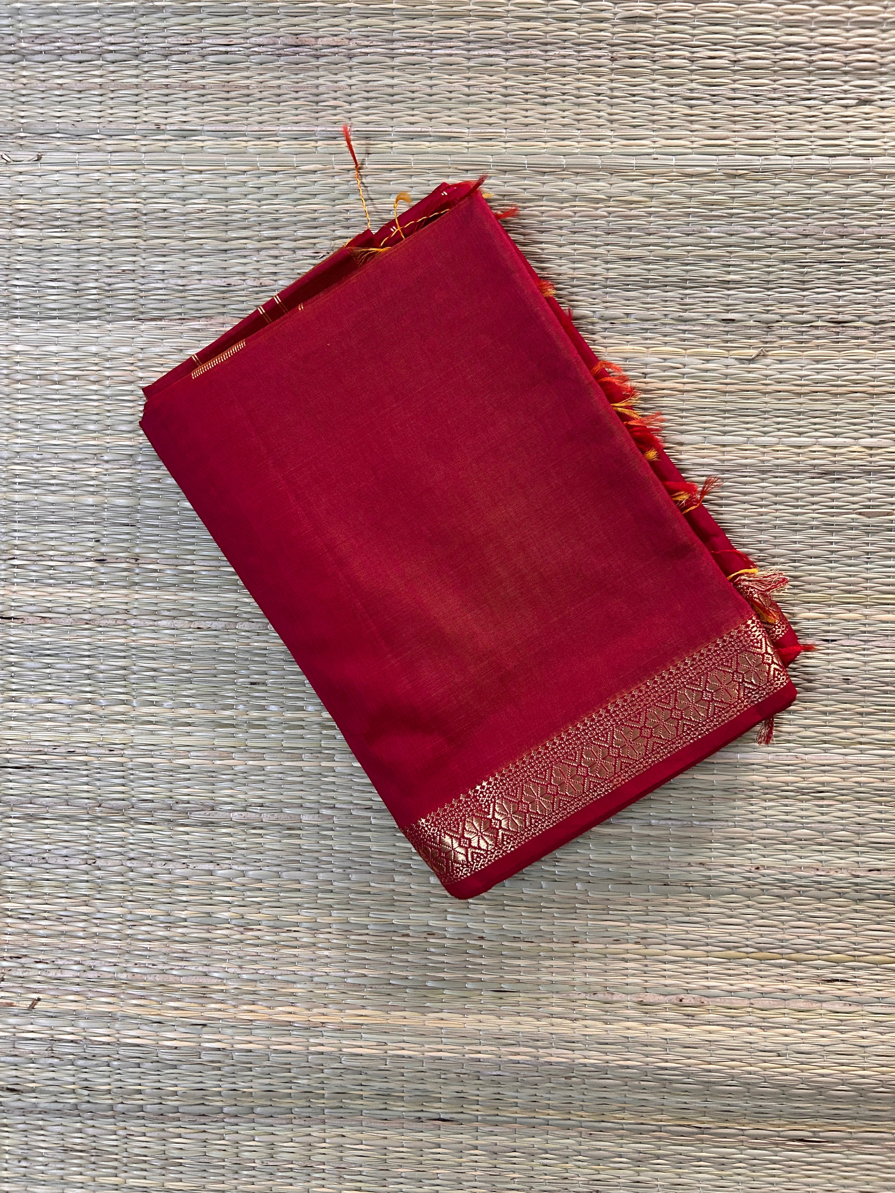 Red & Yellow Maheswari Silk Cotton Handloom Saree
