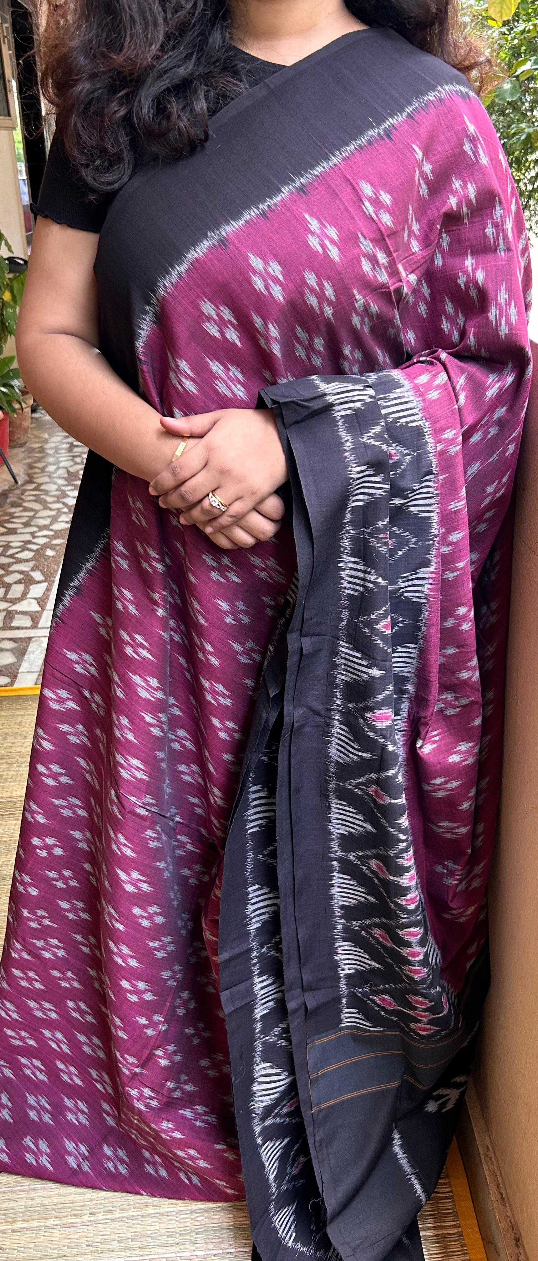Magenta & Black Pochampally Ikkat Cotton Saree