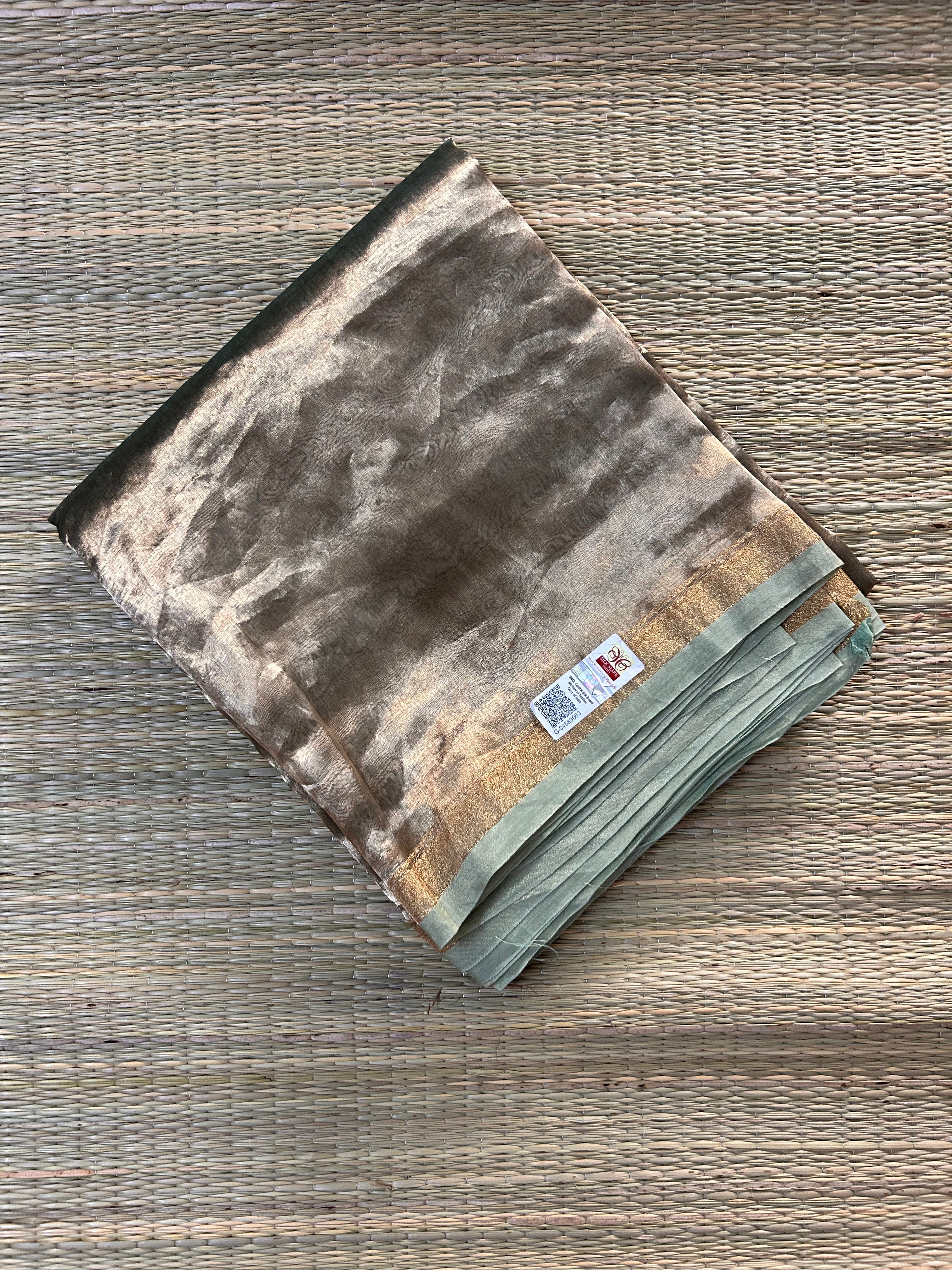 Pure Banarasi Tissue Saree in Gold & Sea Green