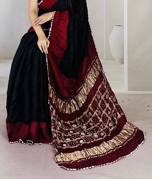 Magenta Gajji Silk Bandhani Saree