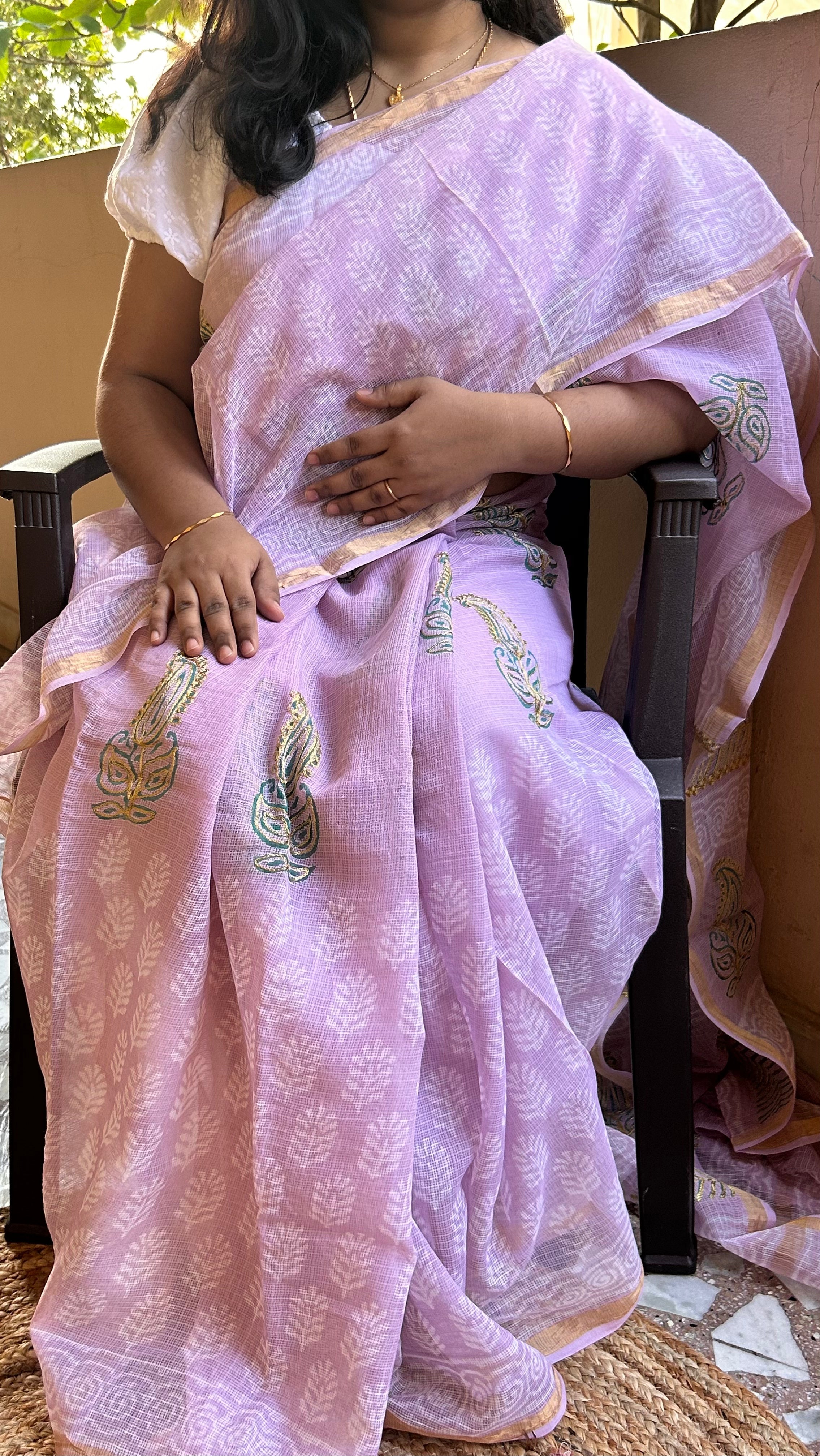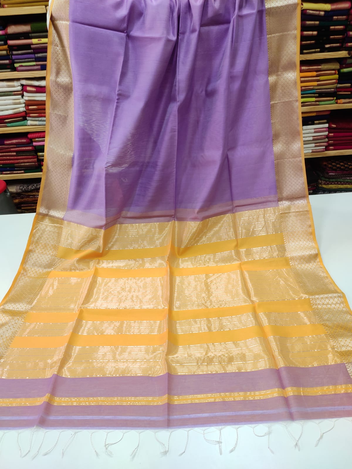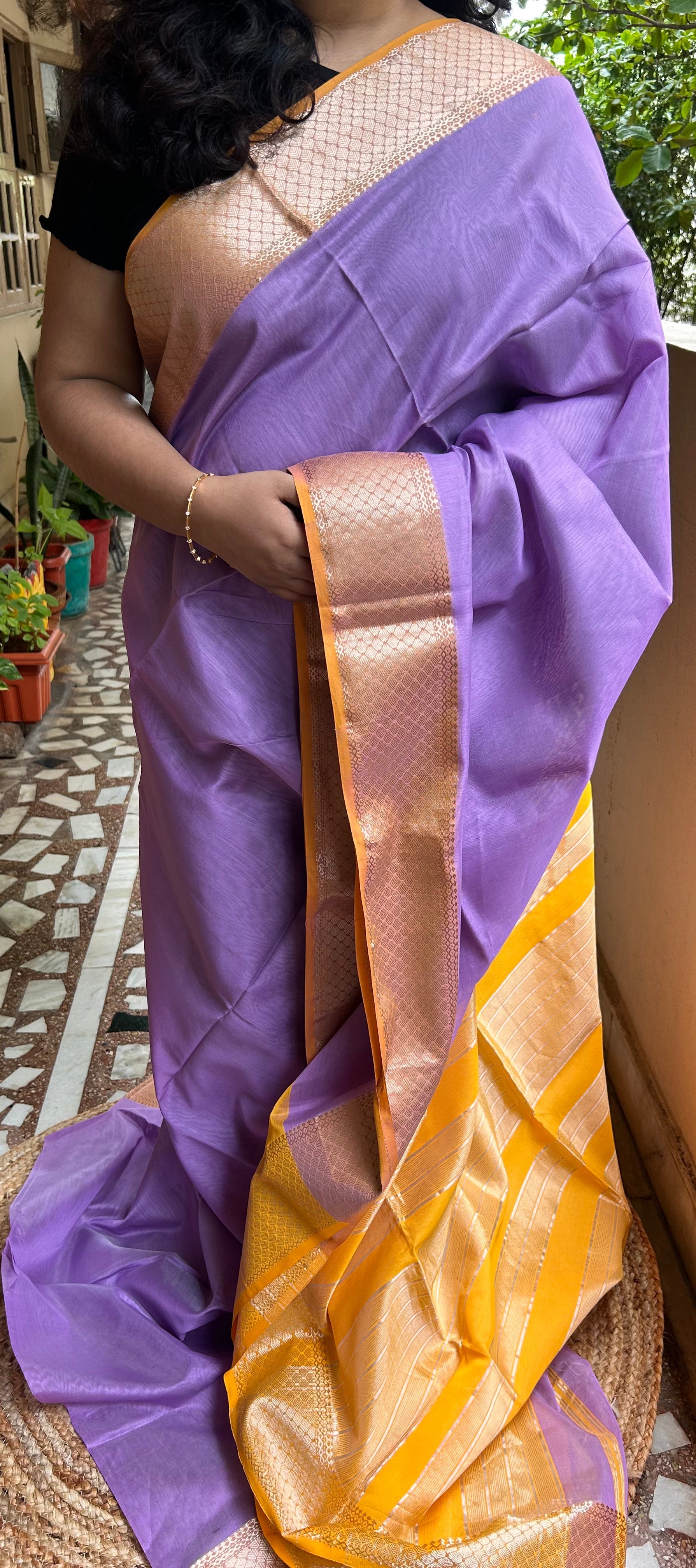 Lavender & Mustard Maheswari Silk Cotton Handloom Saree