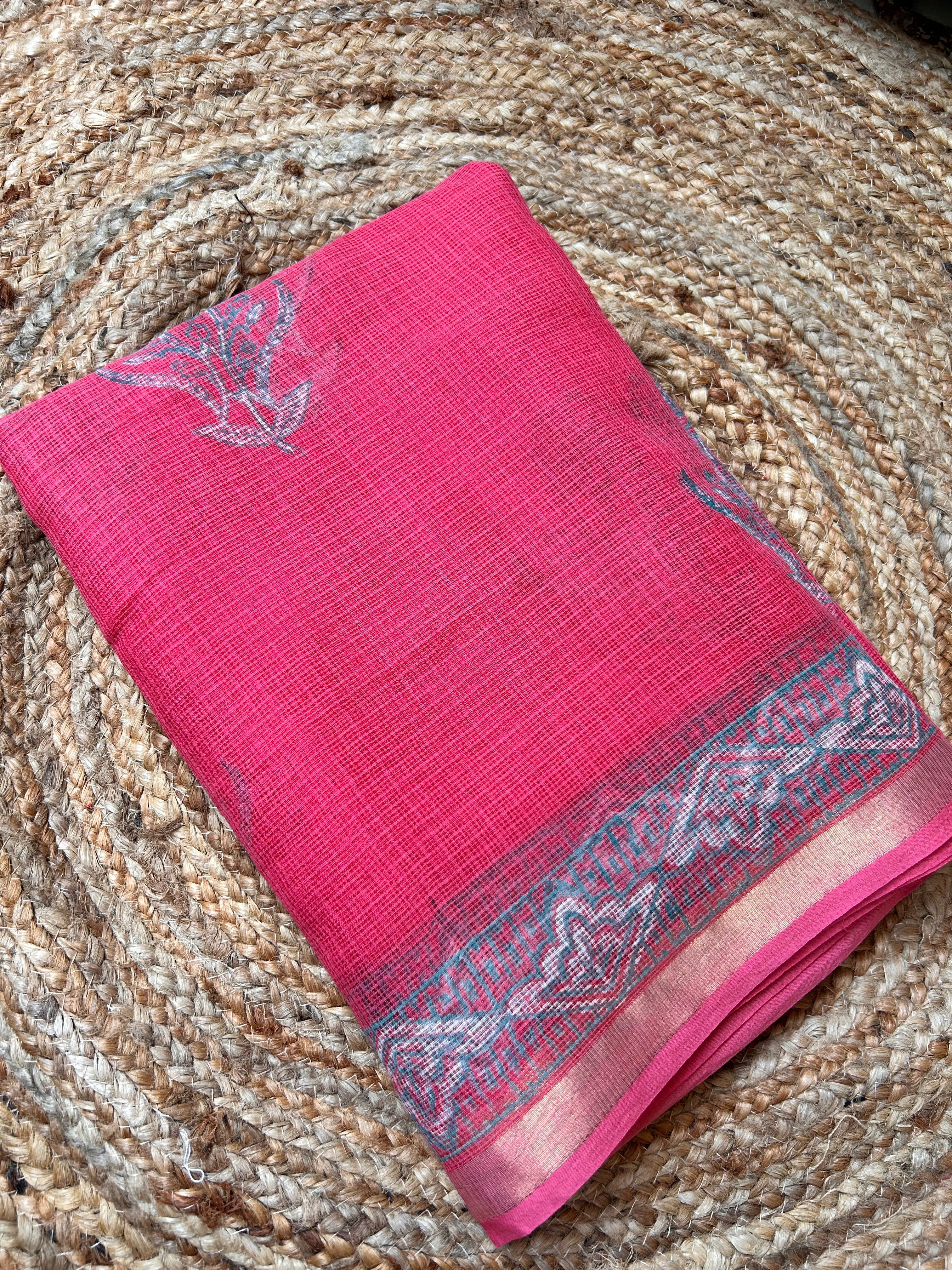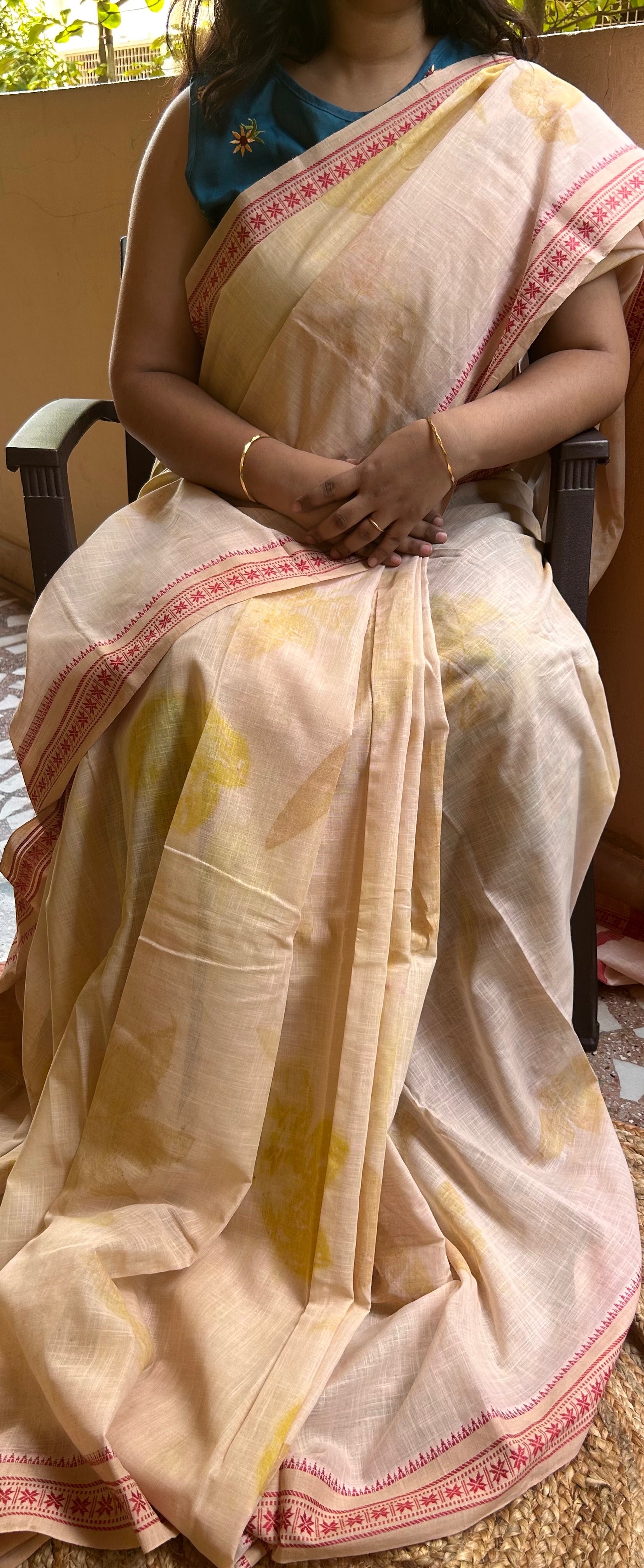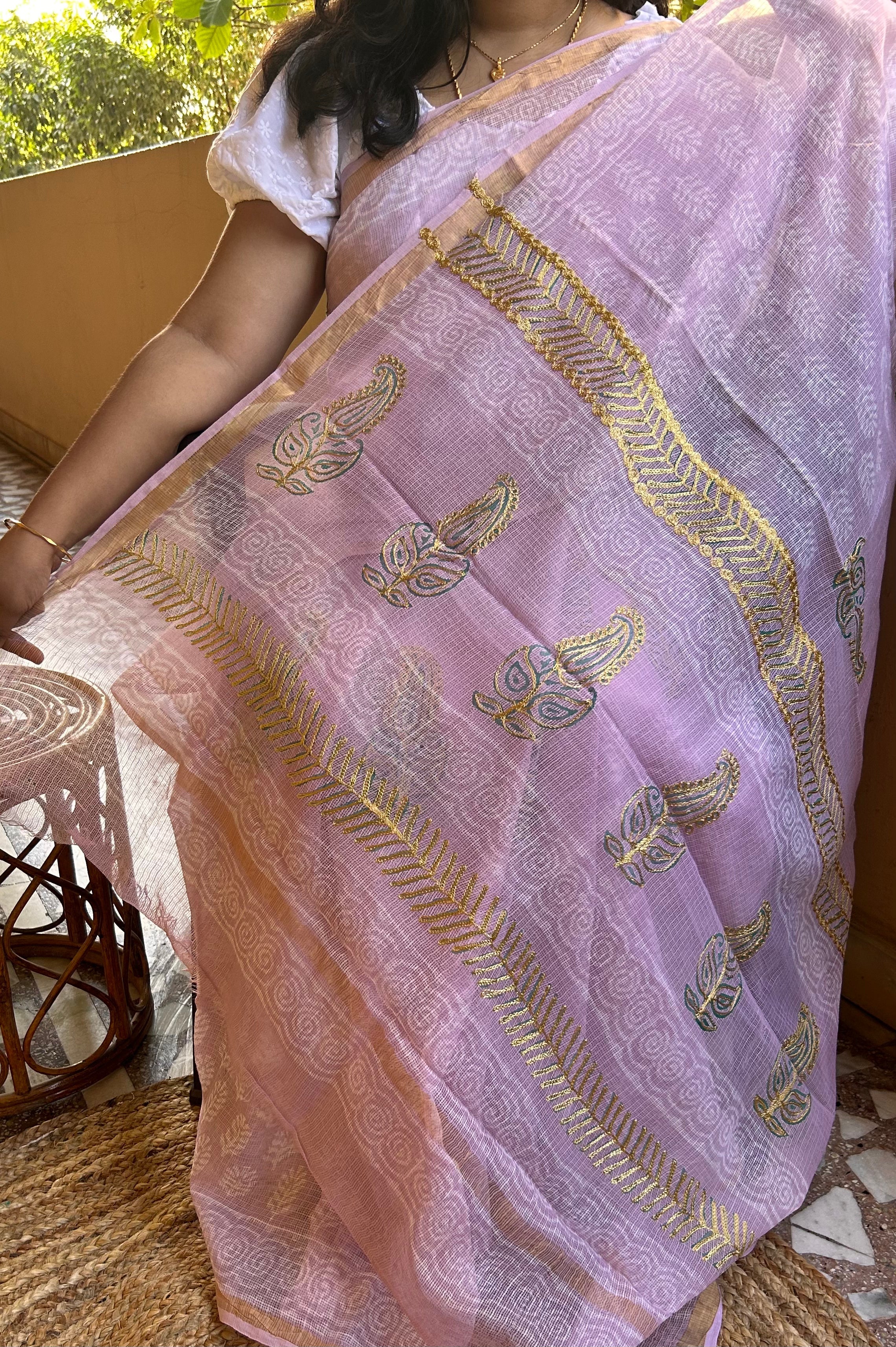 Lavender & Mustard Maheswari Silk Cotton Handloom Saree