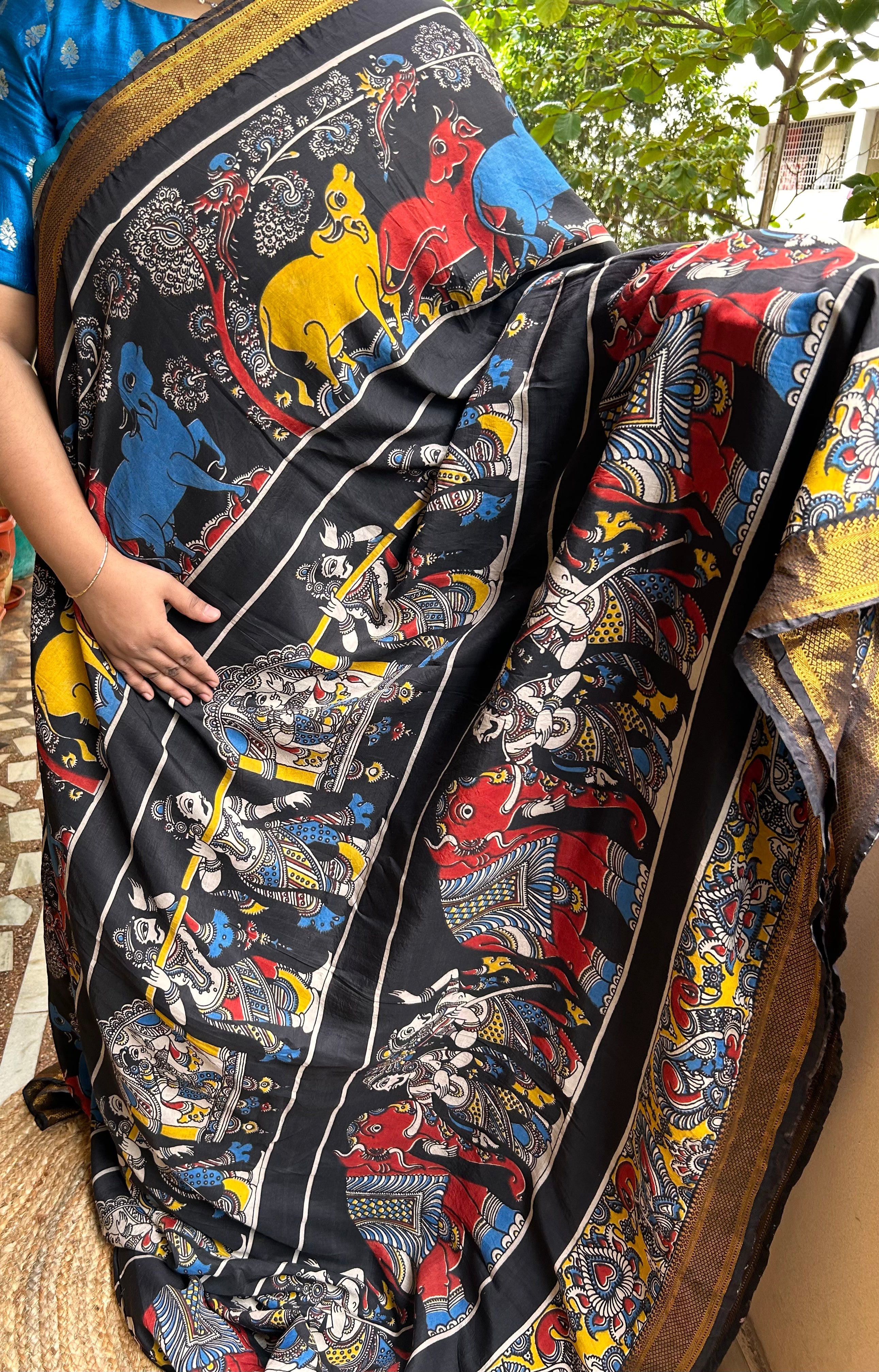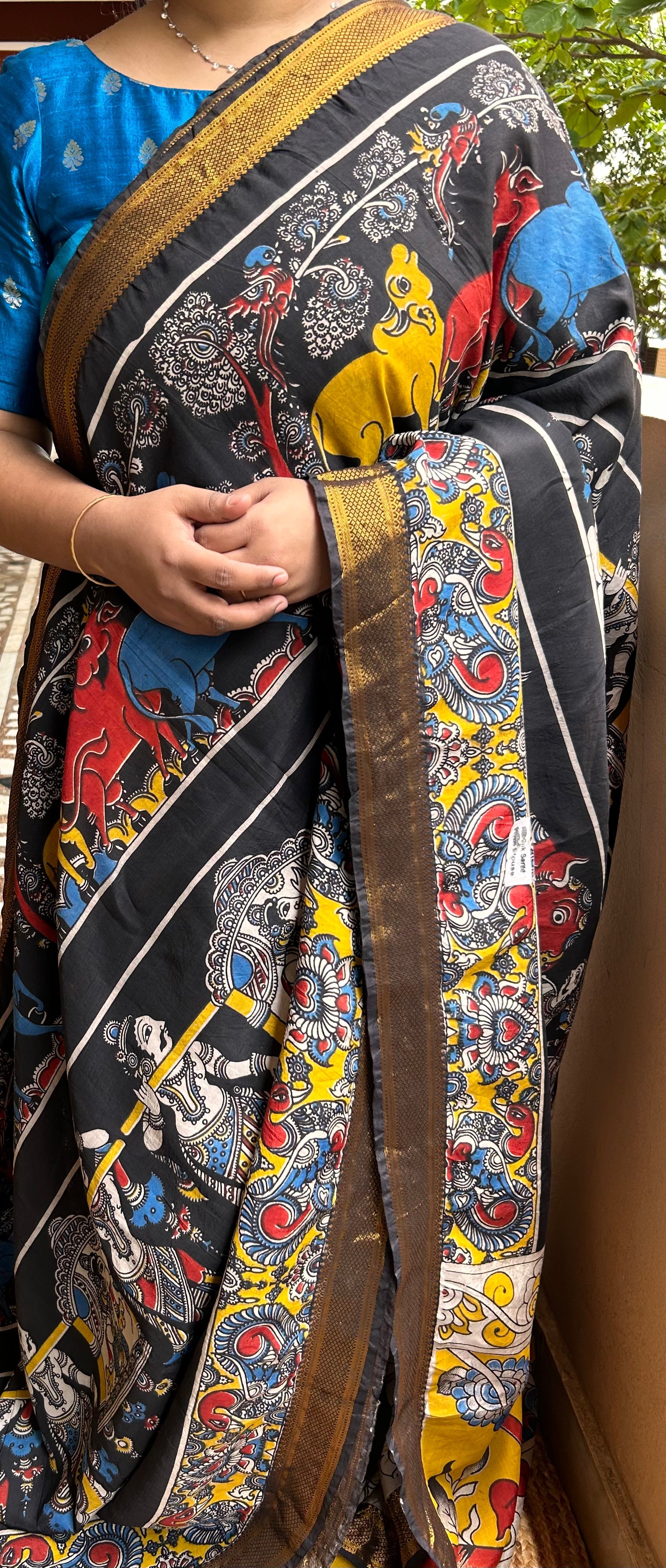 Lavender & Mustard Maheswari Silk Cotton Handloom Saree