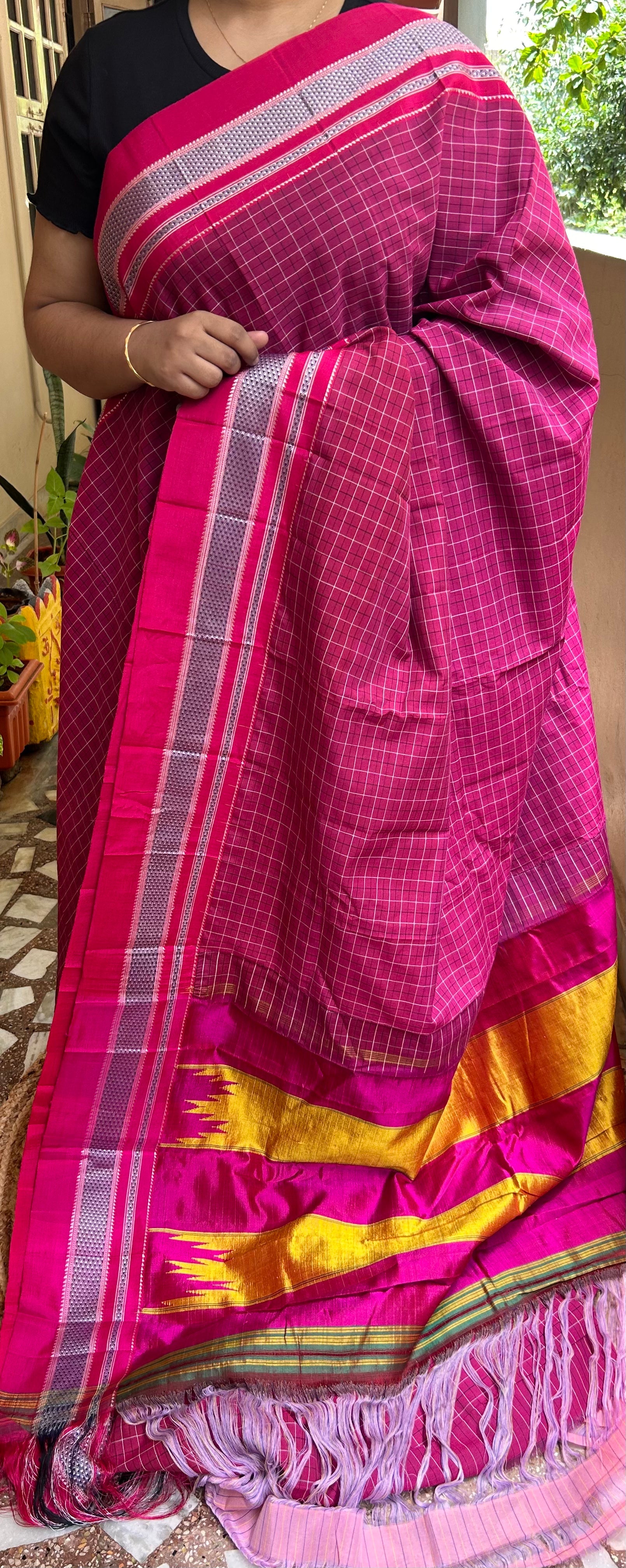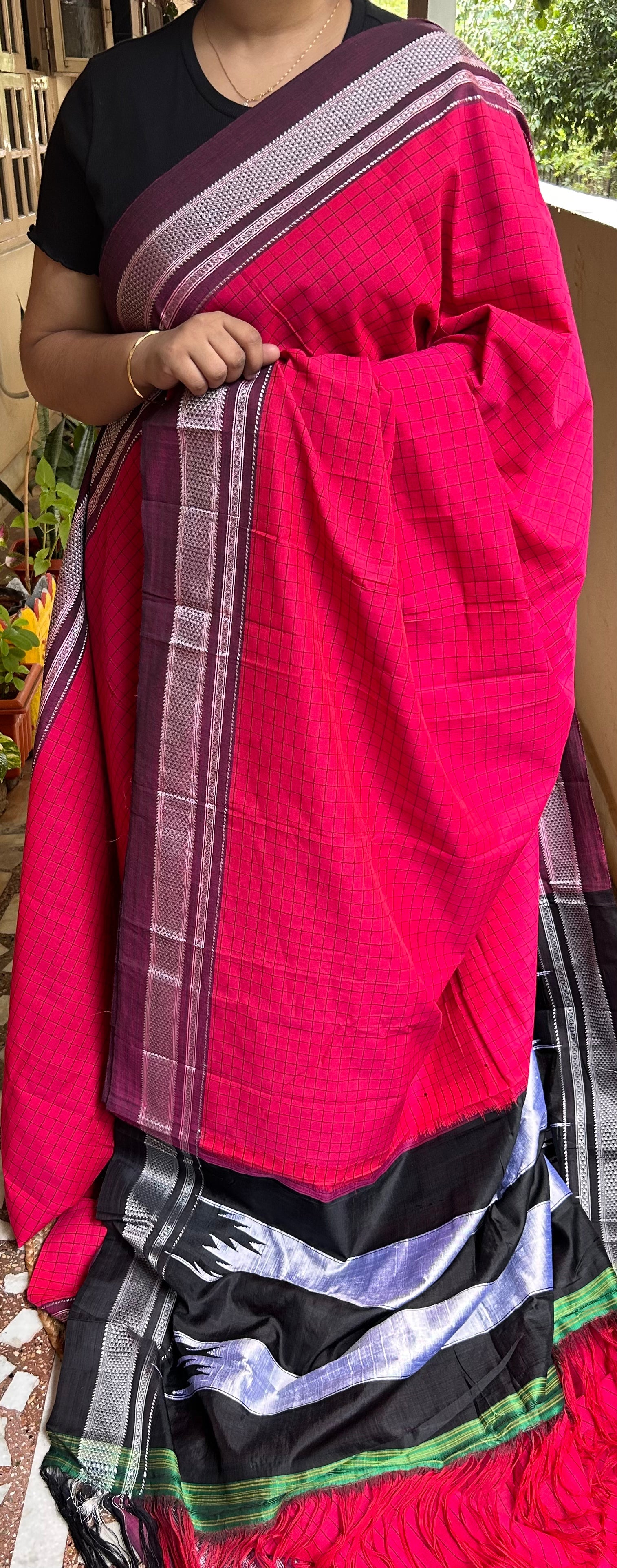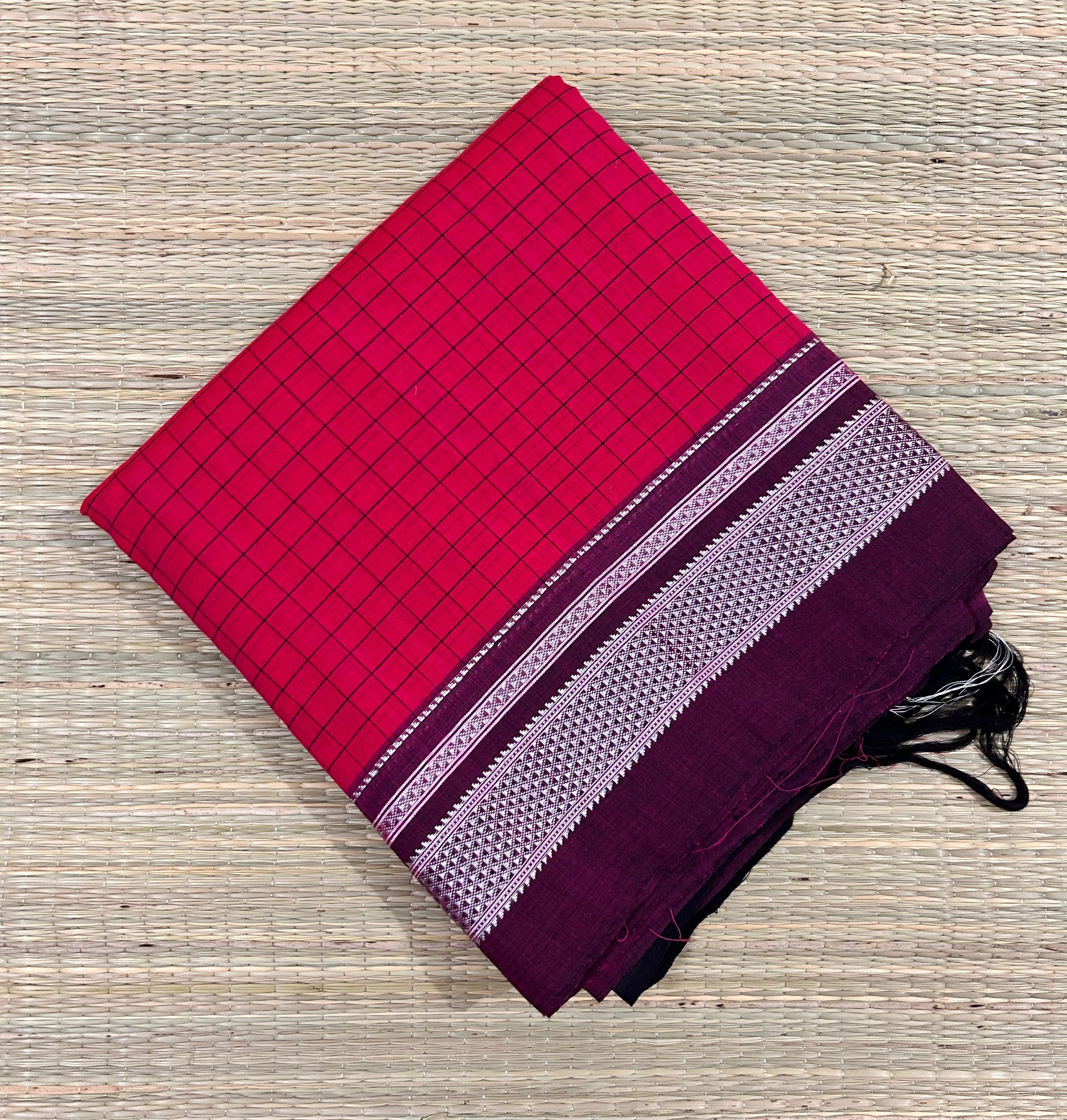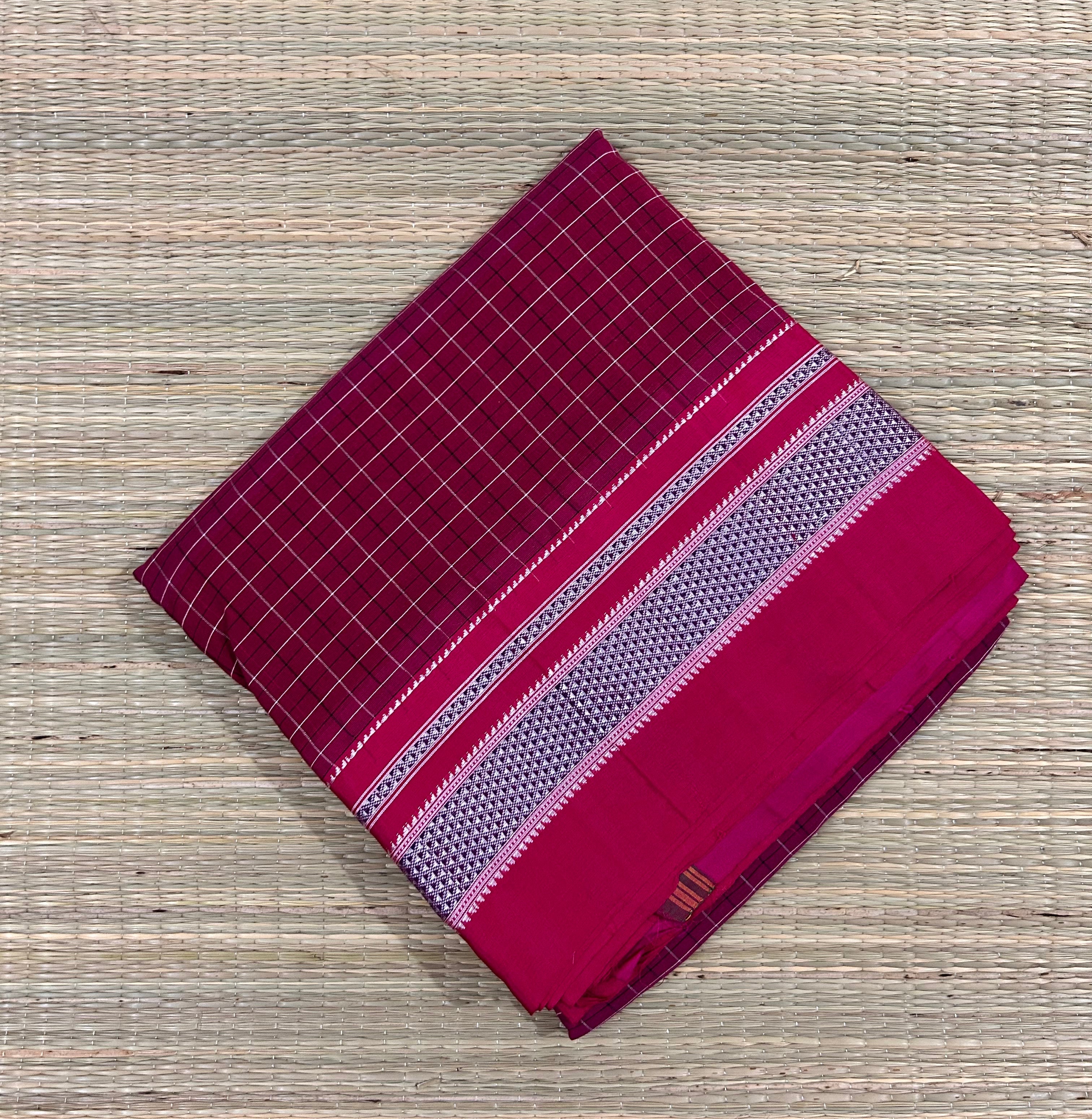 Magenta Cotton Illkal Saree ( Pure silk Pallu )