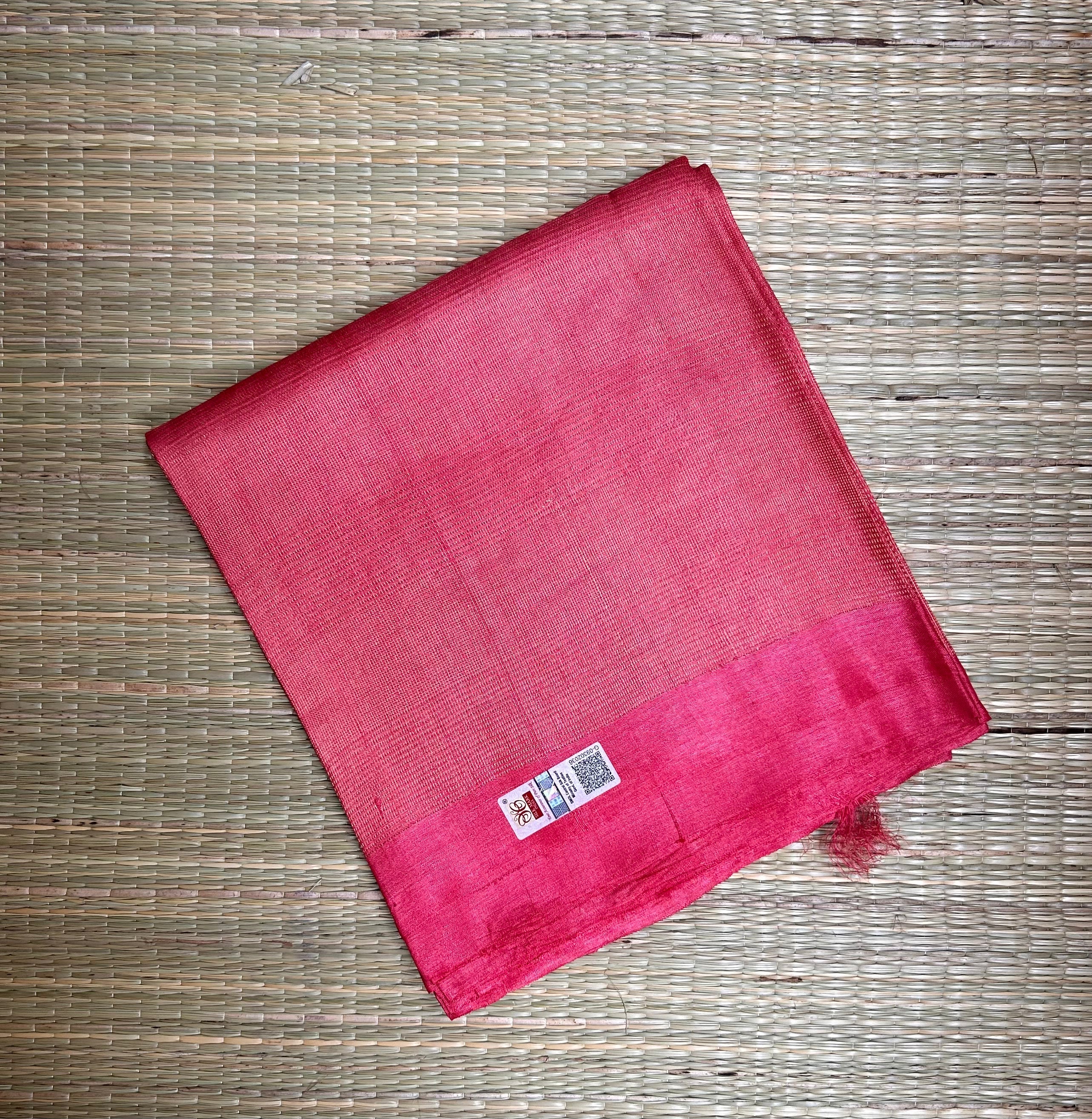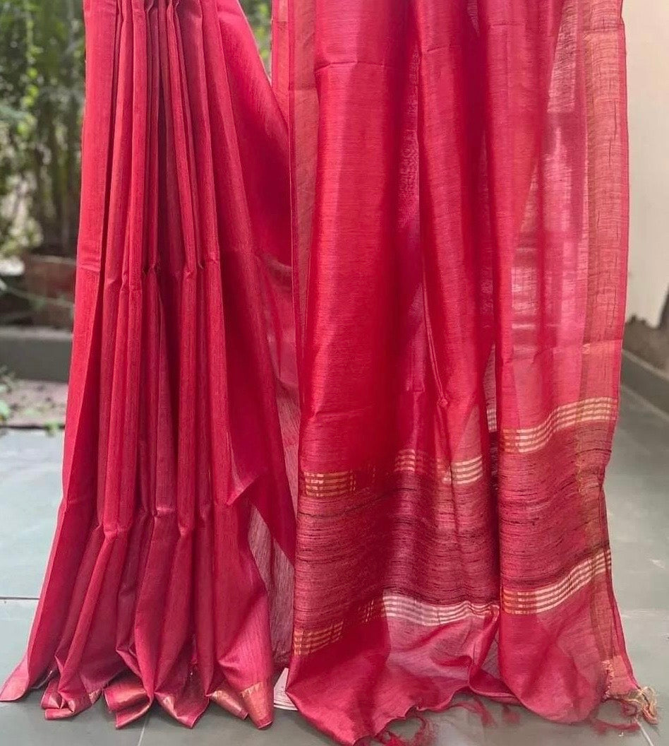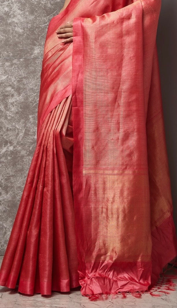 Red Muga Tussar Silk Handloom Saree