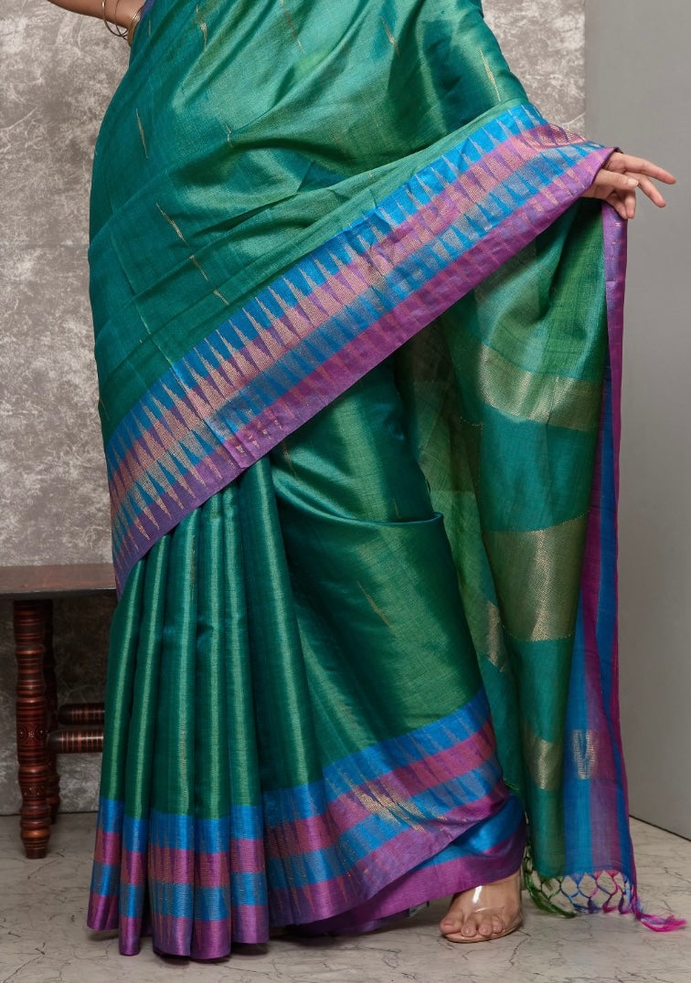 Peacock Green Kosa Tussar Handloom Saree
