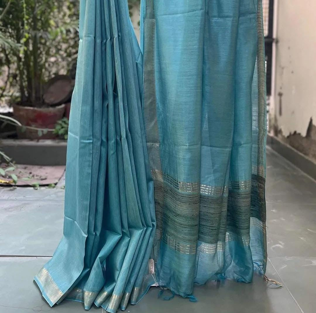 Blue Muga Tussar Silk Handloom Saree