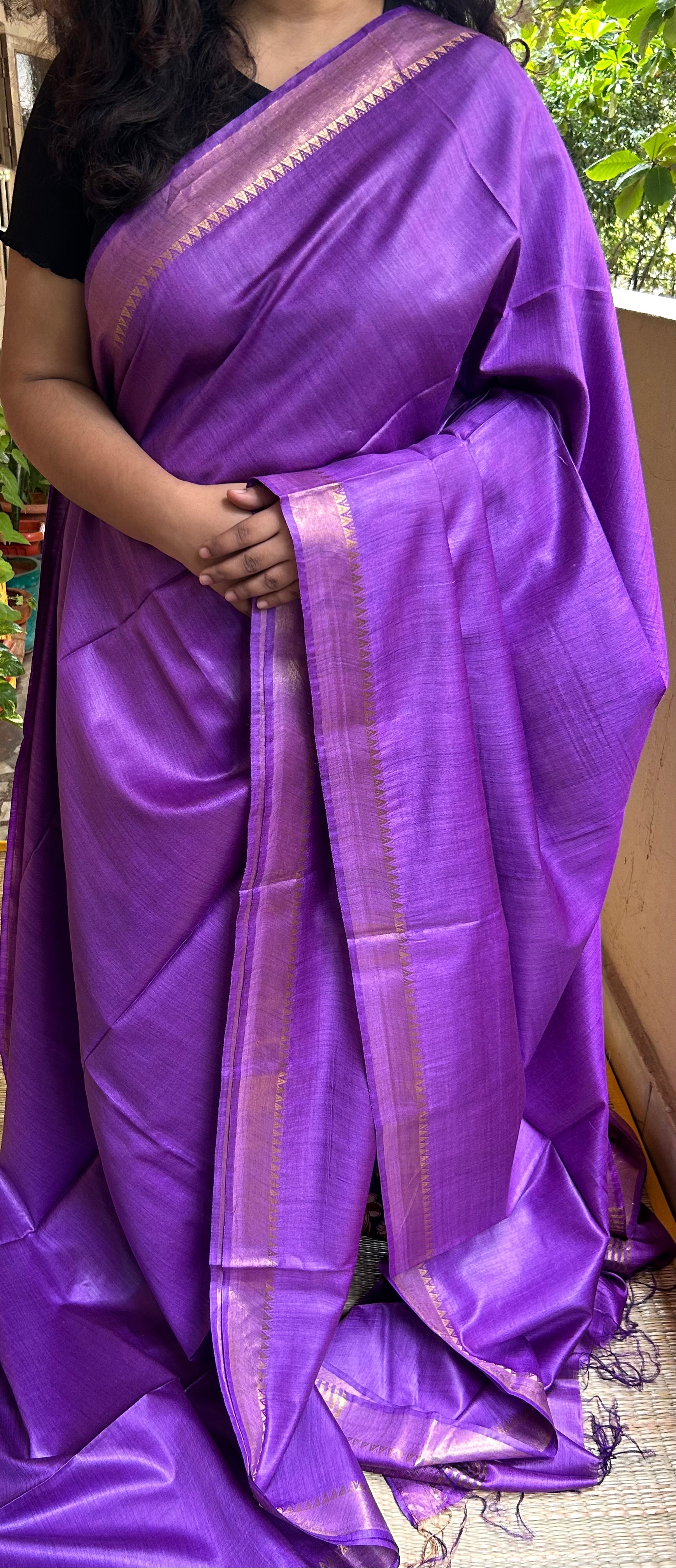 Purple Muga Tussar Silk Handloom Saree