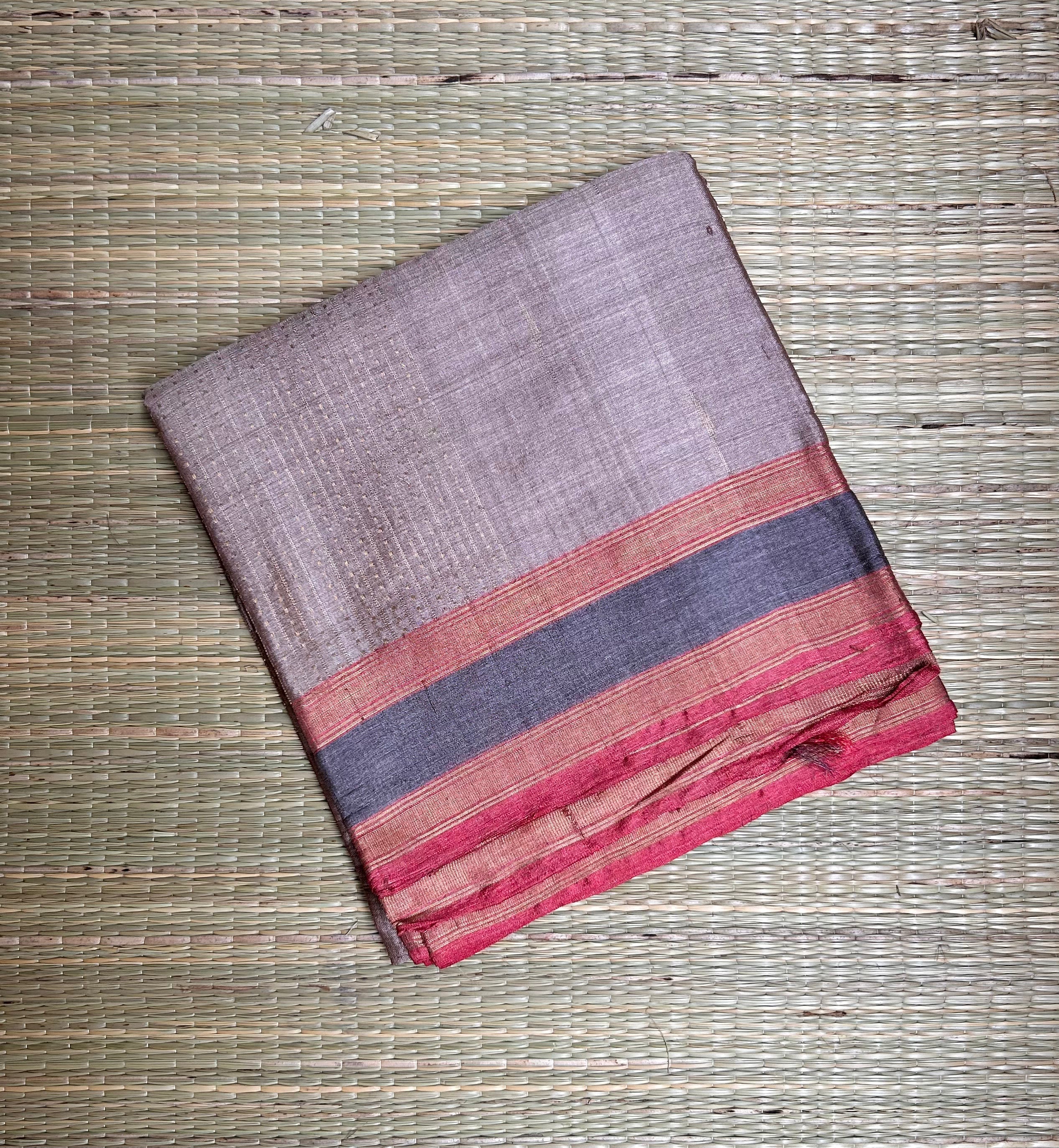 Beige Muga Tussar Silk Handloom Saree