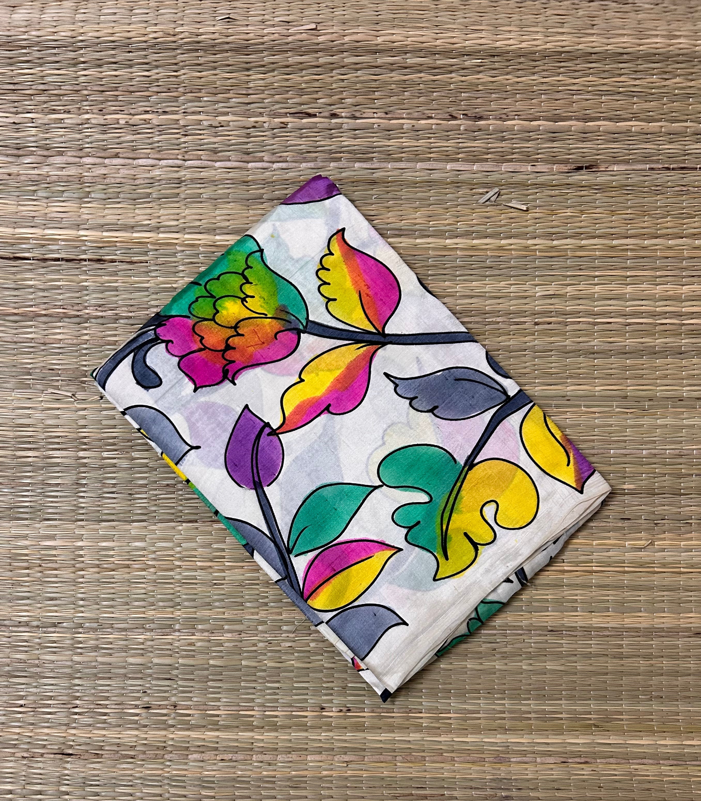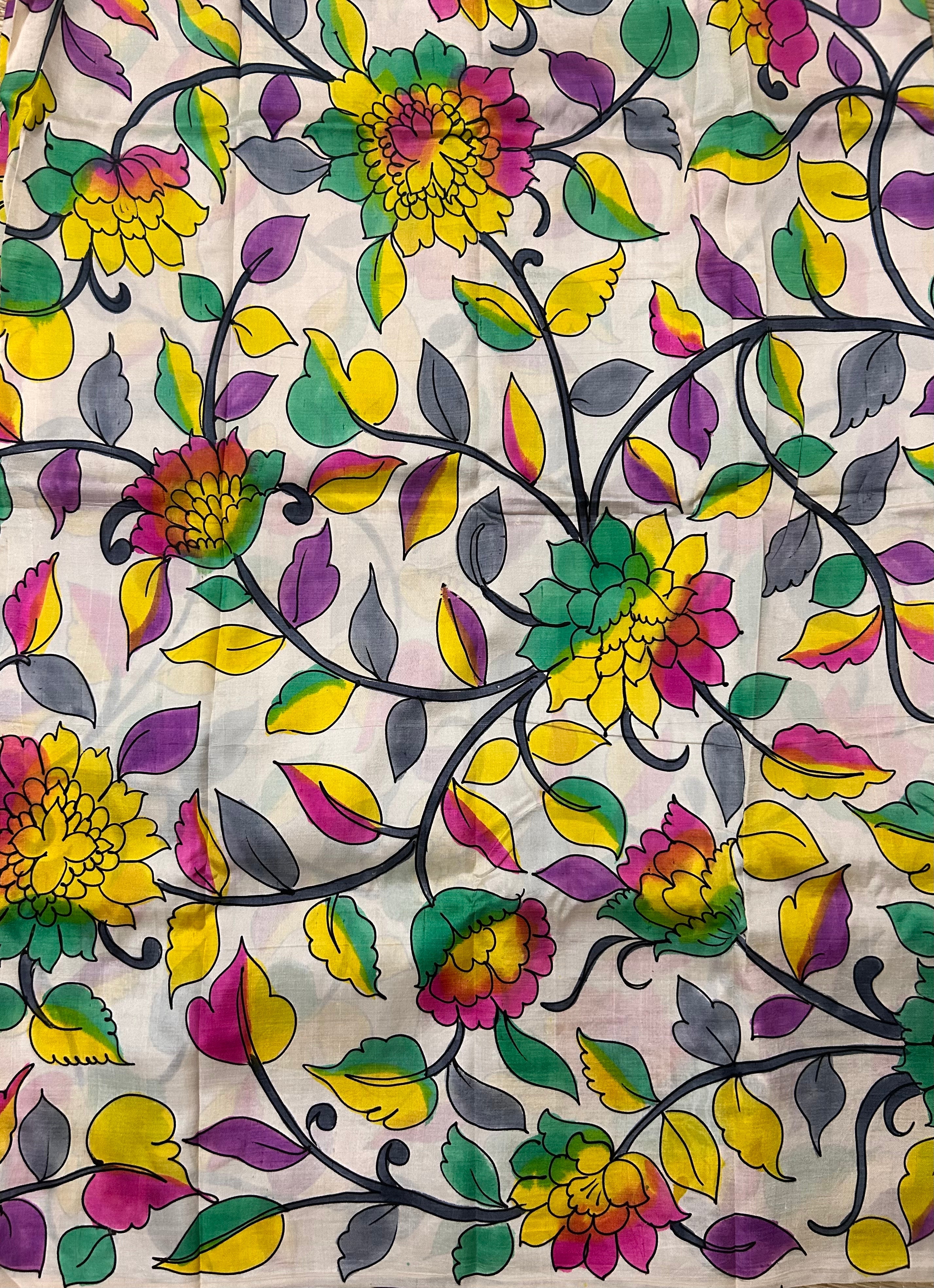 Beige Pen Kalamkari Dupatta in Bangalore Silk