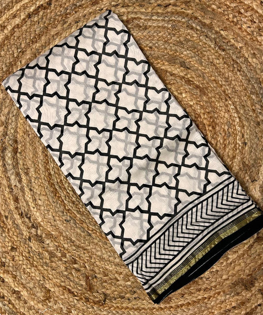 Mangalagiri Silk Kalamkari Handblock Printed Saree