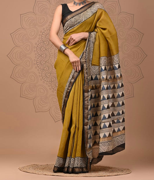 Mustard Green Maheshwari Cotton Saree