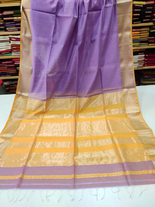 Lavender & Purple Maheswari Silk Cotton Handloom Saree
