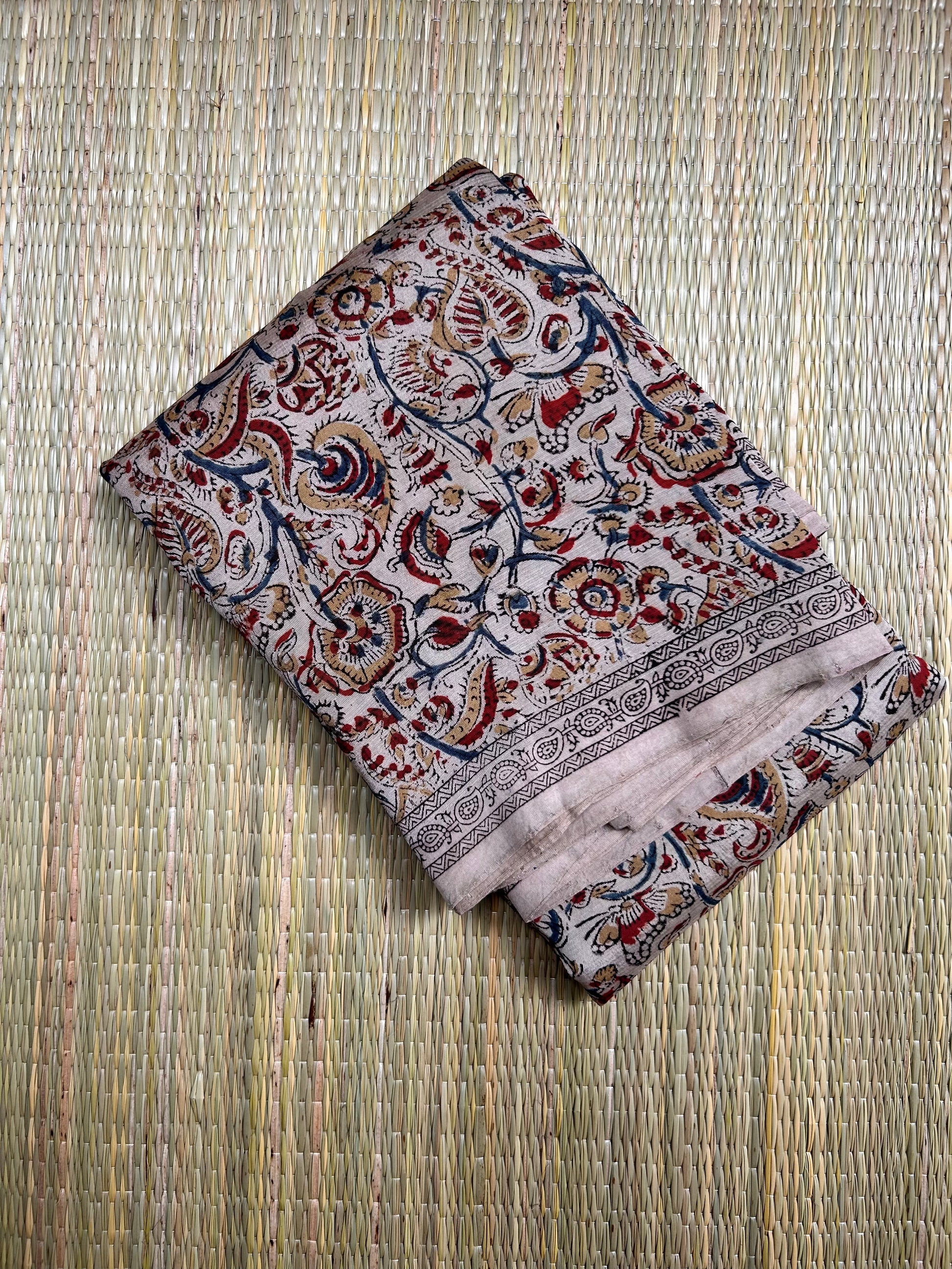 Mangalagiri SilkCotton Kalamkari Handblock Printed Saree - 4