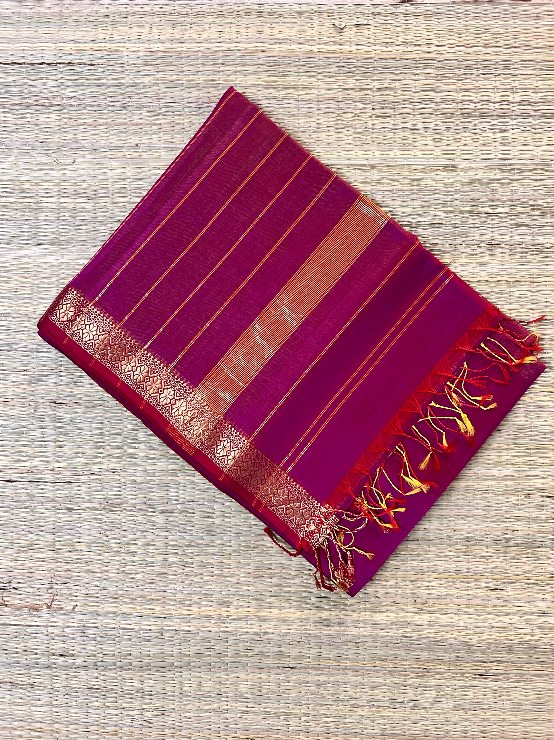 Pinkish Magenta & Yellow Maheswari Silk Cotton Handloom Saree